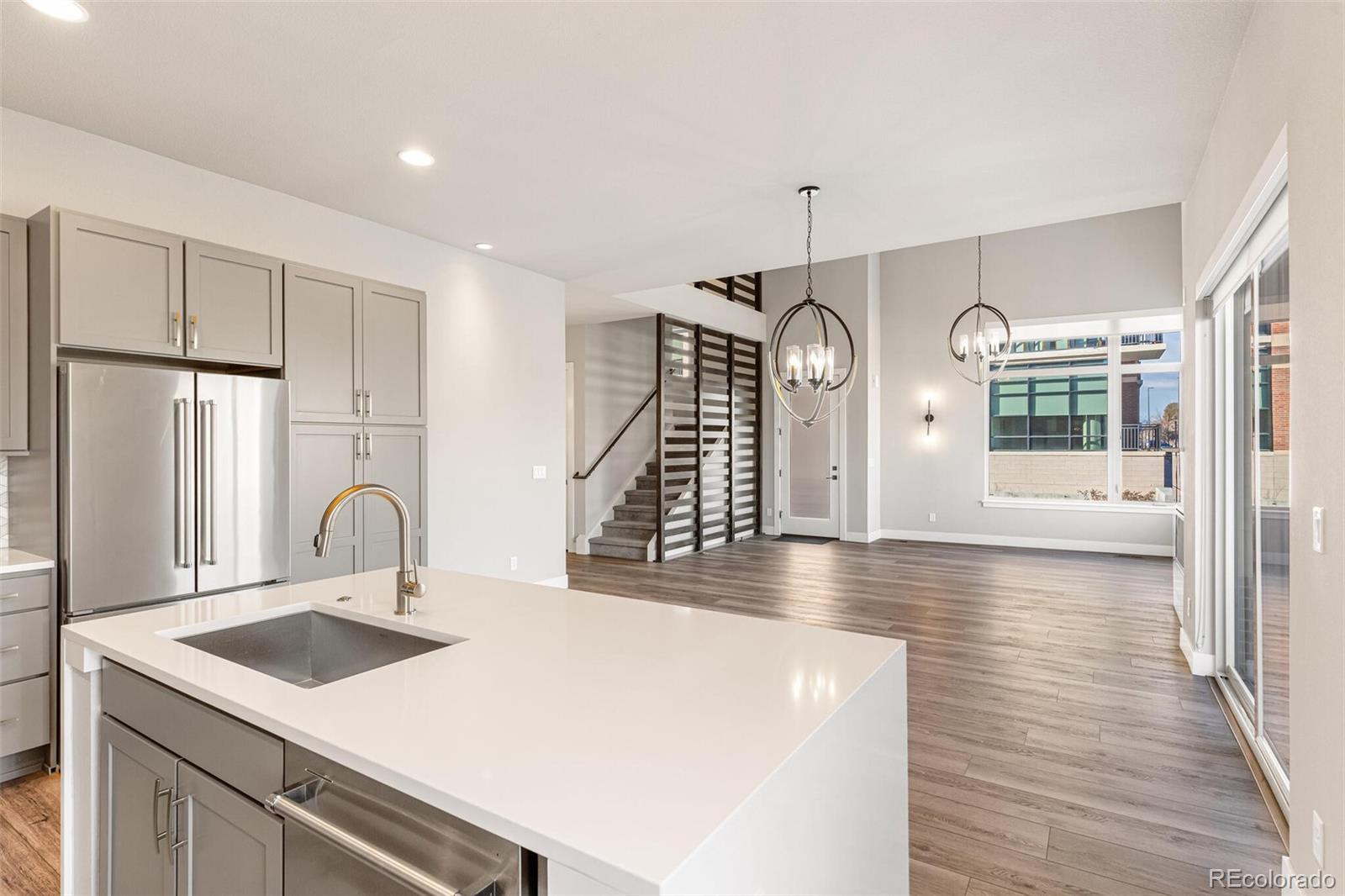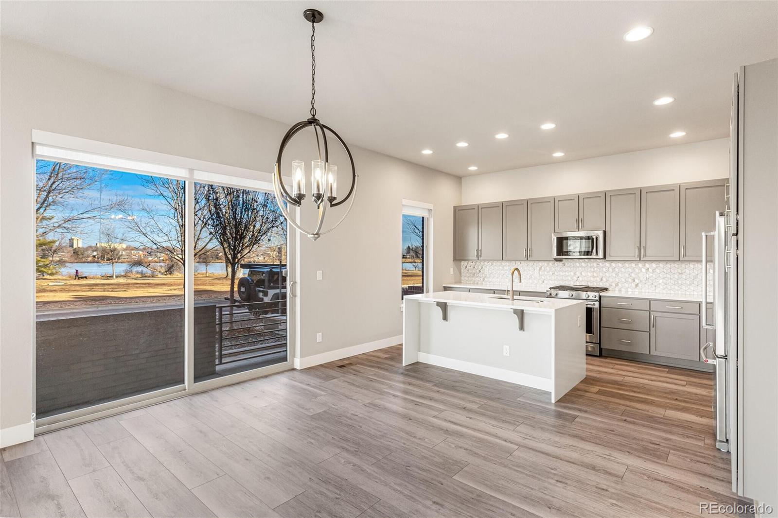 The Absolute Best of Sloan’s Edge! This is the largest and most upgraded townhome in the community, located on the corner DIRECTLY ACROSS FROM SLOANS LAKE! Unlike most townhomes, this “better-than-new” home offers all main-level living, including a 2-story great room that opens to the kitchen and dining areas, plus a main-level bedroom and bath. You’ll also enjoy the convenience of a 2-car garage! Upstairs, you’ll find a gorgeous primary suite with a private deck overlooking the park and lake, an incredible luxury bath, and a walk-in closet with custom built-ins. An additional ensuite bedroom and bath are also on this level. On the top floor, the huge flex space is perfect for entertaining or as a guest suite/4th bedroom, complete with a wet bar, 4th bathroom, and a HUGE oversized terrace! This home is absolutely LOADED with over $100,000 in upgrades and extras, including custom closets and blinds, lighting, and finishes. High-end wood and tile floors throughout, a stunning kitchen with quartz countertops, upgraded cabinetry, a waterfall island, and more! This truly is the “Rolls Royce” of the neighborhood. Walk to the latest and greatest restaurants and bars, and enjoy leisurely strolls around Denver’s most popular lake, right out your front door! Don't miss this one-of-a-kind home!!