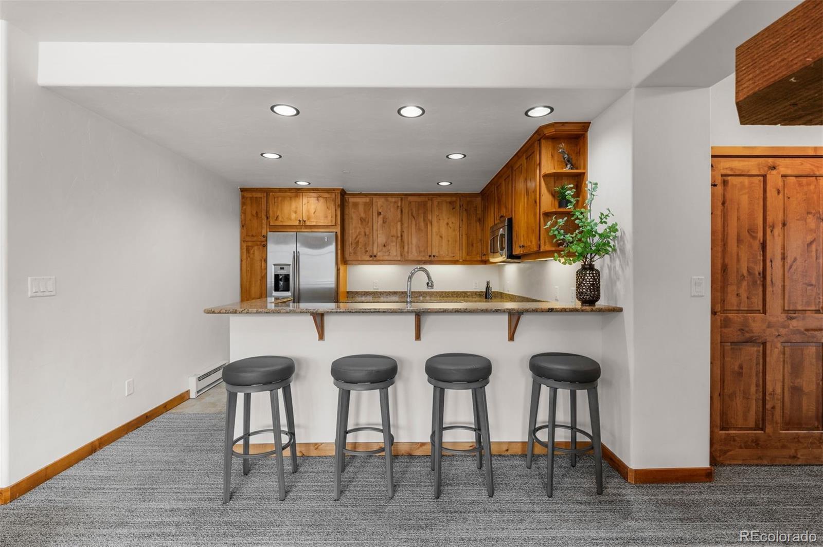 Discover the perfect mountain retreat in this oversized, well-kept 3-bedroom, 3-bathroom condo, centrally located in Frisco. Enjoy the convenience of true main-floor living with an all one-level layout, featuring two spacious primary suites. No stairs are needed—an elevator provides easy access to the unit. Thoughtfully maintained, this home offers two versatile bonus spaces, providing flexibility for a home office, extra sleeping area, or recreation space. Enjoy the breathtaking west and south-facing views with a spacious deck, where you can soak in stunning sunsets and mountain vistas. Large windows in every room fill the home with natural light, creating a warm and inviting atmosphere. This exceptional property also features underground heated parking, a dedicated ski locker, and access to common hot tubs and a grilling area with panoramic views of Lake Dillon—perfect for relaxing after a day of adventure. With a prime location in Frisco, you're just minutes from world-class skiing, hiking, biking, and all the amenities this charming mountain town has to offer. Don’t miss this rare opportunity to own a beautifully maintained home in one of Summit County’s most sought-after locations!