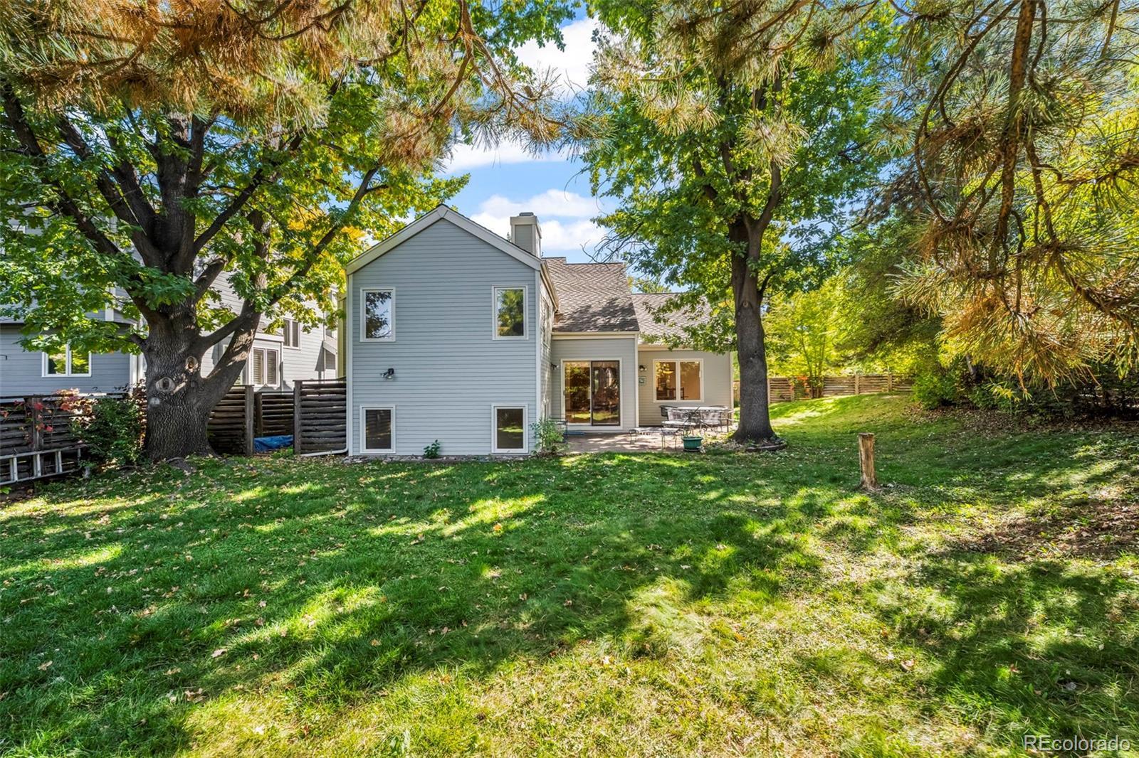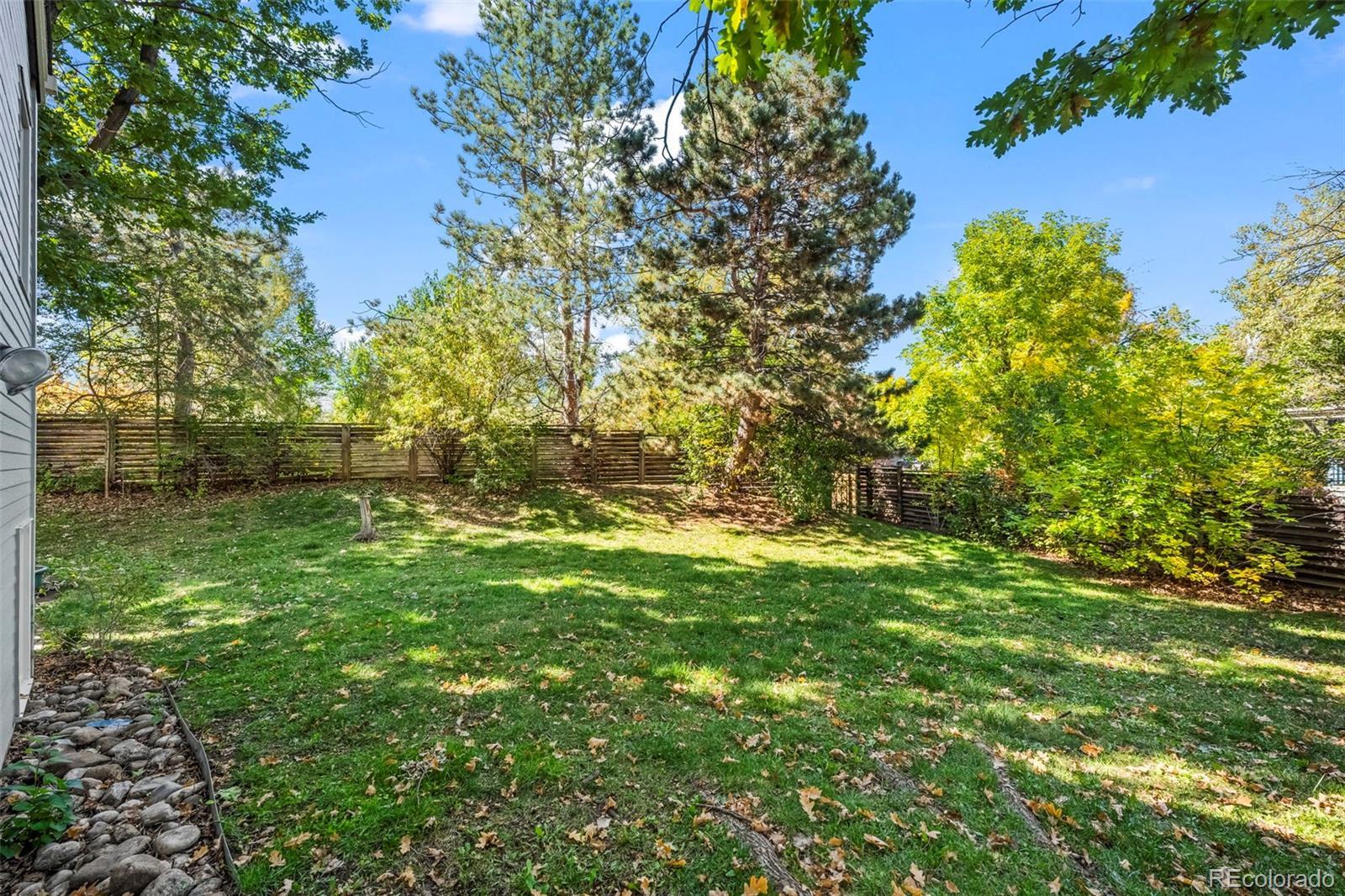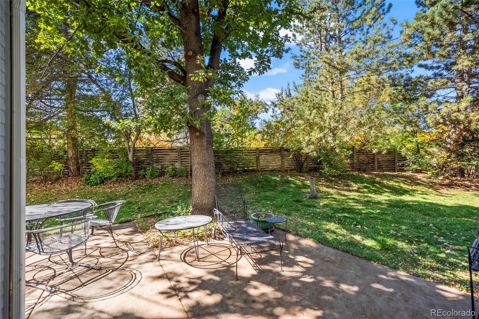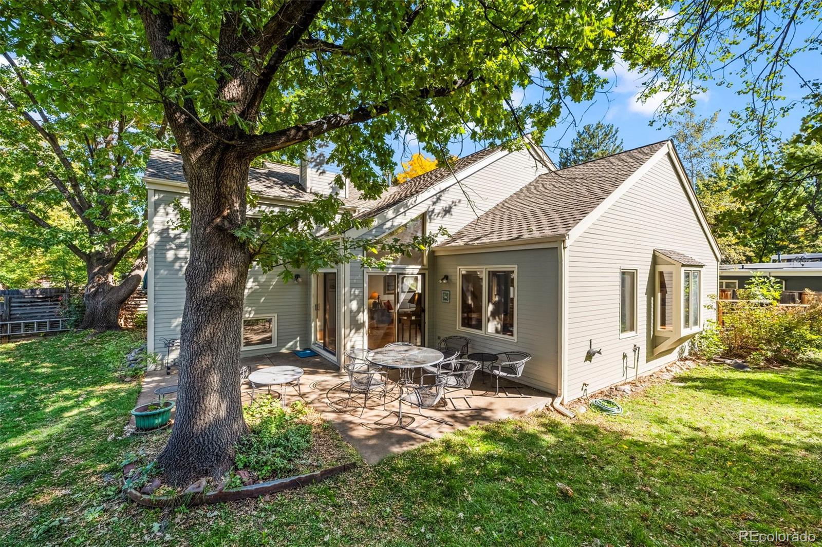 Great Opportunity at an affordable price in the desirable Meadow Glen neighborhood of tree-lined streets, greenbelts, ponds, creeks, trails and abundant natural spaces. This one-owner home is tucked back at the end of a quiet common driveway and has the largest private yard in Meadow Glen where the HOA covers snow removal & front yard lawn care allowing you to enjoy all the activities of a true Boulder Lifestyle. Upon entry, enjoy a sun-filled interior boasting soaring ceilings, extensive wood flooring, exposed wood beams, windows galore & abundant natural light creating a warm, open ambiance. The spacious living room features a cozy gas fireplace and flows seamlessly into the dining area and kitchen with original cabinetry & appliances offering the opportunity to update and personalize to your taste. Two sliding glass doors lead to the expansive fully fenced backyard with mature trees, privacy & plenty of room for your furry friends. The upper level has the primary bedroom with 5-piece bath & walk-in closet & across the hall are 2 additional bedrooms that share a full bath. Plenty of room to spread out in the lower level with all above grade windows, a flexible family room, office space, full bath and laundry room. Don't miss the large crawl space with concrete floor, the perfect storage space. With convenient access to the Private Meadows Swim & Tennis Club, East Boulder Rec Center, Flatirons Golf Course, nearby dining, shopping, breweries and steps from the Centennial & Bobolink trails, 853 Racquet Lane embodies the best of Boulder's balance with peaceful surroundings, thoughtful design, and a fantastic opportunity to own a Boulder home for under a $1M that you can customize, update and make it your very OWN!! New Exterior Paint