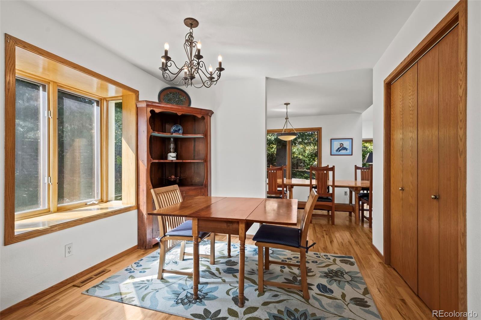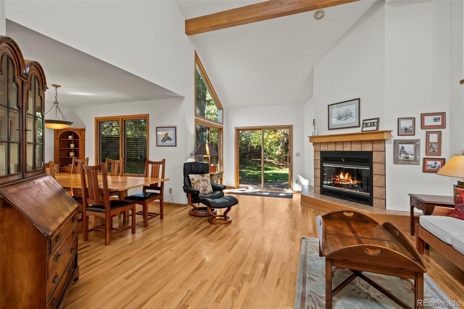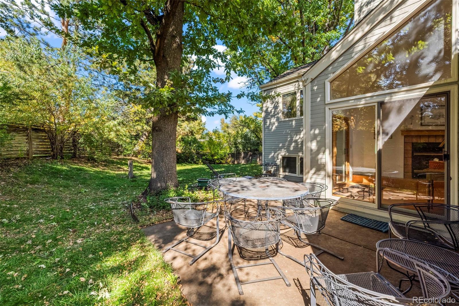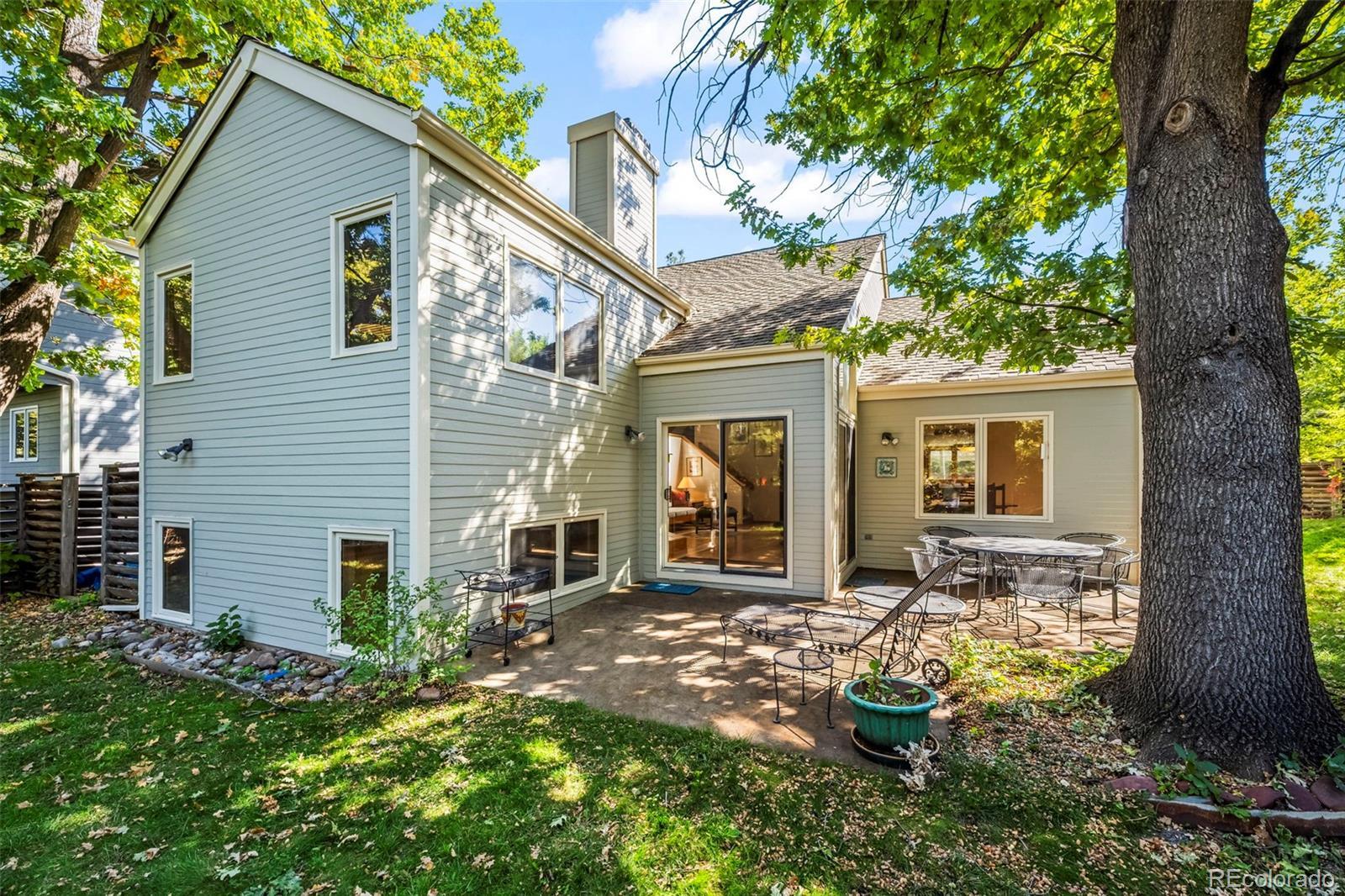 Great Opportunity at an affordable price in the desirable Meadow Glen neighborhood of tree-lined streets, greenbelts, ponds, creeks, trails and abundant natural spaces. This one-owner home is tucked back at the end of a quiet common driveway and has the largest private yard in Meadow Glen where the HOA covers snow removal & front yard lawn care allowing you to enjoy all the activities of a true Boulder Lifestyle. Upon entry, enjoy a sun-filled interior boasting soaring ceilings, extensive wood flooring, exposed wood beams, windows galore & abundant natural light creating a warm, open ambiance. The spacious living room features a cozy gas fireplace and flows seamlessly into the dining area and kitchen with original cabinetry & appliances offering the opportunity to update and personalize to your taste. Two sliding glass doors lead to the expansive fully fenced backyard with mature trees, privacy & plenty of room for your furry friends. The upper level has the primary bedroom with 5-piece bath & walk-in closet & across the hall are 2 additional bedrooms that share a full bath. Plenty of room to spread out in the lower level with all above grade windows, a flexible family room, office space, full bath and laundry room. Don't miss the large crawl space with concrete floor, the perfect storage space. With convenient access to the Private Meadows Swim & Tennis Club, East Boulder Rec Center, Flatirons Golf Course, nearby dining, shopping, breweries and steps from the Centennial & Bobolink trails, 853 Racquet Lane embodies the best of Boulder's balance with peaceful surroundings, thoughtful design, and a fantastic opportunity to own a Boulder home for under a $1M that you can customize, update and make it your very OWN!! New Exterior Paint