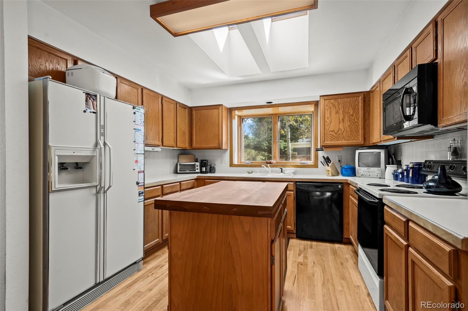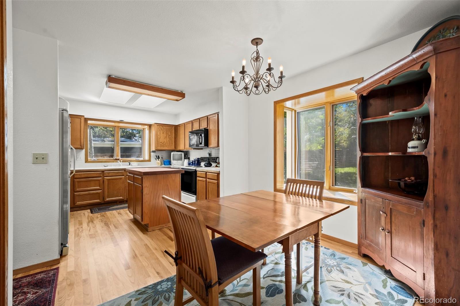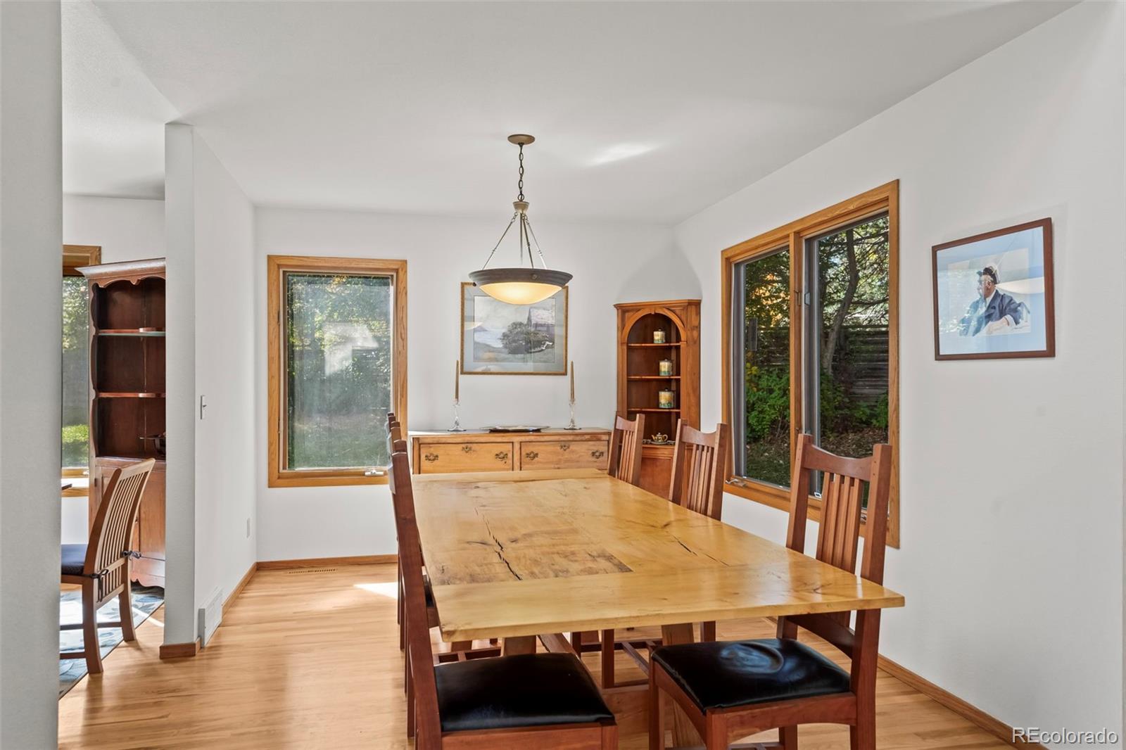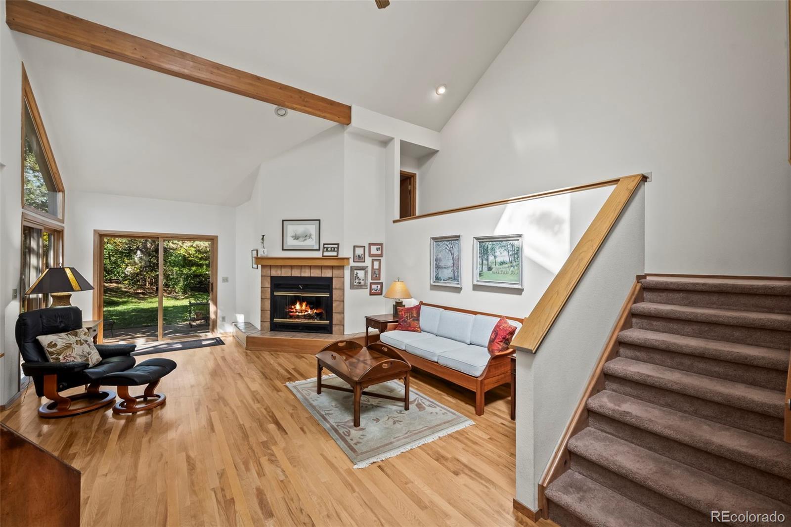 Great Opportunity at an affordable price in the desirable Meadow Glen neighborhood of tree-lined streets, greenbelts, ponds, creeks, trails and abundant natural spaces. This one-owner home is tucked back at the end of a quiet common driveway and has the largest private yard in Meadow Glen where the HOA covers snow removal & front yard lawn care allowing you to enjoy all the activities of a true Boulder Lifestyle. Upon entry, enjoy a sun-filled interior boasting soaring ceilings, extensive wood flooring, exposed wood beams, windows galore & abundant natural light creating a warm, open ambiance. The spacious living room features a cozy gas fireplace and flows seamlessly into the dining area and kitchen with original cabinetry & appliances offering the opportunity to update and personalize to your taste. Two sliding glass doors lead to the expansive fully fenced backyard with mature trees, privacy & plenty of room for your furry friends. The upper level has the primary bedroom with 5-piece bath & walk-in closet & across the hall are 2 additional bedrooms that share a full bath. Plenty of room to spread out in the lower level with all above grade windows, a flexible family room, office space, full bath and laundry room. Don't miss the large crawl space with concrete floor, the perfect storage space. With convenient access to the Private Meadows Swim & Tennis Club, East Boulder Rec Center, Flatirons Golf Course, nearby dining, shopping, breweries and steps from the Centennial & Bobolink trails, 853 Racquet Lane embodies the best of Boulder's balance with peaceful surroundings, thoughtful design, and a fantastic opportunity to own a Boulder home for under a $1M that you can customize, update and make it your very OWN!! New Exterior Paint