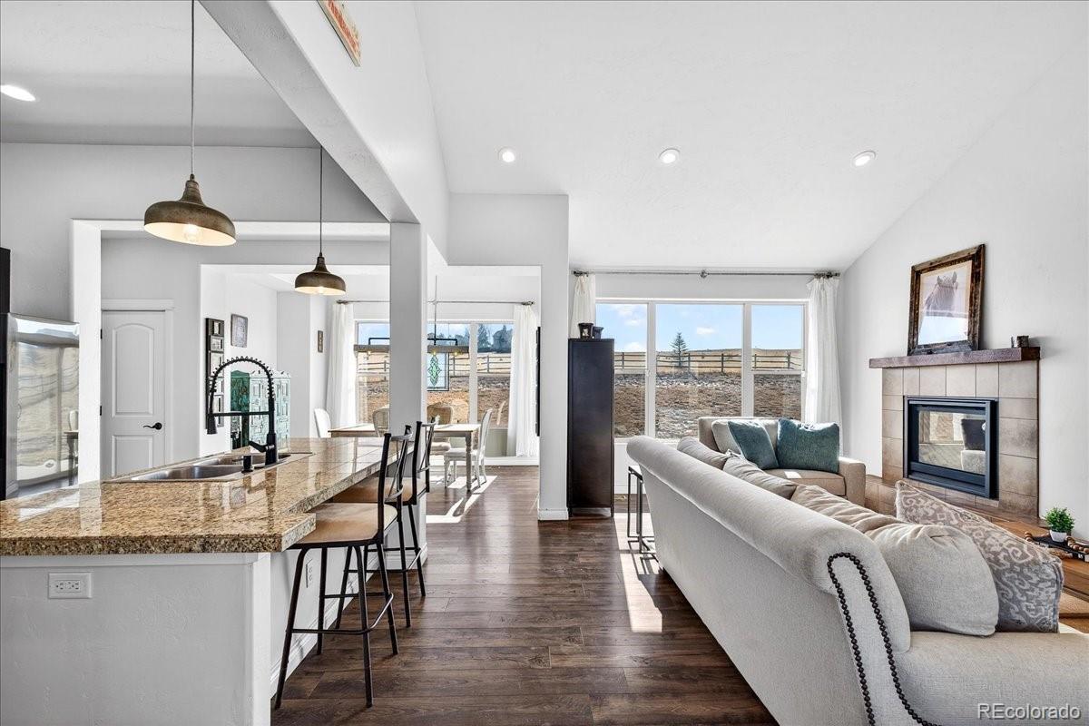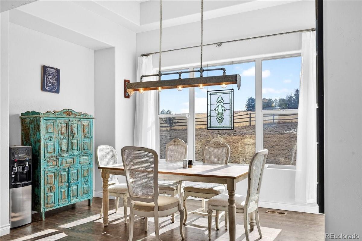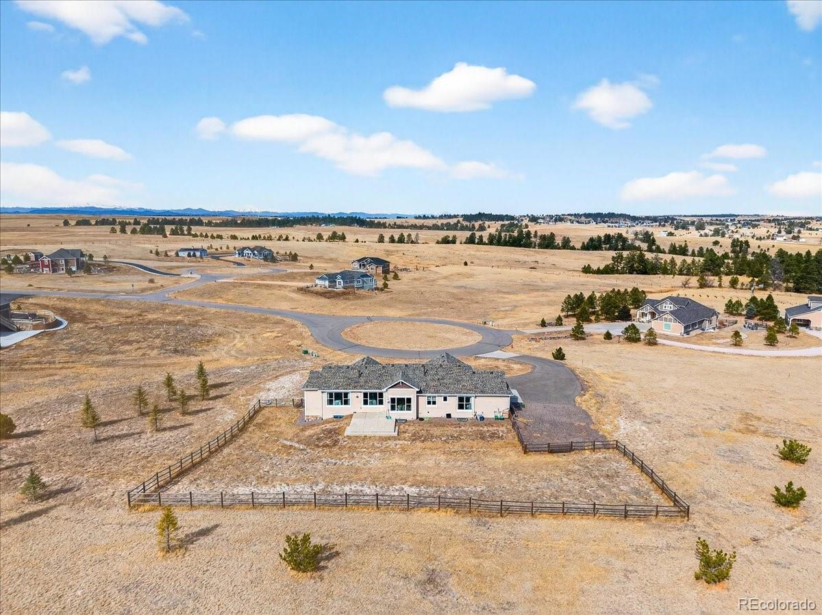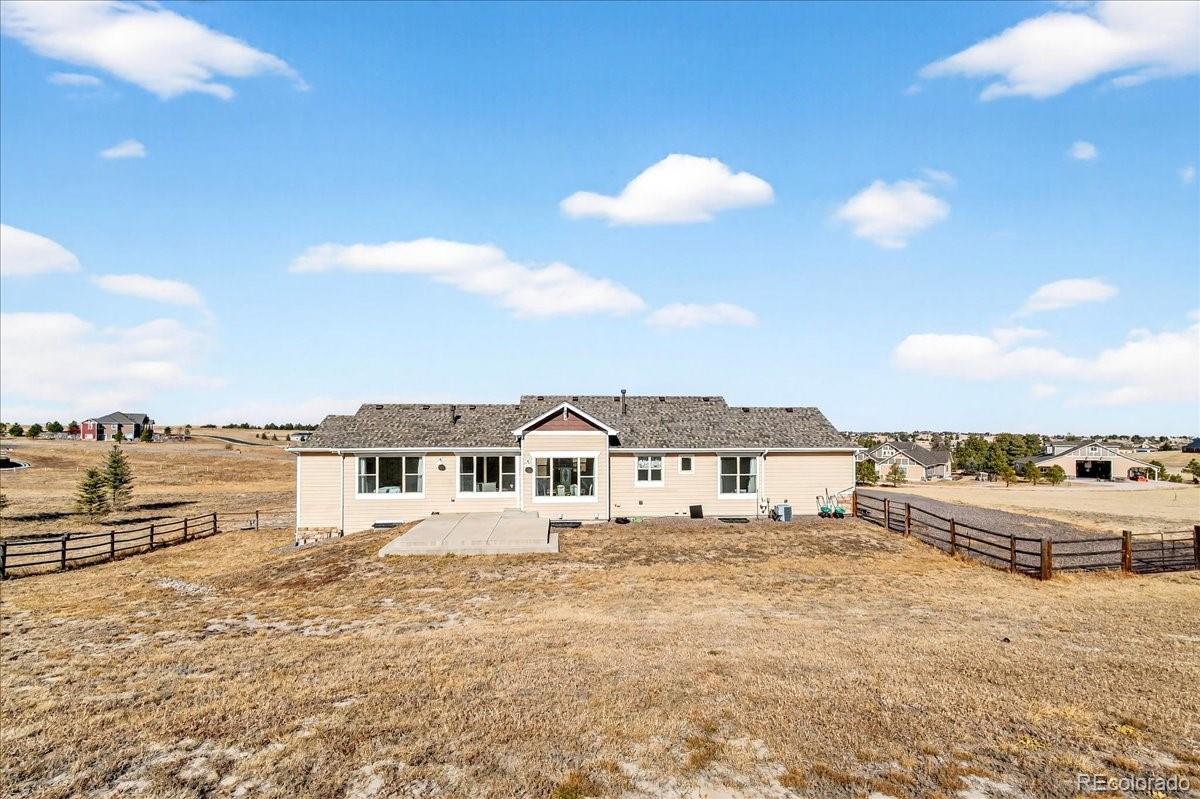 Experience the perfect blend of space, privacy, and modern Colorado living in this beautifully maintained ranch home on 5.02 private acres. Built in 2015, this 4-bedroom, 3-bath residence offers 3,323 total square feet with a full basement and a highly desirable open-concept floorplan. The main level is filled with natural light and features rich LVP flooring, a cozy fireplace, and seamless flow between the living, dining, and kitchen areas which are ideal for both everyday living and entertaining. The kitchen showcases granite countertops, stainless steel appliances, double ovens, generous cabinetry, and a large island with seating. The spacious primary suite includes a large walk-in closet and private bath. Downstairs, the finished basement offers incredible additional living space, highlighted by a custom rustic bar with brick accents and wood detailing, perfect for hosting gatherings or game nights. Enjoy wide-open views and room to roam on the expansive lot, offering privacy and flexibility for outdoor living. A large 3-car garage provides ample storage for vehicles, tools, and toys. Outside? This is where the possibilities really begin. Bring your horses. Build a shop for your toys. Create the outdoor lifestyle you’ve always wanted. With 5.02 acres of privacy, this property is ready to make your own. Ideally located with convenient access to Elizabeth, Franktown, Castle Rock, and Parker, this property offers the serenity of acreage living with easy access to nearby amenities.