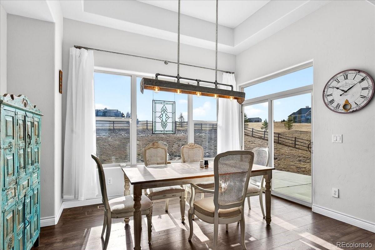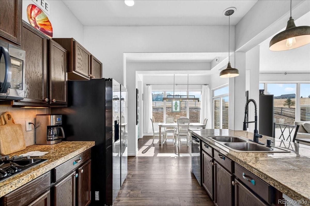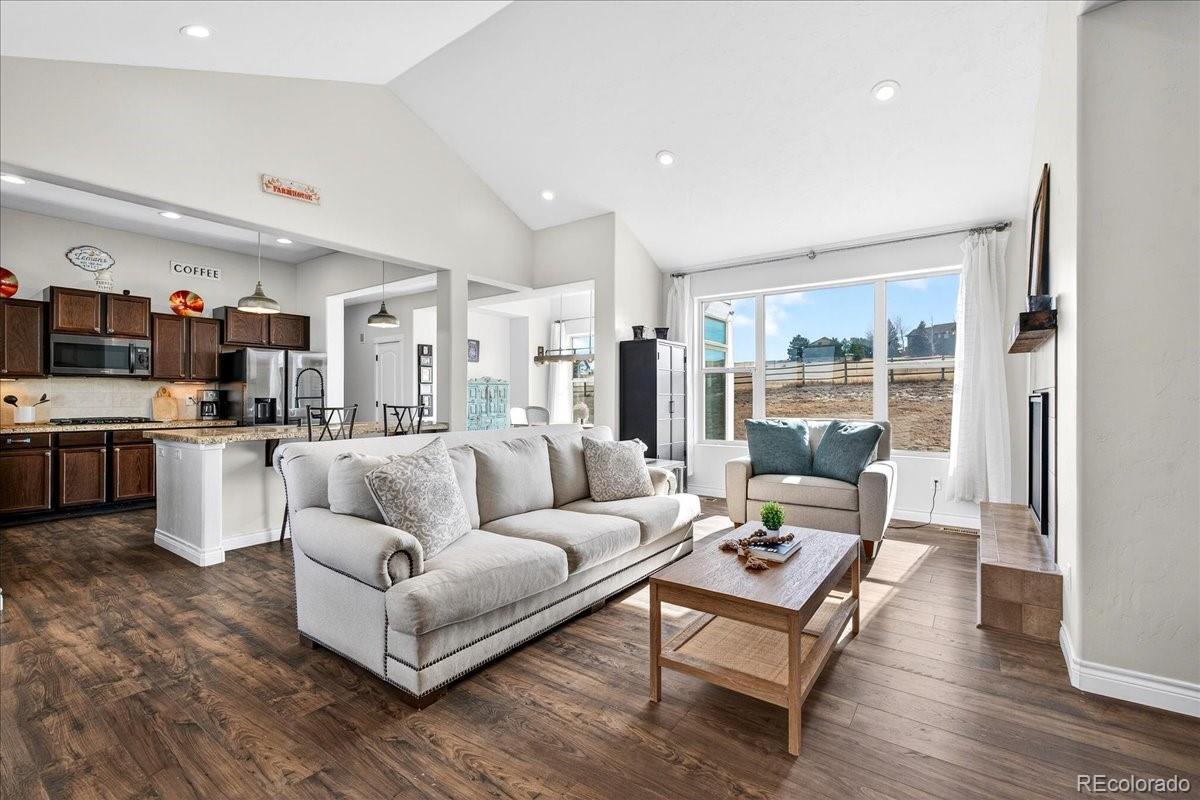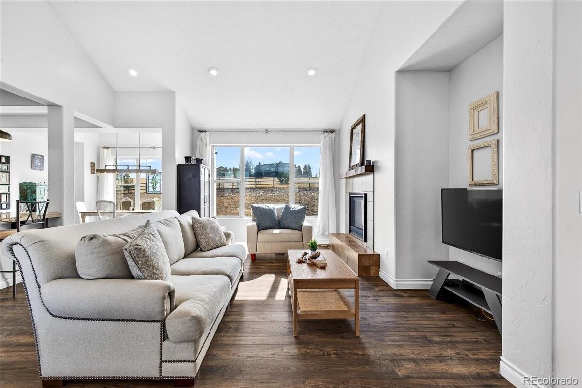 Experience the perfect blend of space, privacy, and modern Colorado living in this beautifully maintained ranch home on 5.02 private acres. Built in 2015, this 4-bedroom, 3-bath residence offers 3,323 total square feet with a full basement and a highly desirable open-concept floorplan. The main level is filled with natural light and features rich LVP flooring, a cozy fireplace, and seamless flow between the living, dining, and kitchen areas which are ideal for both everyday living and entertaining. The kitchen showcases granite countertops, stainless steel appliances, double ovens, generous cabinetry, and a large island with seating. The spacious primary suite includes a large walk-in closet and private bath. Downstairs, the finished basement offers incredible additional living space, highlighted by a custom rustic bar with brick accents and wood detailing, perfect for hosting gatherings or game nights. Enjoy wide-open views and room to roam on the expansive lot, offering privacy and flexibility for outdoor living. A large 3-car garage provides ample storage for vehicles, tools, and toys. Outside? This is where the possibilities really begin. Bring your horses. Build a shop for your toys. Create the outdoor lifestyle you’ve always wanted. With 5.02 acres of privacy, this property is ready to make your own. Ideally located with convenient access to Elizabeth, Franktown, Castle Rock, and Parker, this property offers the serenity of acreage living with easy access to nearby amenities.