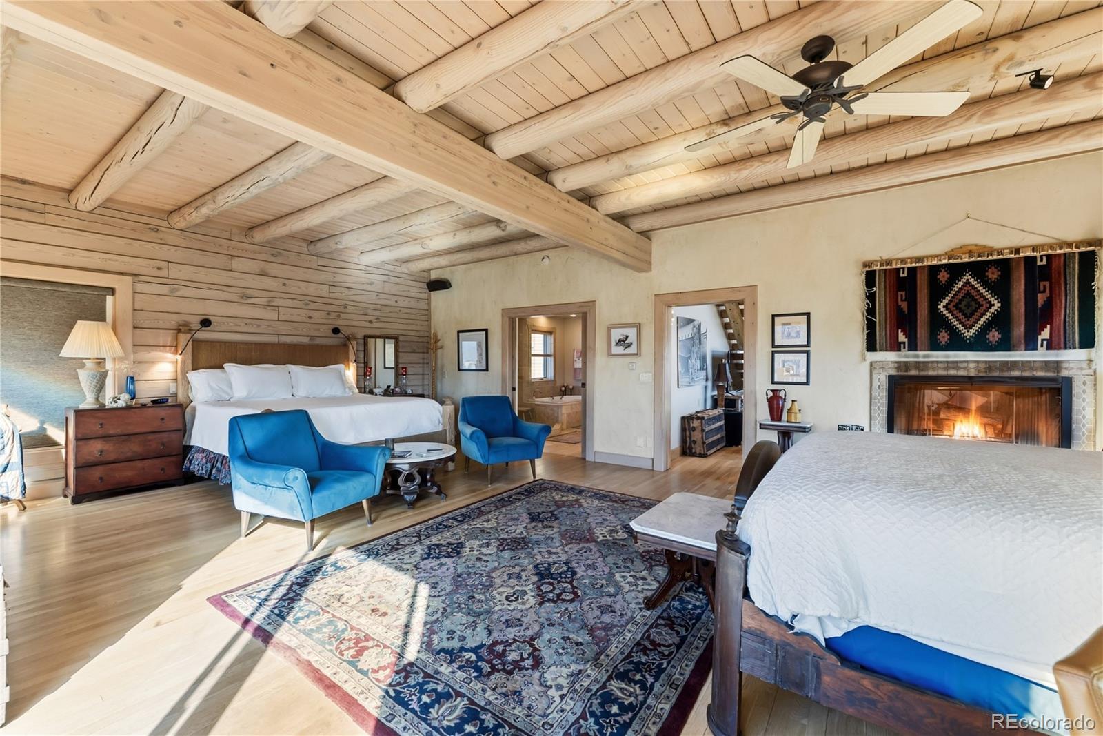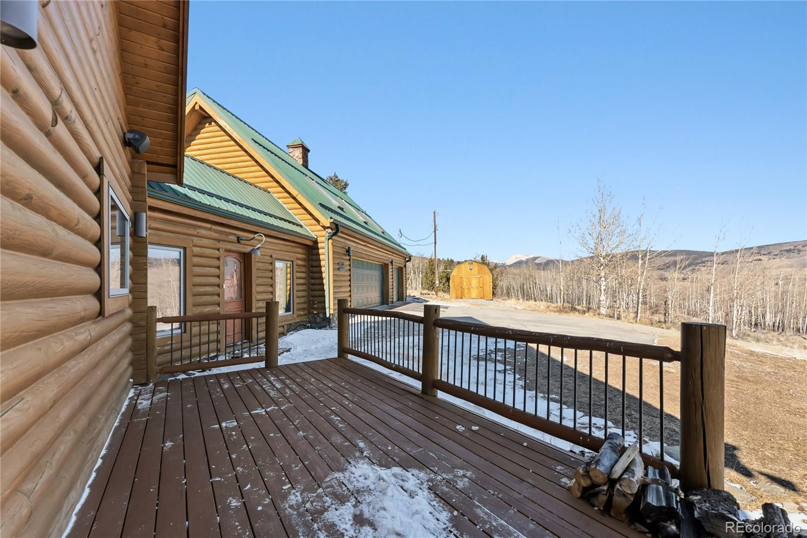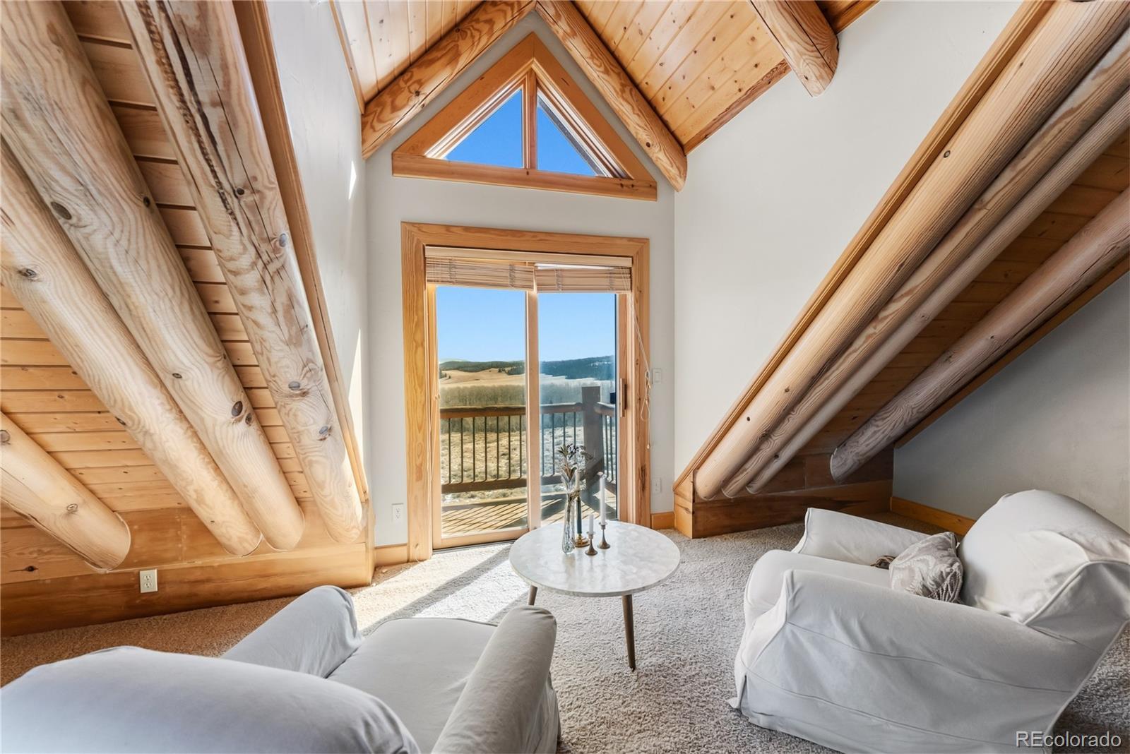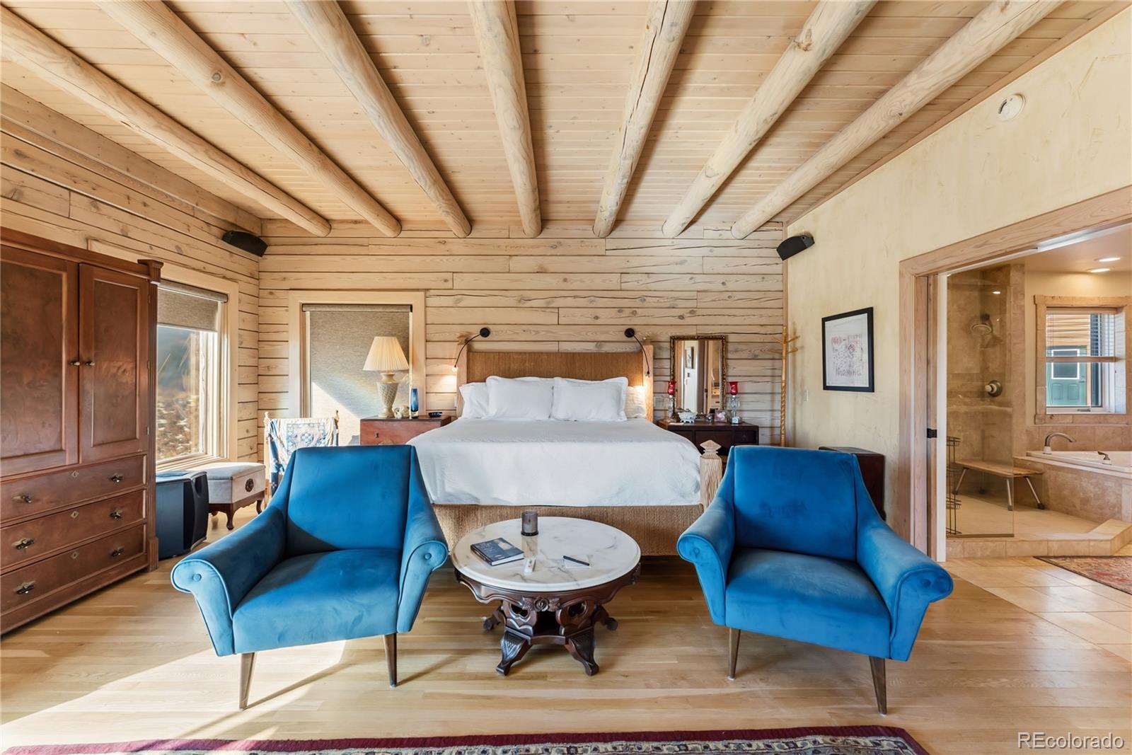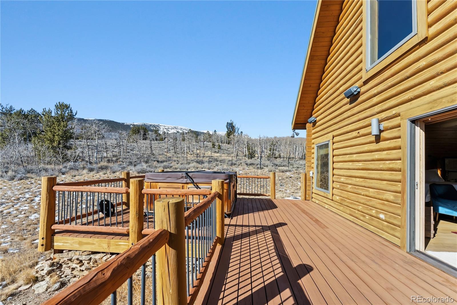Step through the welcoming gate and venture down a winding road framed by elegant Aspen trees that dance with the mountain breeze. The path leads to an enchanting log home nestled among the awe-inspiring and unobstructed views of Pikes Peak, Lamb Peak, Buffalo Peak, and the Sheep Mountains. This rustic sanctuary feels perfectly in tune with nature, both powerful and peaceful, refined yet wild. Inside, the home offers a sense of comfort and grandeur. Four spacious bedrooms provide restful havens, while the primary suite on the main level epitomizes mountain luxury. A five-piece bath invites relaxation, and the generous walk-in closet ensures space to breathe. Ascend the stairs above the three-car garage and discover the newly created adaptable space. The gourmet kitchen welcomes both culinary creativity and companionship. Outfitted with Bosch and Sub-Zero appliances and framed by glistening Brazilian granite countertops, it’s a space where meals become memories. The living room’s stunning double-sided rock fireplace radiates warmth, while the vaulted tongue-and-groove ceilings and wide windows open the home to breathtaking natural views. The property itself feels alive. Aspens gleam in the sunlight, and a year-round stream brings music to the air. Moose, elk, and deer are frequent visitors—gentle reminders that this retreat coexists with the wild heart of the Rockies. Evenings settle into quiet magic: the glow of the fire pit, the shimmer of the stars overhead, or the soothing bubbles of the private hot tub. For those with furry companions, a fully enclosed acre offers both safety and adventure. Every detail—from the stained decks to the circular driveway—reflects thoughtful care and connection to the place. This mountain sanctuary offers not just a home, but an experience; not just comfort but belonging. There is something timeless about this space—an invitation to pause, to breathe, and to live where nature and serenity dwell in perfect harmony.
