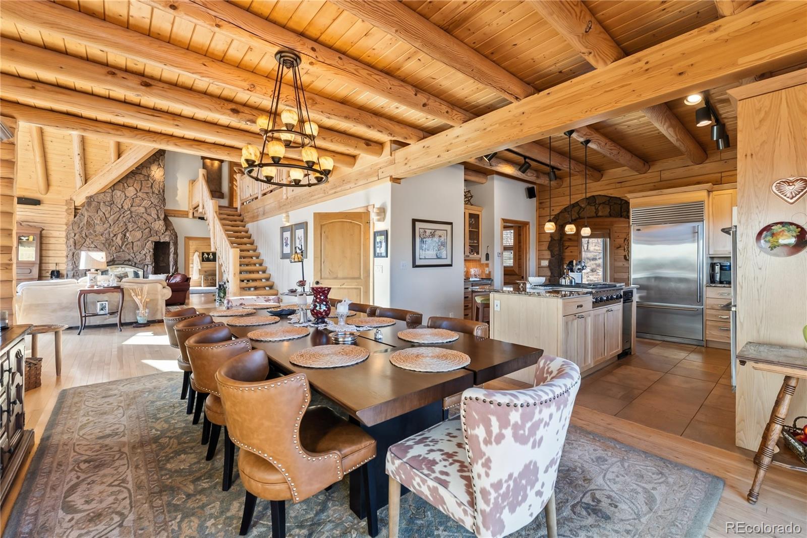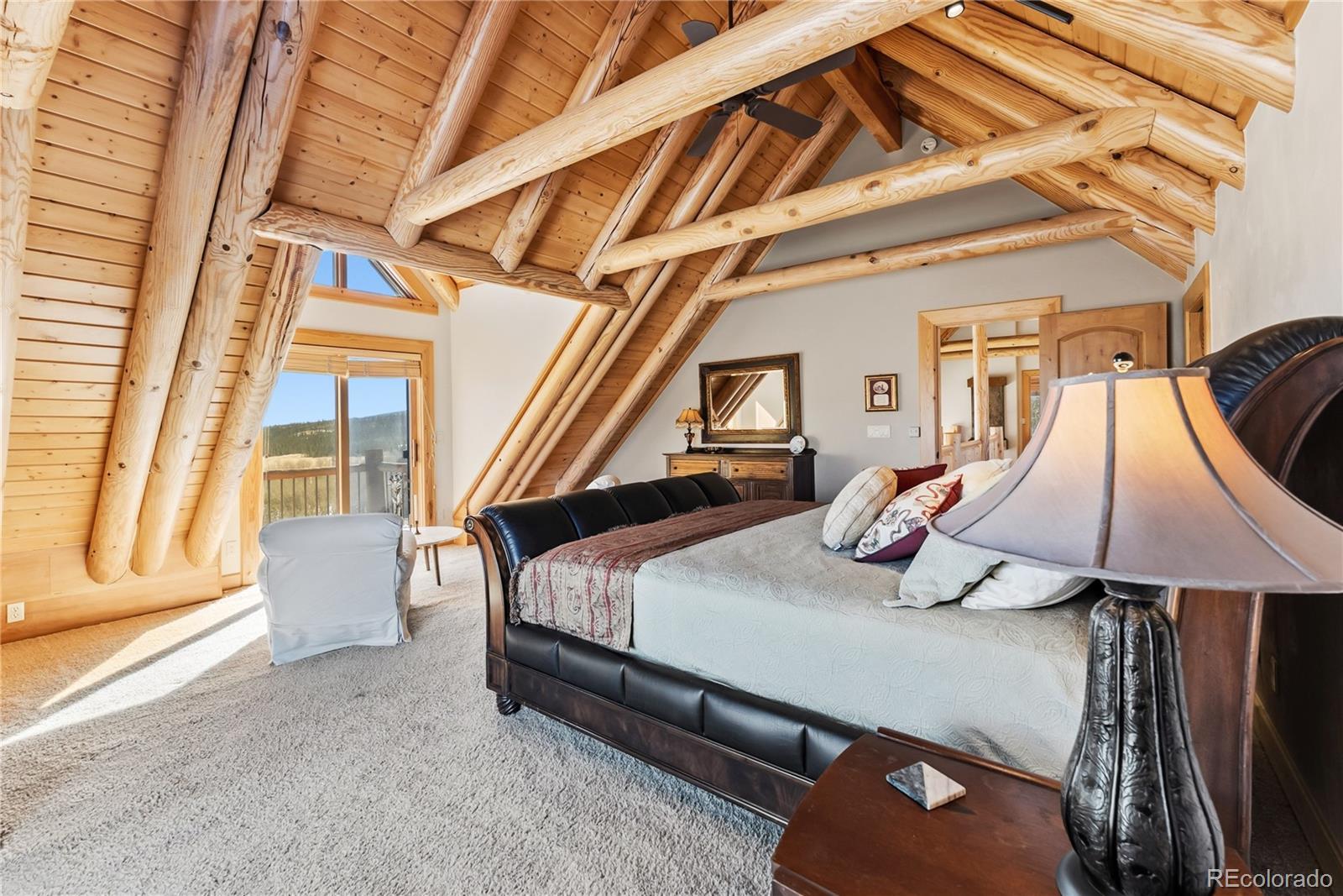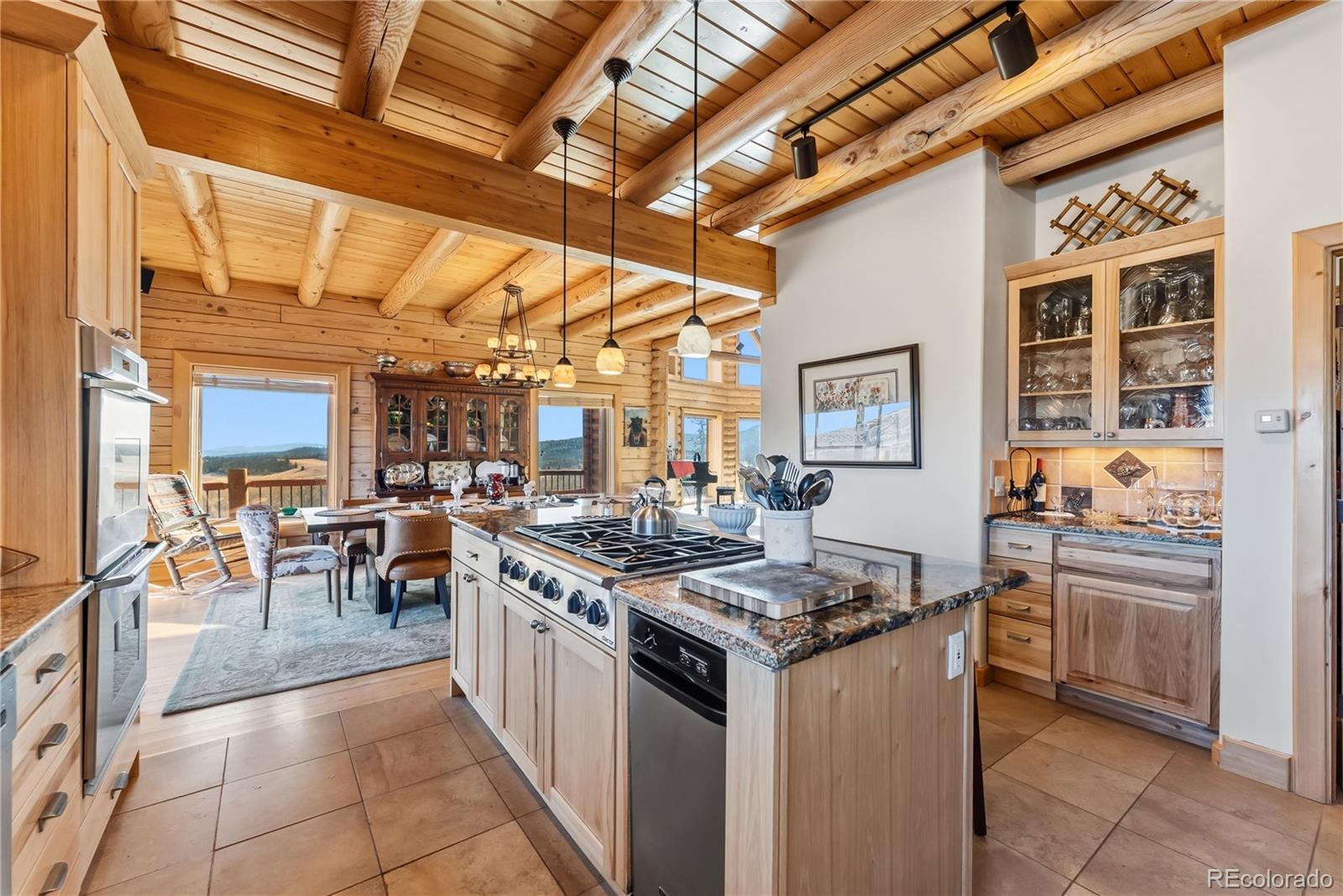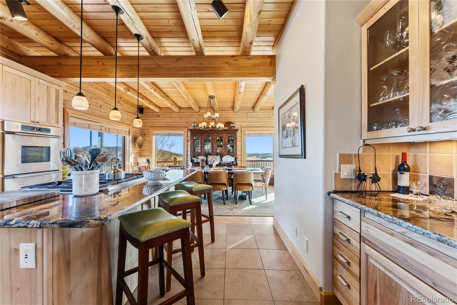 Step through the welcoming gate and venture down a winding road framed by elegant Aspen trees that dance with the mountain breeze. The path leads to an enchanting log home nestled among the awe-inspiring and unobstructed views of Pikes Peak, Lamb Peak, Buffalo Peak, and the Sheep Mountains. This rustic sanctuary feels perfectly in tune with nature, both powerful and peaceful, refined yet wild. Inside, the home offers a sense of comfort and grandeur. Four spacious bedrooms provide restful havens, while the primary suite on the main level epitomizes mountain luxury. A five-piece bath invites relaxation, and the generous walk-in closet ensures space to breathe. Ascend the stairs above the three-car garage and discover the newly created adaptable space. The gourmet kitchen welcomes both culinary creativity and companionship. Outfitted with Bosch and Sub-Zero appliances and framed by glistening Brazilian granite countertops, it’s a space where meals become memories. The living room’s stunning double-sided rock fireplace radiates warmth, while the vaulted tongue-and-groove ceilings and wide windows open the home to breathtaking natural views. The property itself feels alive. Aspens gleam in the sunlight, and a year-round stream brings music to the air. Moose, elk, and deer are frequent visitors—gentle reminders that this retreat coexists with the wild heart of the Rockies. Evenings settle into quiet magic: the glow of the fire pit, the shimmer of the stars overhead, or the soothing bubbles of the private hot tub. For those with furry companions, a fully enclosed acre offers both safety and adventure. Every detail—from the stained decks to the circular driveway—reflects thoughtful care and connection to the place. This mountain sanctuary offers not just a home, but an experience; not just comfort but belonging. There is something timeless about this space—an invitation to pause, to breathe, and to live where nature and serenity dwell in perfect harmony.