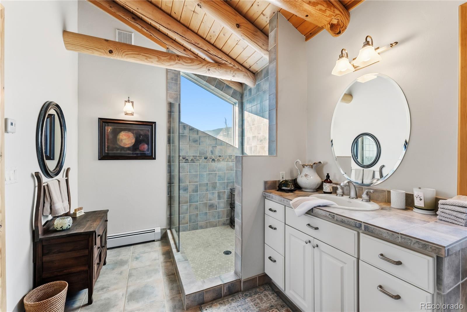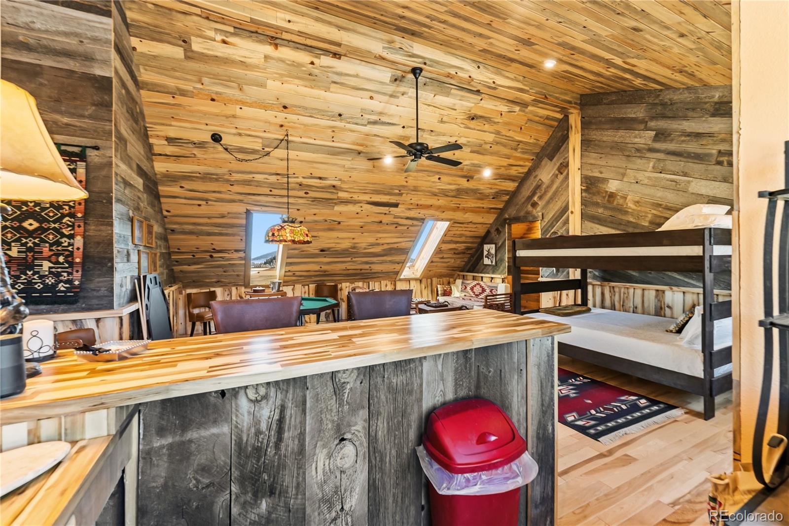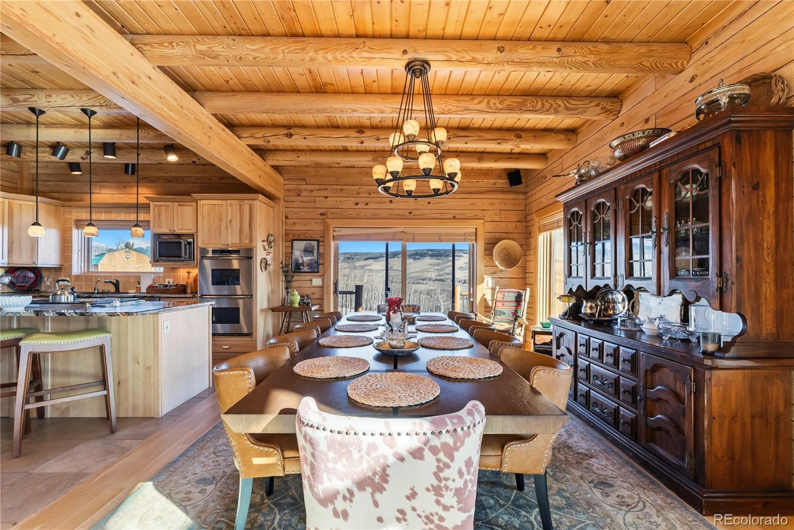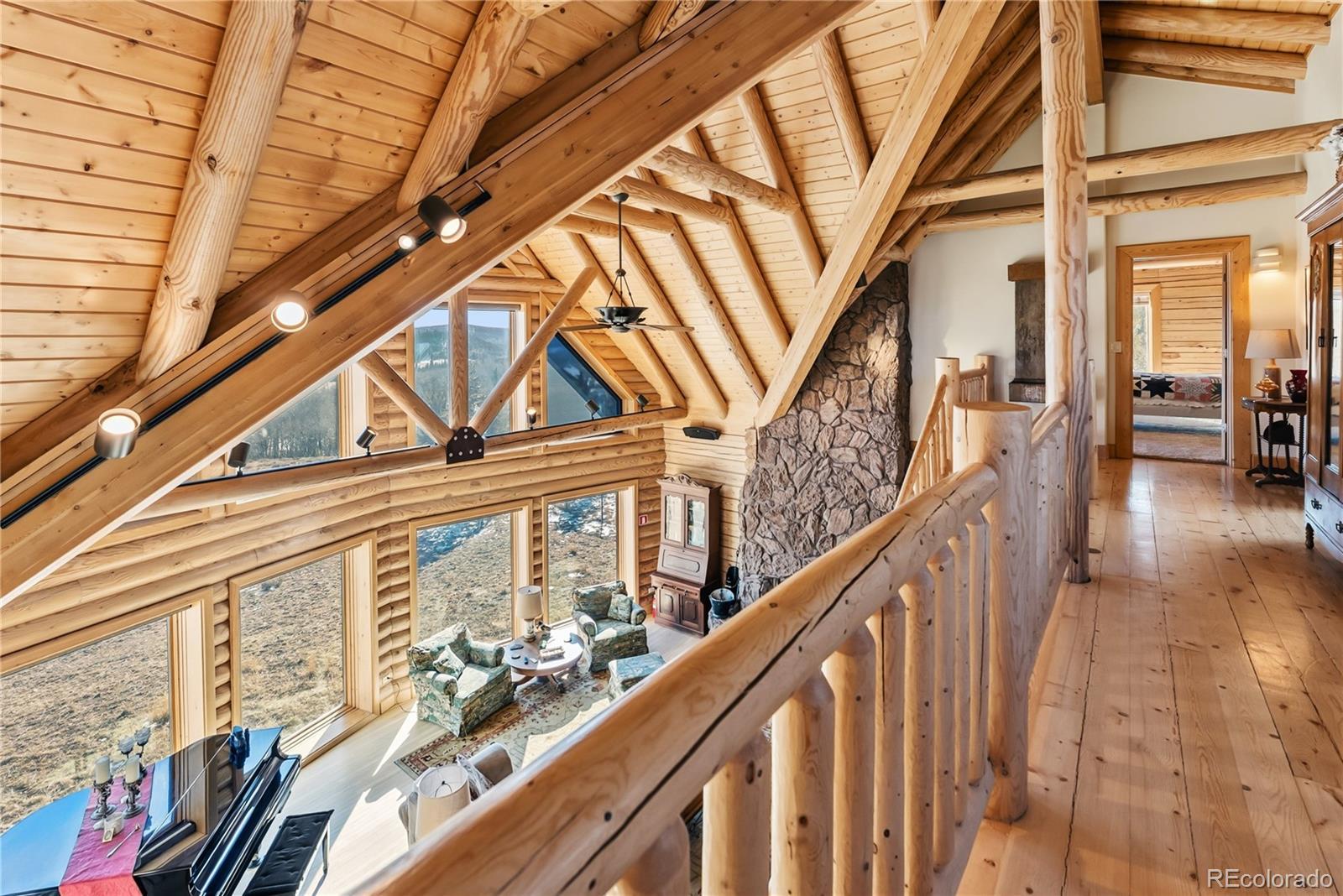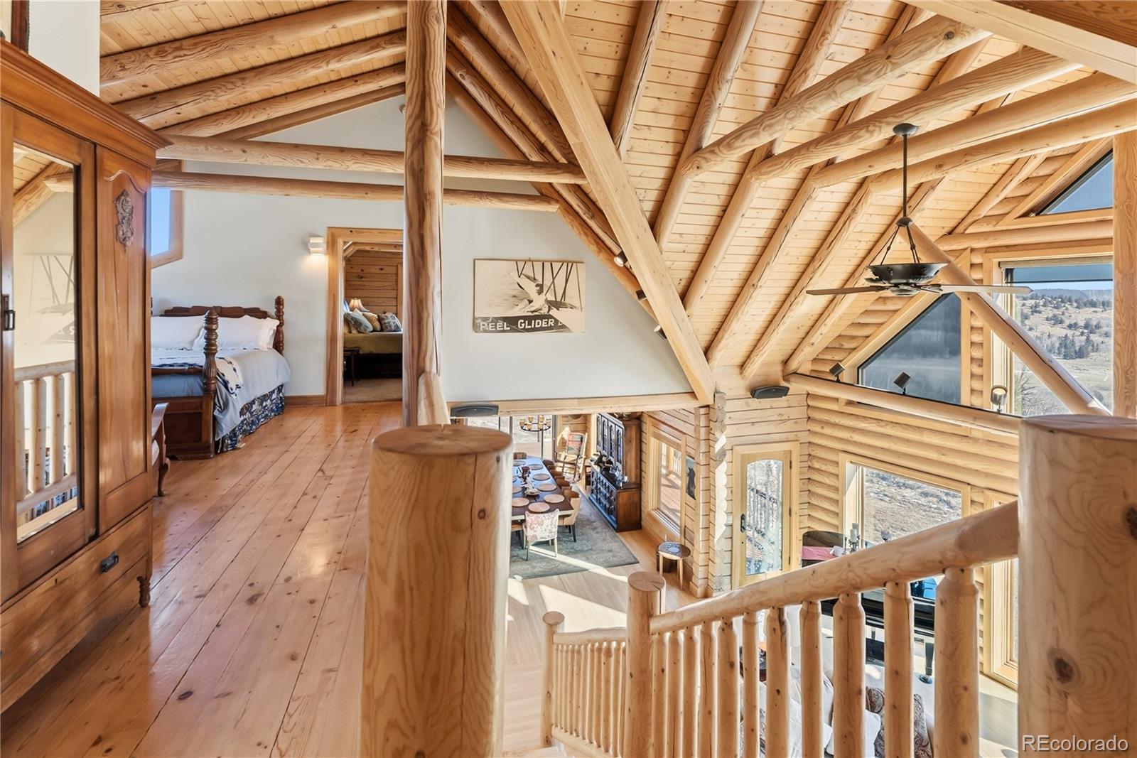 Step through the welcoming gate and venture down a winding road framed by elegant Aspen trees that dance with the mountain breeze. The path leads to an enchanting log home nestled among the awe-inspiring and unobstructed views of Pikes Peak, Lamb Peak, Buffalo Peak, and the Sheep Mountains. This rustic sanctuary feels perfectly in tune with nature, both powerful and peaceful, refined yet wild. Inside, the home offers a sense of comfort and grandeur. Four spacious bedrooms provide restful havens, while the primary suite on the main level epitomizes mountain luxury. A five-piece bath invites relaxation, and the generous walk-in closet ensures space to breathe. Ascend the stairs above the three-car garage and discover the newly created adaptable space. The gourmet kitchen welcomes both culinary creativity and companionship. Outfitted with Bosch and Sub-Zero appliances and framed by glistening Brazilian granite countertops, it’s a space where meals become memories. The living room’s stunning double-sided rock fireplace radiates warmth, while the vaulted tongue-and-groove ceilings and wide windows open the home to breathtaking natural views. The property itself feels alive. Aspens gleam in the sunlight, and a year-round stream brings music to the air. Moose, elk, and deer are frequent visitors—gentle reminders that this retreat coexists with the wild heart of the Rockies. Evenings settle into quiet magic: the glow of the fire pit, the shimmer of the stars overhead, or the soothing bubbles of the private hot tub. For those with furry companions, a fully enclosed acre offers both safety and adventure. Every detail—from the stained decks to the circular driveway—reflects thoughtful care and connection to the place. This mountain sanctuary offers not just a home, but an experience; not just comfort but belonging. There is something timeless about this space—an invitation to pause, to breathe, and to live where nature and serenity dwell in perfect harmony.