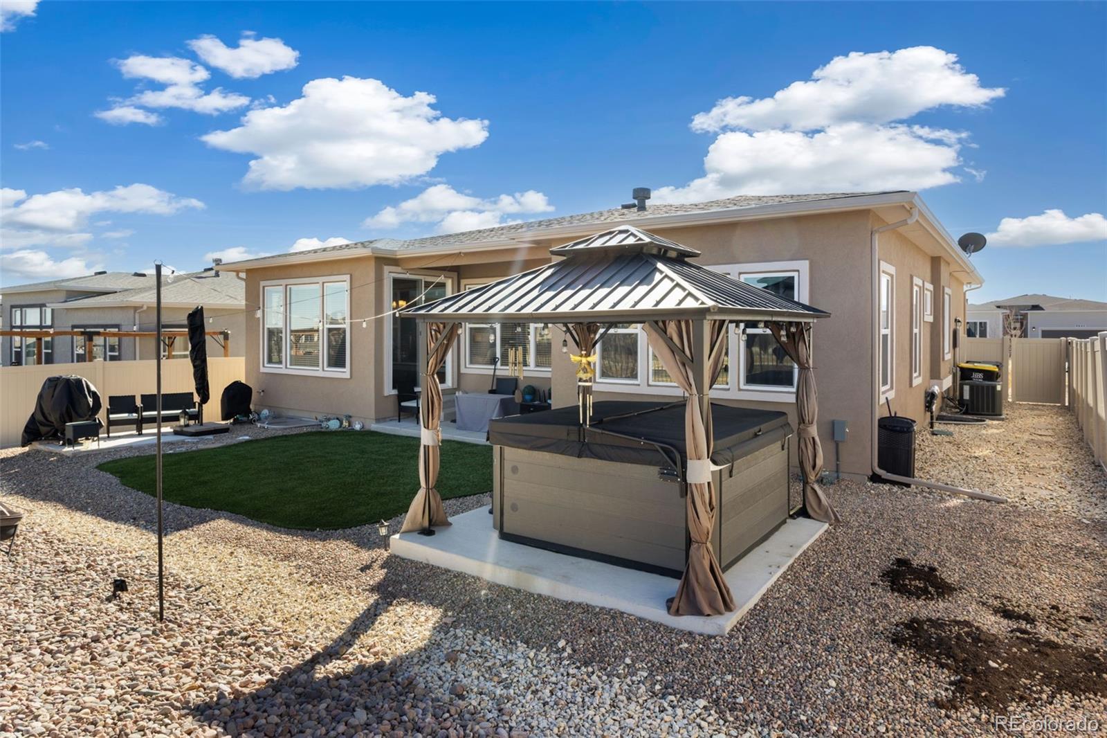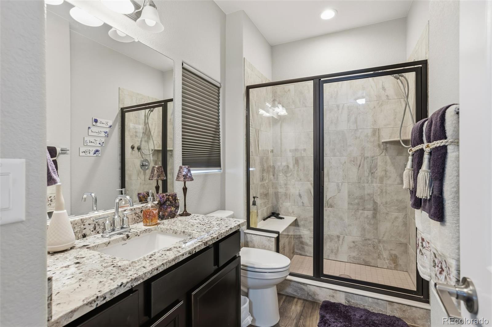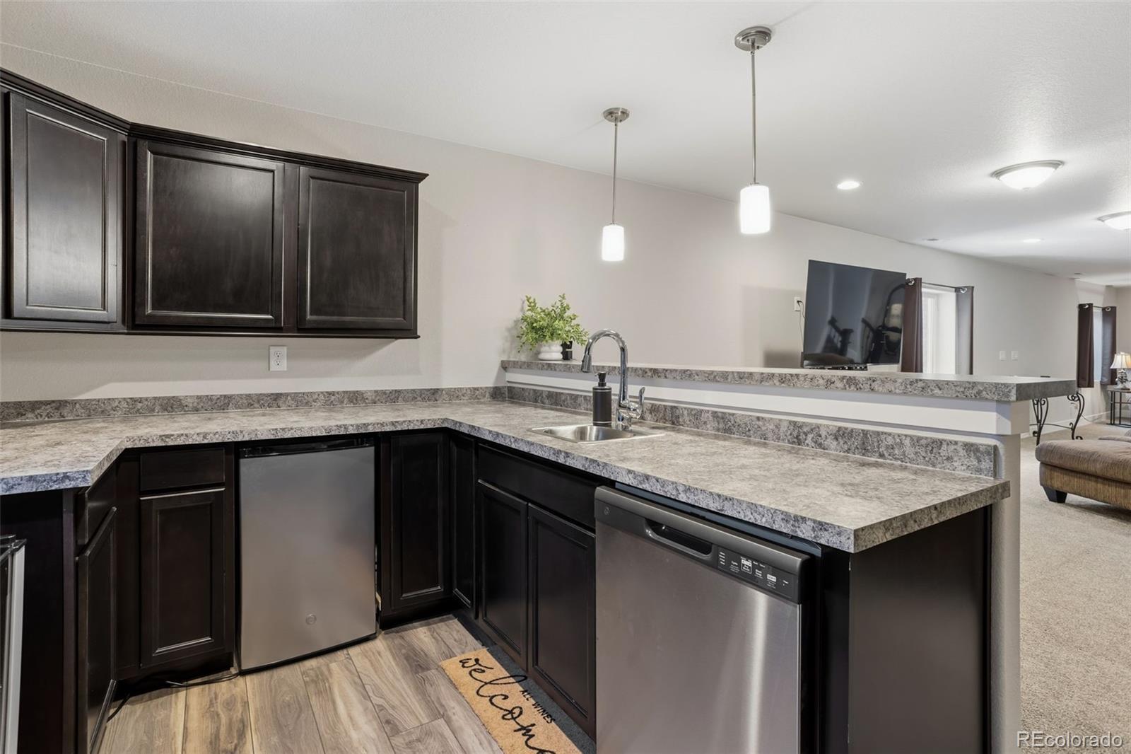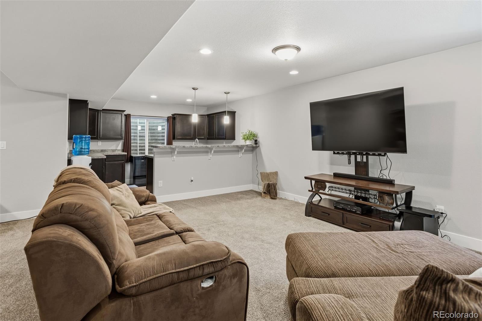 Built in 2021, this well-designed 4-bedroom, 3.5-bath home offers modern finishes, a smart layout, and exceptional flexibility. The main level features two private en suite bedrooms, including a spacious primary suite, making it ideal for multi-generational living or guests. A cozy living room with a gas fireplace anchors the open-concept living space, while the bright kitchen offers abundant natural light and an easy flow for everyday living and entertaining. A convenient mudroom with laundry sits just off the attached 2-car garage, another 1 -car garage attached on the other side, and a half bath completes the main floor. The finished basement adds two additional bedrooms, a full bathroom, and a versatile flex space perfect for a home office or gym. A full wet bar—complete with refrigerator and dishwasher—creates the perfect setup for movie nights, game days, or entertaining, with plenty of room to spread out and relax. Outside, enjoy a low-maintenance xeriscaped and turf backyard designed for entertaining or unwinding in a spa tub. Residents enjoy access to both community clubhouses and amenities, along with a golf course, shopping, and restaurants nearby. A newer home with a rare dual–main-level en suite layout, ample space, and an unbeatable combination of comfort and convenience.