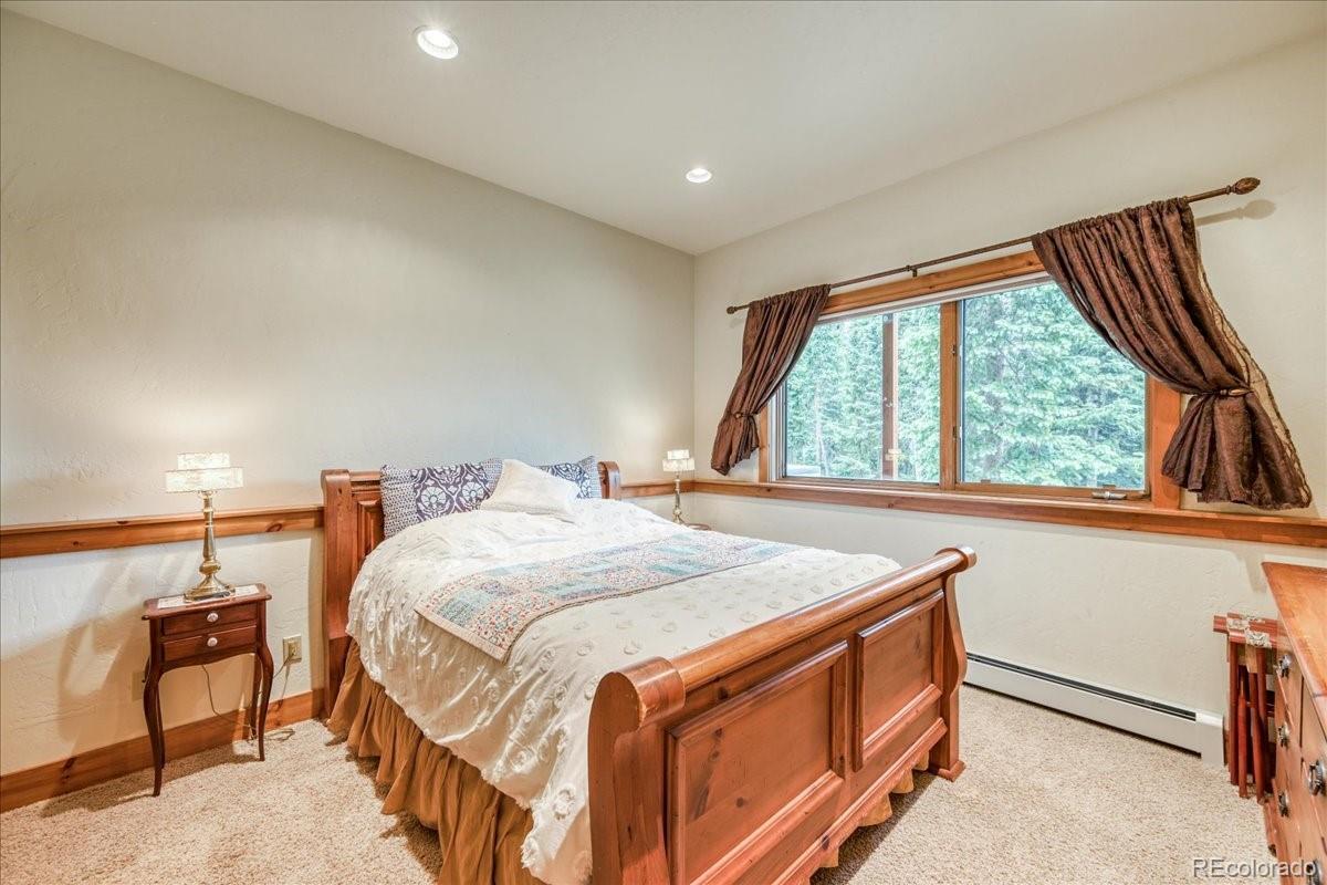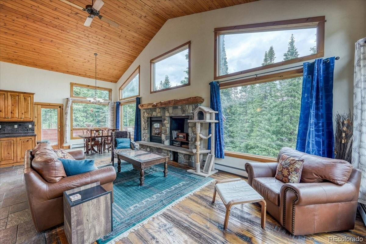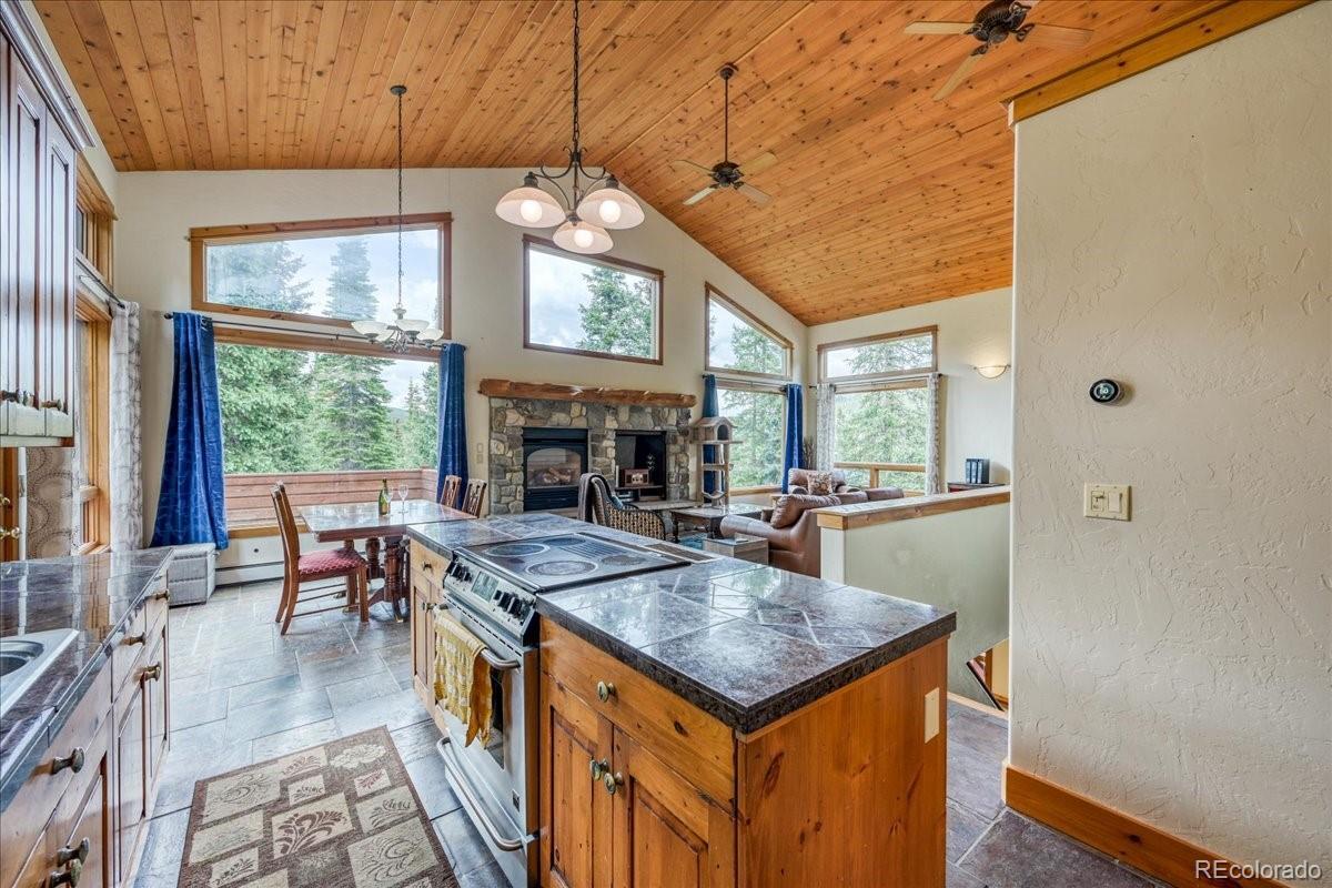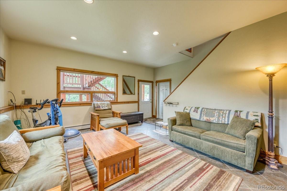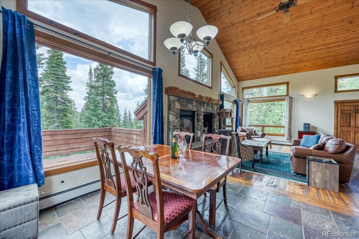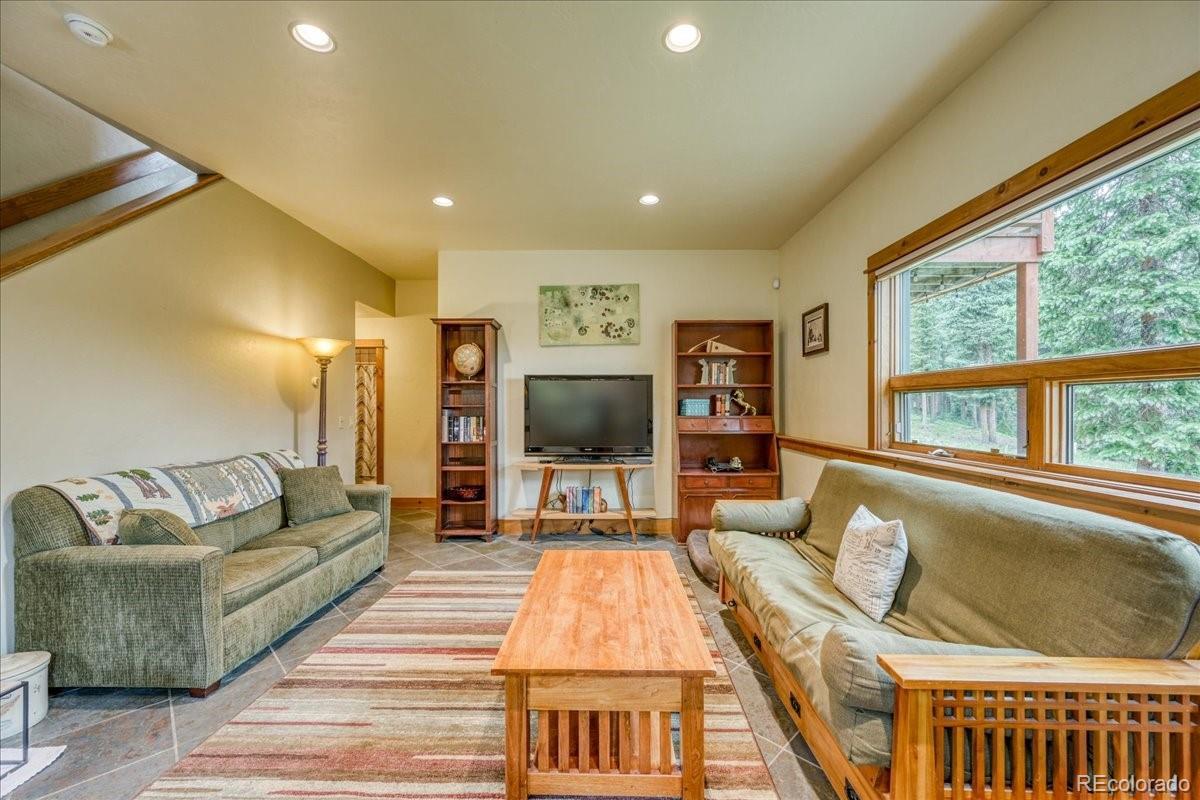 Nestled on a peaceful, wooded lot just 10 minutes from downtown Breckenridge, this mountain home offers stunning views and space for everyone. An open floor plan features a large great room with a vaulted ceiling, two ceiling fans and expansive windows showcasing Quandary, Red Mountain, and The Tarn. The open kitchen is equipped with granite tile countertops, stainless steel appliances, and mountain-inspired finishes. With comfort and privacy in mind, each bedroom has its own private bathroom. Plus, a second living area on the lower level provides extra space for friends and family to relax. The primary bedroom features large windows, a walk in closet and a spacious bathroom. Step outside to enjoy the recently stained decks or unwind in the private hot tub. An oversized two-car garage and plenty of storage for your gear complete this mountain home.