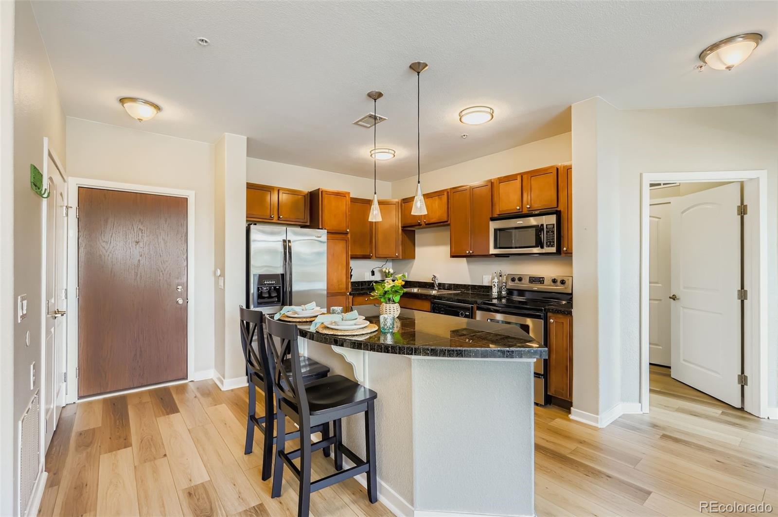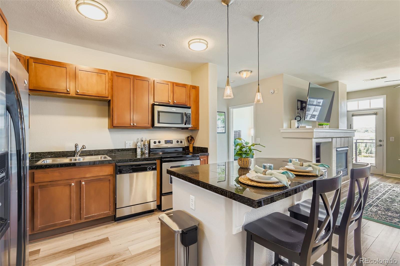 Open House Sat 11/8 3pm-5pm. Move-In Ready Mountain-View Luxury! Experience elevated living at its finest in this beautifully updated third-floor condo, offering unmatched mountain views and true privacy—a rare find in this community. Enjoy your morning coffee or evening glass of wine on the private terrace overlooking the Front Range, then cozy up by your very own fireplace in winter—an amenity not found in every unit. This home is priced to sell by a motivated seller—recently purchased for $325,000 and appraised at $353,000—making it an incredible opportunity for today’s buyer. Step inside to find a bright, open-concept floor plan enhanced by modern light-toned vinyl plank flooring, abundant natural light, and sweeping views. The kitchen will delight any home chef with granite countertops, stainless-steel appliances, and a spacious island with bar seating—perfect for entertaining or casual dining. The open living and dining areas flow seamlessly, framed by large windows and a glass door showcasing the breathtaking mountain backdrop. Relax and recharge in the serene bedroom featuring a wall of windows and a generous layout. The luxurious bathroom includes an oversized soaking tub—your personal retreat after a long day. Year-round comfort is guaranteed with central A/C, ceiling fans, and the option to enjoy refreshing breezes in spring and fall. Seller is considering renting this unit out if it doesn't sell, so if you've been eyeing this one...it's been waiting for you!