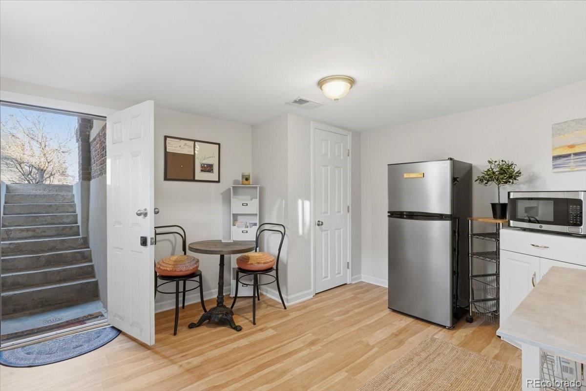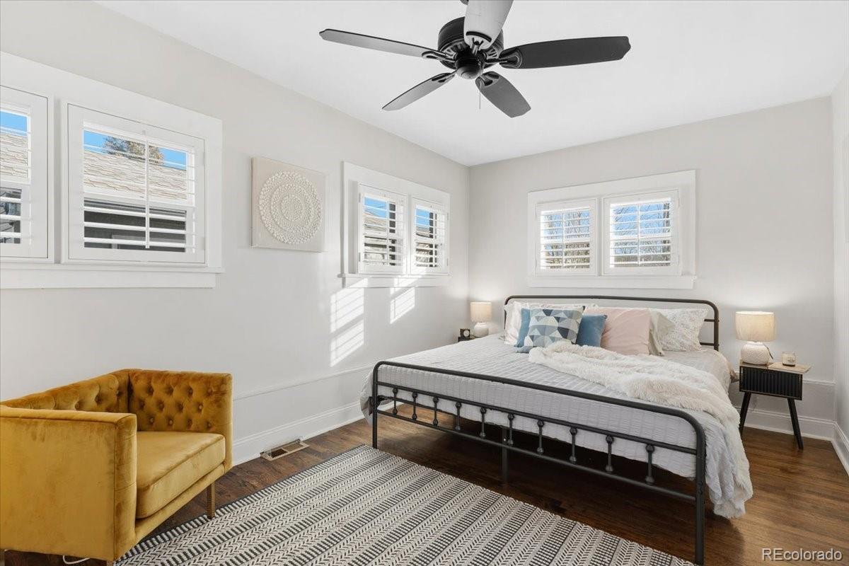 This spacious, charming, and beautiful updated bungalow will exceed your Bungalow Dreams! At the top of a hill, on a block with stunning architecture and some mountain & sunset views, this home is a must-see! This is a stellar location, just 4 blocks from West Highland in NW Denver; less than a mile down the hill to Sloan's Lake Park & all that's hot at Edgewater Marketplace on W 25th Ave; and just 1.2 miles to both Highland Square (32nd & Lowell) and to the heart of Berkeley (Tennyson from 38th to 46th). Biking in and out of this location is exceptional. Its renovation quality is fantastic. The original trim details are wonderful, too. The mesmerizing southern sun is warm and charming. The spacious kitchen would be a perfect set for you to be an internet cooking star. Its versatility is dreamy, with a separate exterior entrance to the basement to offset some of the mortgage payment by having a housemate who can come and go via their own entrance and/or for a short-term rental opportunity (seller has a short term rental license and has had great success with it in years-past while living upstairs). The outdoor living spaces are a wonderful extension of the interior living spaces. The back yard is enchanting. The landscaping in each of the yards are thoughtfully done for beauty, water efficiency, and easy maintenance. Are you a 'car-girl'? Or do you want a 'man-cave'? If so, this gigantic garage is for you! In addition to 2 spaces inside the garage, there's room at the end of the driveway for a couple more cars without blocking access to the garage.