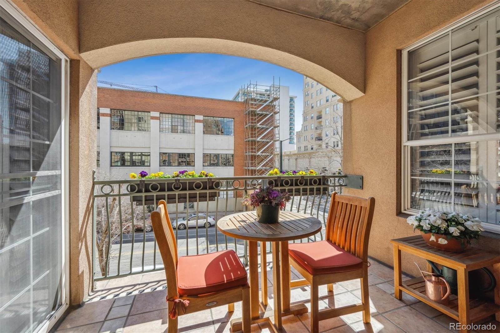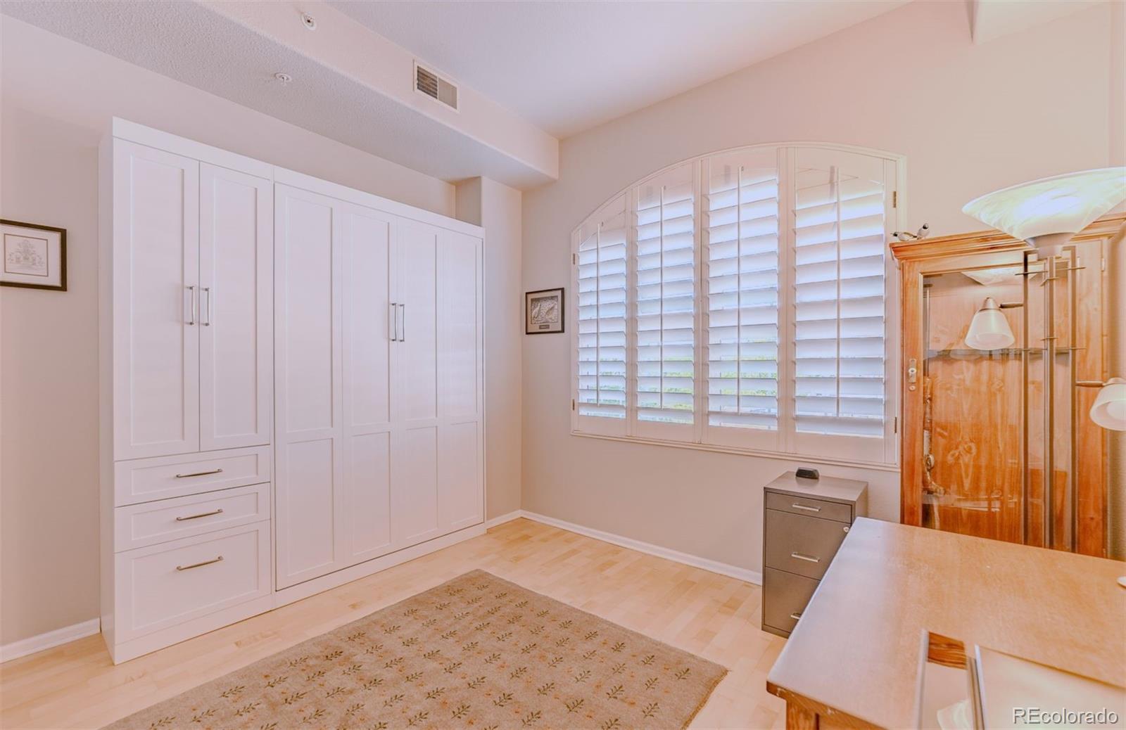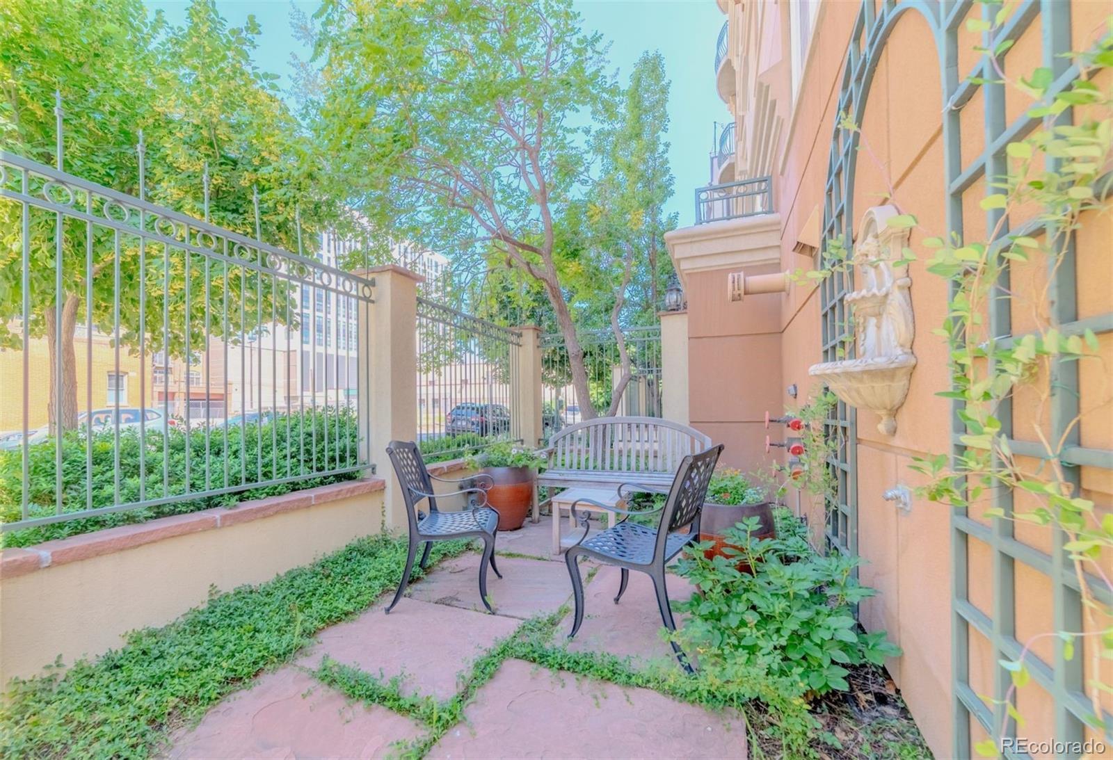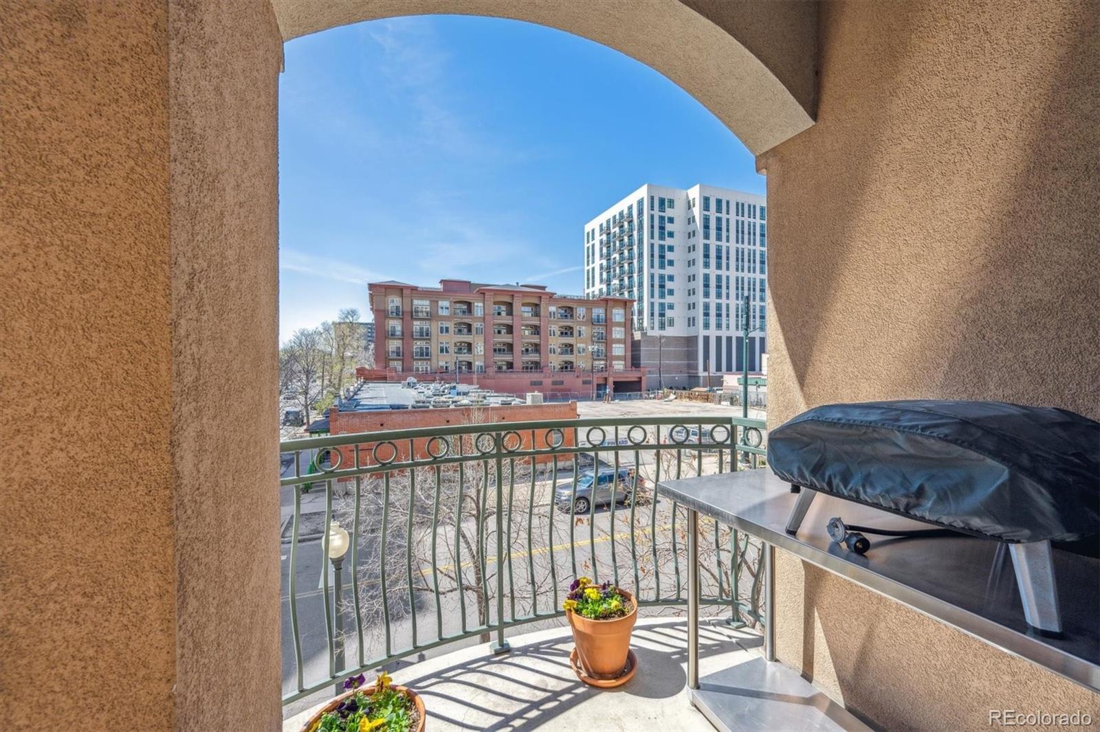 Spacious & gracious condo in the Trieste building, this SW corner unit welcomes all with generous sized windows and two balconies, outfitted with plantation shutters throughout. Large, elegant updated kitchen, new Bosch appliances, including range, dishwasher and refrigerator replaced in the past six months! A rare pantry closet, 42" cabinets and loads of counter space will make your cooking and entertaining dreams easy to realize! The primary suite has direct access to one of the balconies, a huge outfitted closet, a w/5 piece bath with dual sinks as a newly expanded shower. An office with built-ins, make it easy to work or indulge in hobbies from from you private space. The second bedroom features a murphy bed for guests, while offering a study or den for daily use. The great room with large dining and living areas centered by dramatic gas fireplace and access to two balconies to complete this spacious 1665sf home. In addition, the furnace and washer/dryer have all been recently replaced. Parking is easy, with the two best spots in the building, just inside the garage, and next to your private storage closet. There is also an additional shared storage space on your floor. TAKE ADVANTAGE OF LOWER RATES, AND BUY THE BEST VALUE IN DENVER! The Golden Triangle neighborhood is a walkable urban paradise, home to the Still, Kirkland, Colorado History and Denver Art Museums, Main Library branch, Civic Center Park, a variety of restaurants and easy access to the Cherry Creek Trail and the DCPA. The Trieste building is centrally located, convenient to places you might want to visit, plus easy access to highways, when you want to get away. With secure entry and a capable HOA, this is the ultimate in downtown living and easy lock & leave residence. Explore the neighborhood at https://www.goldentriangleofdenver.com/