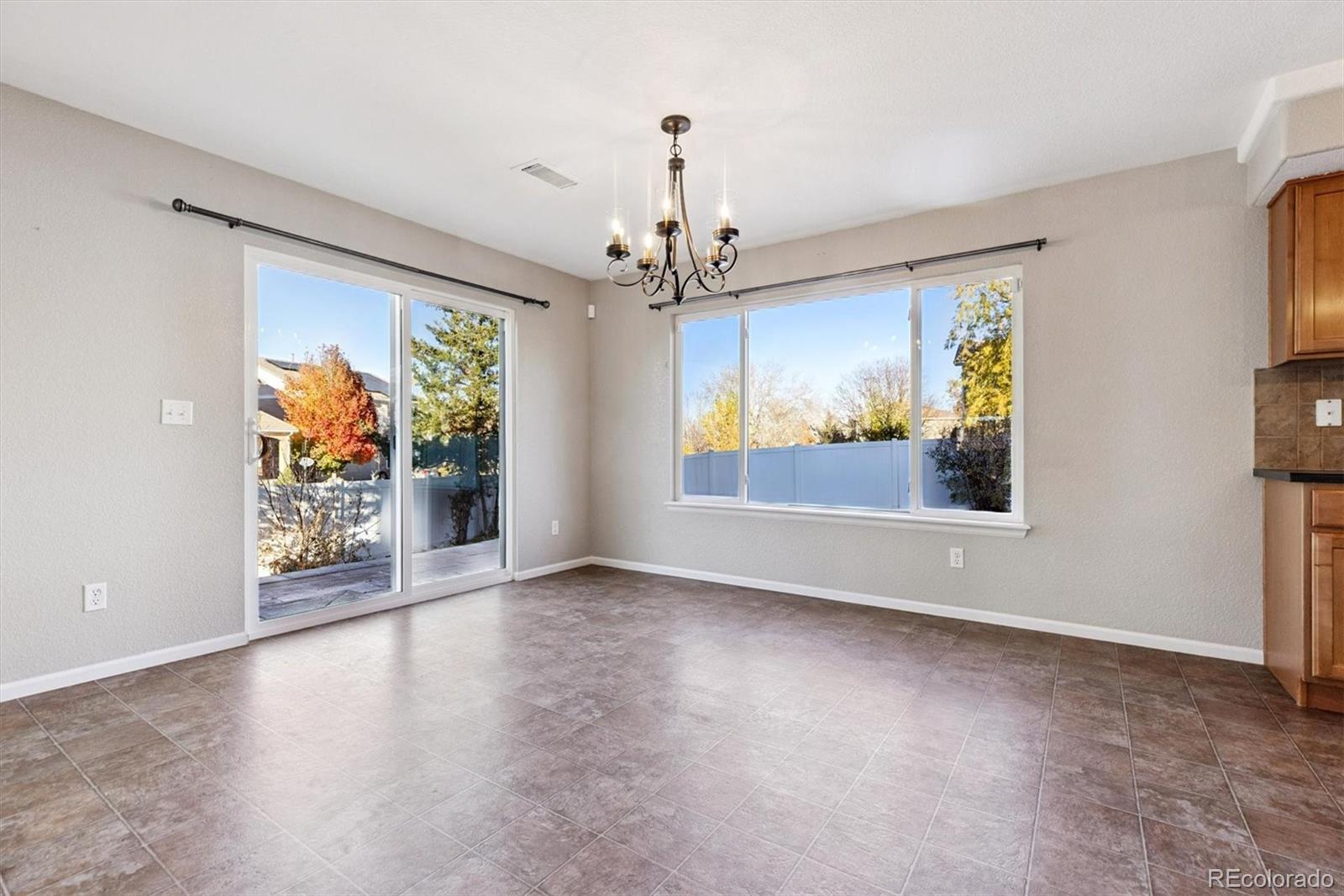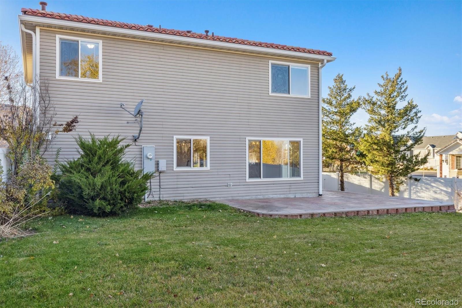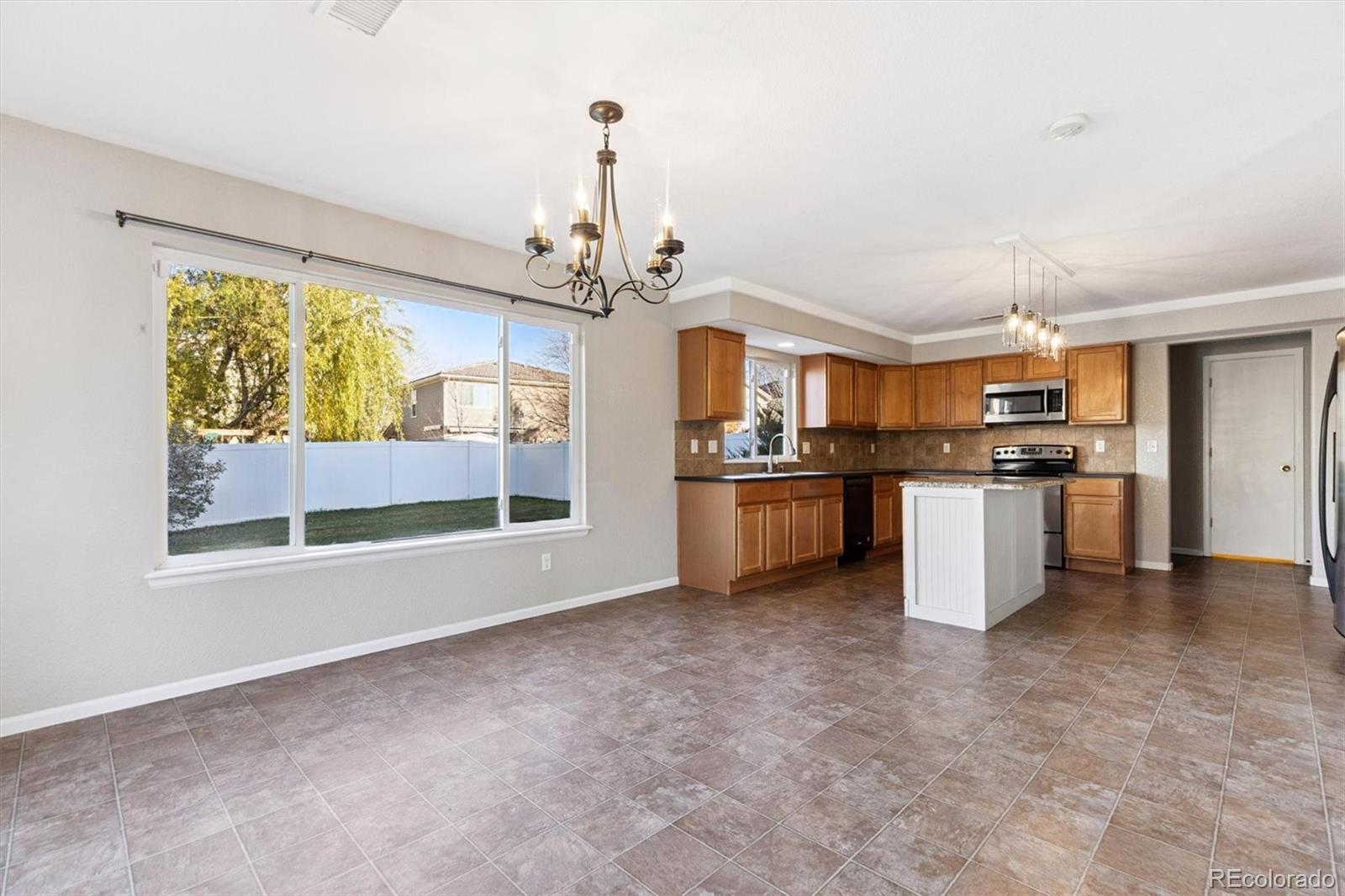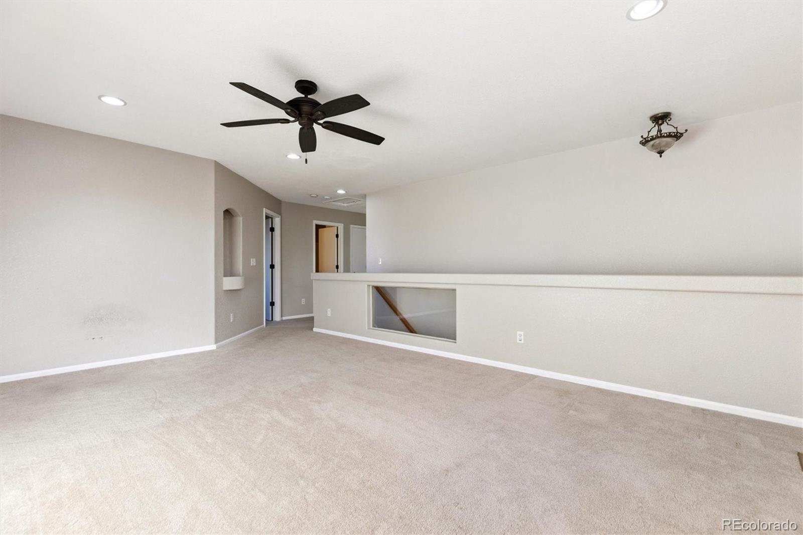 Light-filled 3 bed / 3 bath home with a huge loft on a private corner lot. The open floorplan is flooded with natural light. Large living room and an open kitchen with maple cabinets, generous island, stainless appliances, and roomy dining area with a new sliding door to the wraparound patio and large yard. Upstairs offers 3 bedrooms, 2 baths, and a giant loft—perfect as a second living area, playroom, home office, or easily converted to a 4th bedroom. The primary suite includes a spacious walk-in closet and a soaker tub. Outside features a landscaped yard with privacy fencing, mature trees, and an expansive patio. West-facing front for natural snowmelt and shaded backyard in summer. Corner lot with no shared driveway and extra privacy. Garage is on the same level as the house; insulated garage door. Cozy front porch, stucco front exterior, and low-maintenance vinyl siding. 2025 updates: New Class 4 impact-resistant roof (insurance discount potential), new gutters, new fencing, and some new siding. Washer/dryer included (2019). Prime location: Quick access to DIA and light rail; walkable to Town Center Park, rec center with pool and slides, farmers market on Wednesdays, Beer Garden, Chipotle, and King Soopers. Close to Costco, Sprouts, Dunkin, Panera, GVR PGA golf course, trails, creeks, parks, and nature areas.
