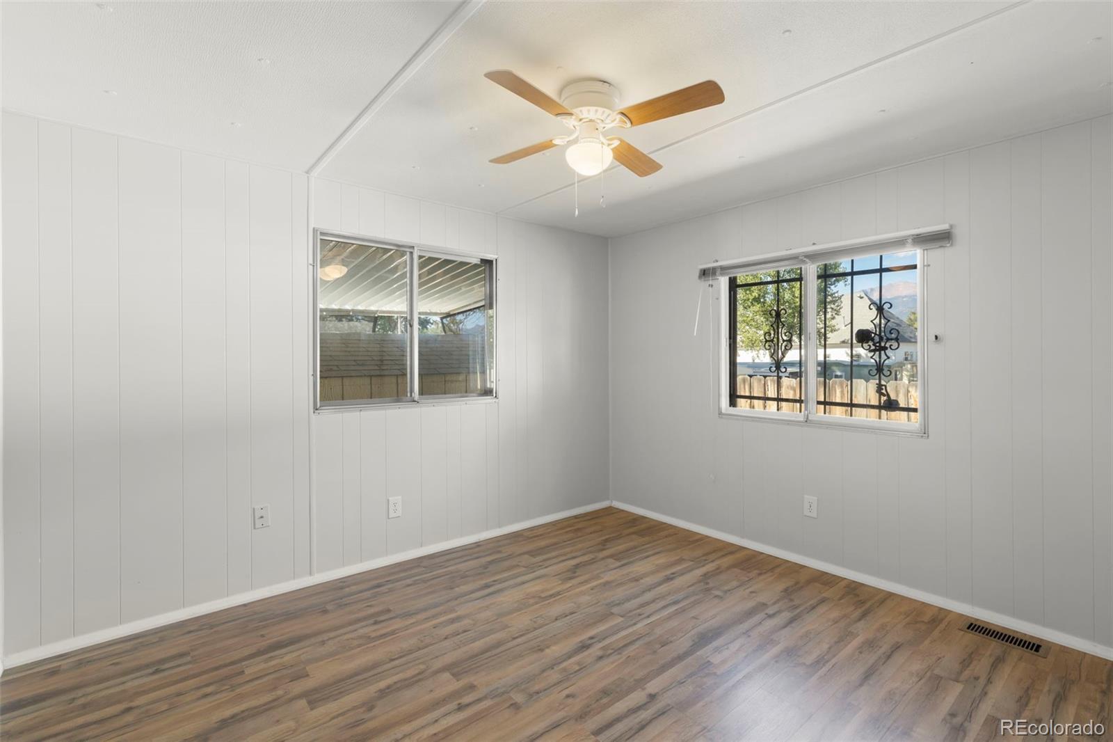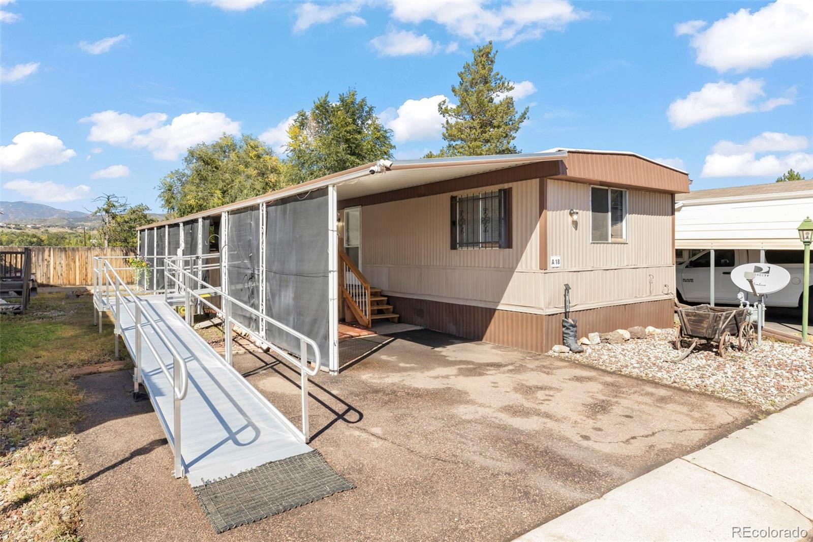 Welcome Home to this well cared for, updated 3 BD 2 BA Manufactured home in 55+ community of Emerald Acres! Ready to move in! Very clean, Includes bright natural lighting, spacious living area, new water-resistant laminate flooring throughout, ramp accessible, seller will remove if buyer doesn't need this ramp in place. Central heat and air, ceiling fans in every bedroom, huge linen closet in bathroom, storm windows, and appliances included. 3 sheds included adding plenty of storage, covered parking with full length carport sunscreen/snowscreen awning, Great location! Close to downtown, Garden of the Gods, Penrose Hospital, University Village, University of Colorado Springs, Trader Joe's, I-25. Priced to sell! Schedule your showing today!