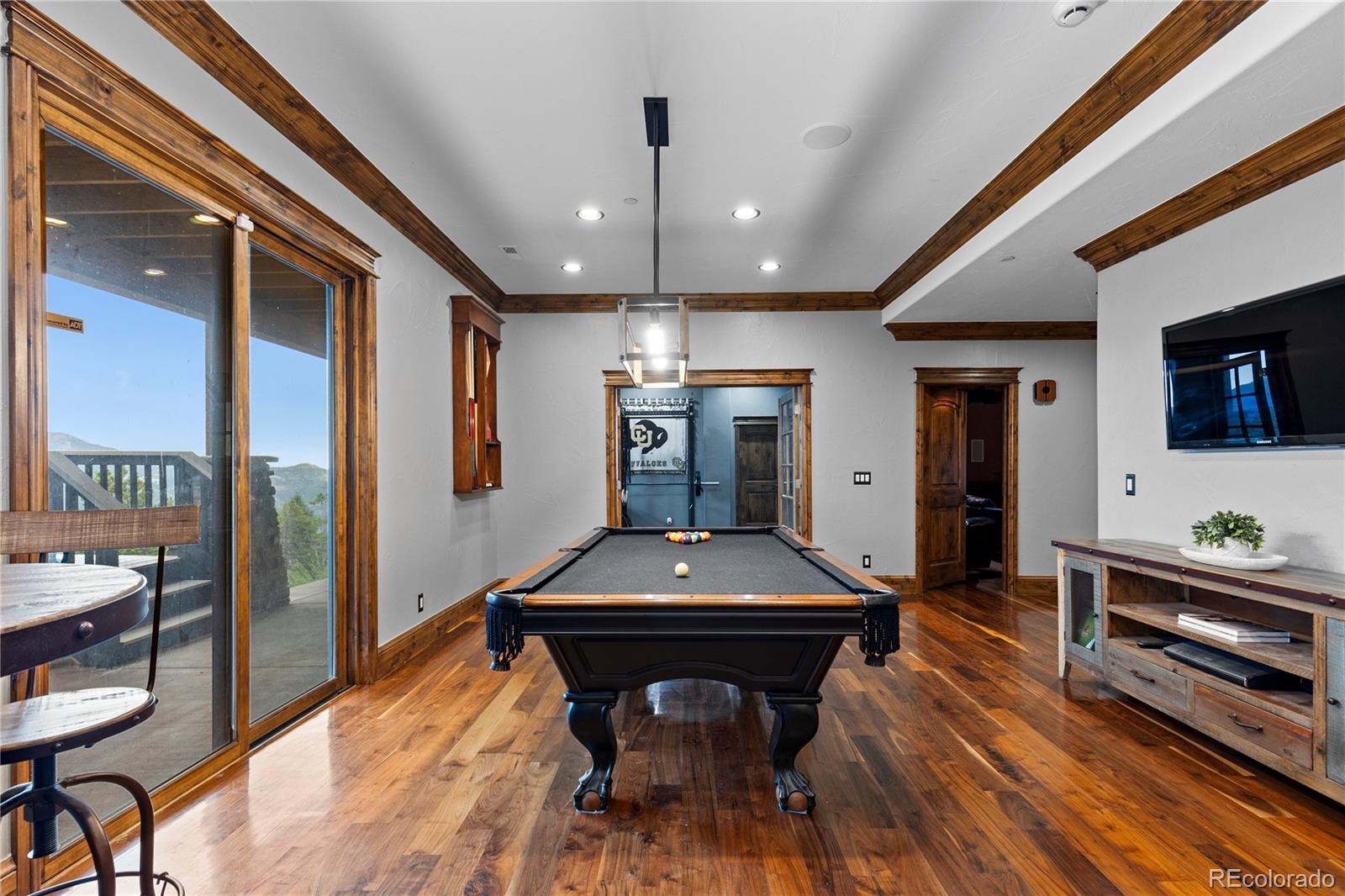 Tucked into a peaceful corner of Evergreen, this inviting custom retreat greets you with a charming porte-cochère, offering a warm welcome and sheltered entry. Inside, soaring ceilings, rich wood beams, and striking onyx slab flooring create a sense of comfort and character, while expansive windows frame breathtaking views of the Continental Divide. The main level is designed for both relaxed daily living and memorable gatherings—whether you’re hosting holidays with loved ones or enjoying a quiet evening by the fire. The chef’s kitchen flows effortlessly into the great room and formal dining area, creating a natural gathering place where conversations linger and memories are made. The primary suite feels like a true haven, offering a spa-inspired bath and steam shower—perfect for unwinding at the end of the day. A dedicated office, home theatre, game room with custom bar, and Control4 whole-home automation provide flexibility for work, play, and entertaining, all thoughtfully designed to support your lifestyle. Step outside onto the expansive deck to savor morning coffee, glowing alpenglow sunsets, and clear night skies filled with stars. Multiple patios and beautifully integrated outdoor spaces invite you to slow down and enjoy the surrounding landscape, while the oversized four-car garage offers ample room for vehicles, outdoor gear, and hobbies. Perfectly positioned for year-round adventure, this home provides easy access to hiking, skiing, and mountain biking, with Evergreen’s beloved lake, golf courses, and trail systems just a scenic drive away. A truly special place to call home.