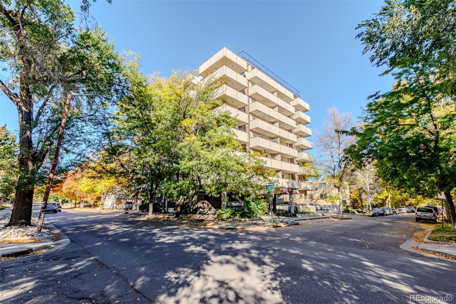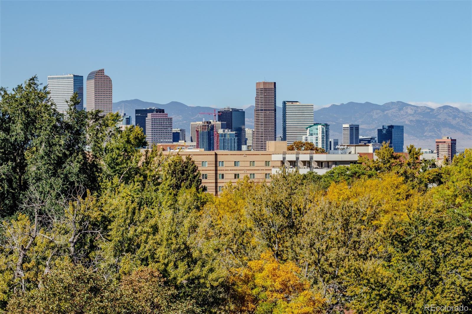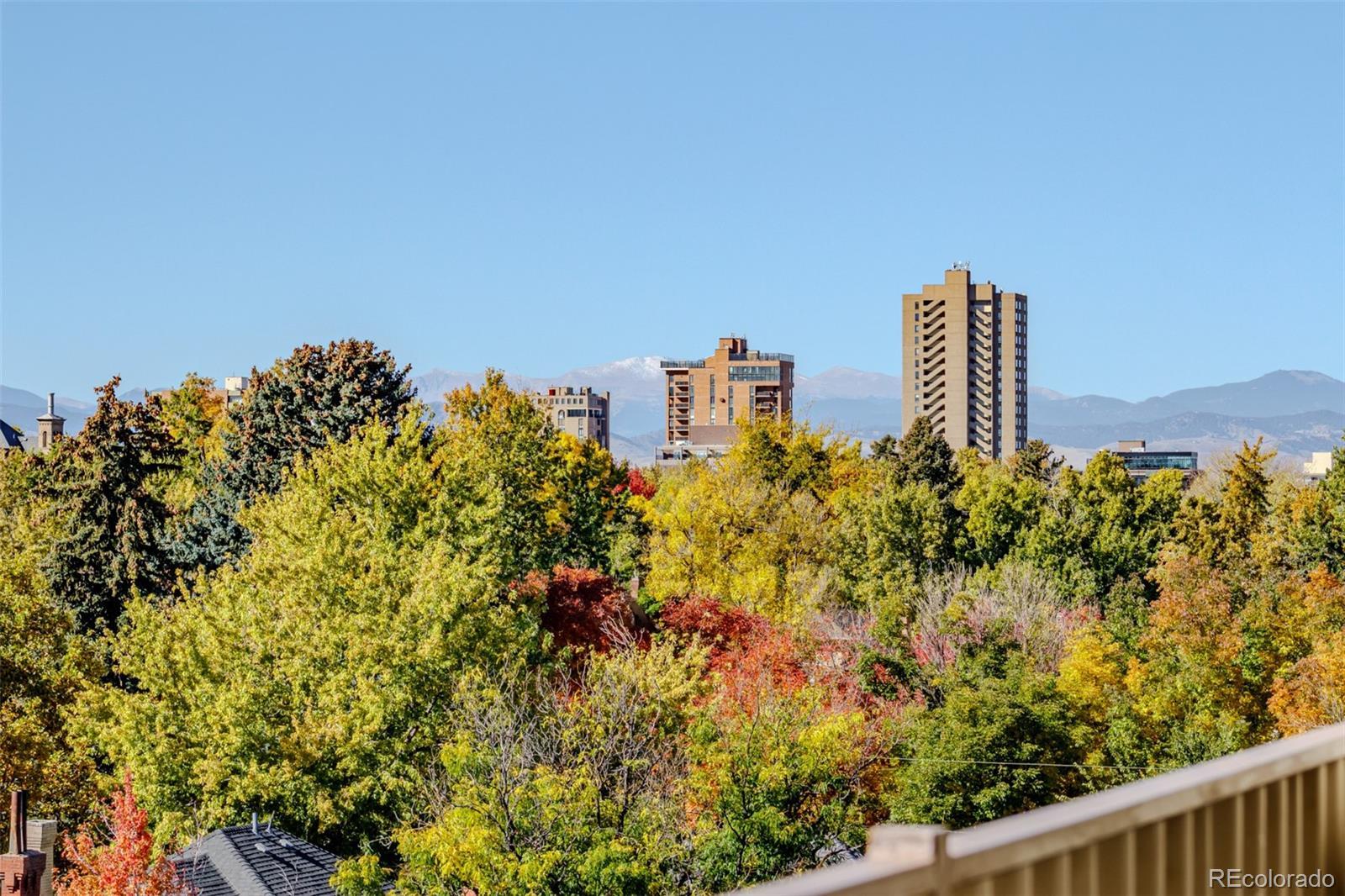 Welcome to this darling one-bedroom, one-bath condo in the heart of Congress Park! Perfectly situated on the corner of 13th and Steele, this seventh-floor home sits just below the penthouse and offers the best of Denver living - city views, mountain views, and vibrant treetops. Step inside to a thoughtfully renovated kitchen opened for light, space, and effortless entertaining. Gorgeous stone detailing and granite countertops complement newer stainless steel appliances (refrigerator 2 years old, dishwasher less than 1 year). The expansive living room is bright yet cool thanks to Anderson Smart Sun E4 windows (installed 3 years ago) and opens to an oversized balcony - ideal for morning coffee or sunset views. The flexible layout allows room for dining or a home office. The spacious bedroom is tucked away for privacy and features a walk-in closet, abundant storage, and its own balcony access. A renovated full bathroom sits just across the hall. Enjoy southwest sun on your balcony (no snow buildup) and a private storage unit included with the property. This secure building offers a welcoming lobby, deeded parking space (#10), guest parking (first come, first serve), communal card laundry, and an eighth-floor clubhouse with breathtaking city and mountain views from it's balcony. Walk to local restaurants, shops, fitness studios, City Park, and National Jewish Health—or take a quick drive to Cherry Creek Mall, Rose Medical Center, and the Botanic Gardens. HOA covers heat/AC, water, trash, reserves, and insurance. EPDM roof replaced in 2018.