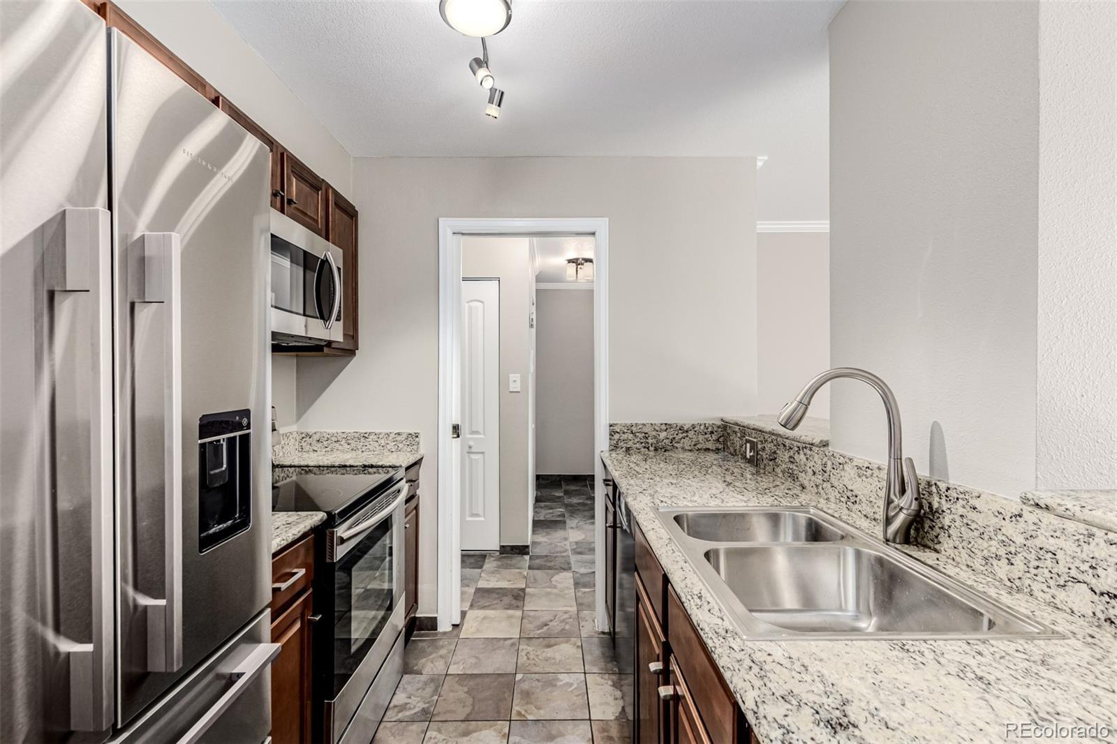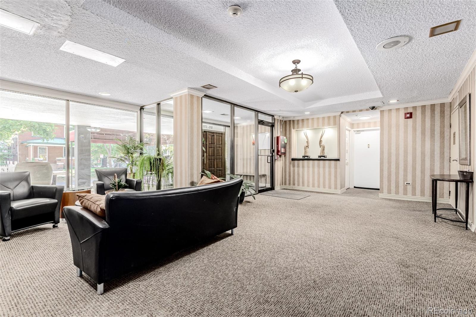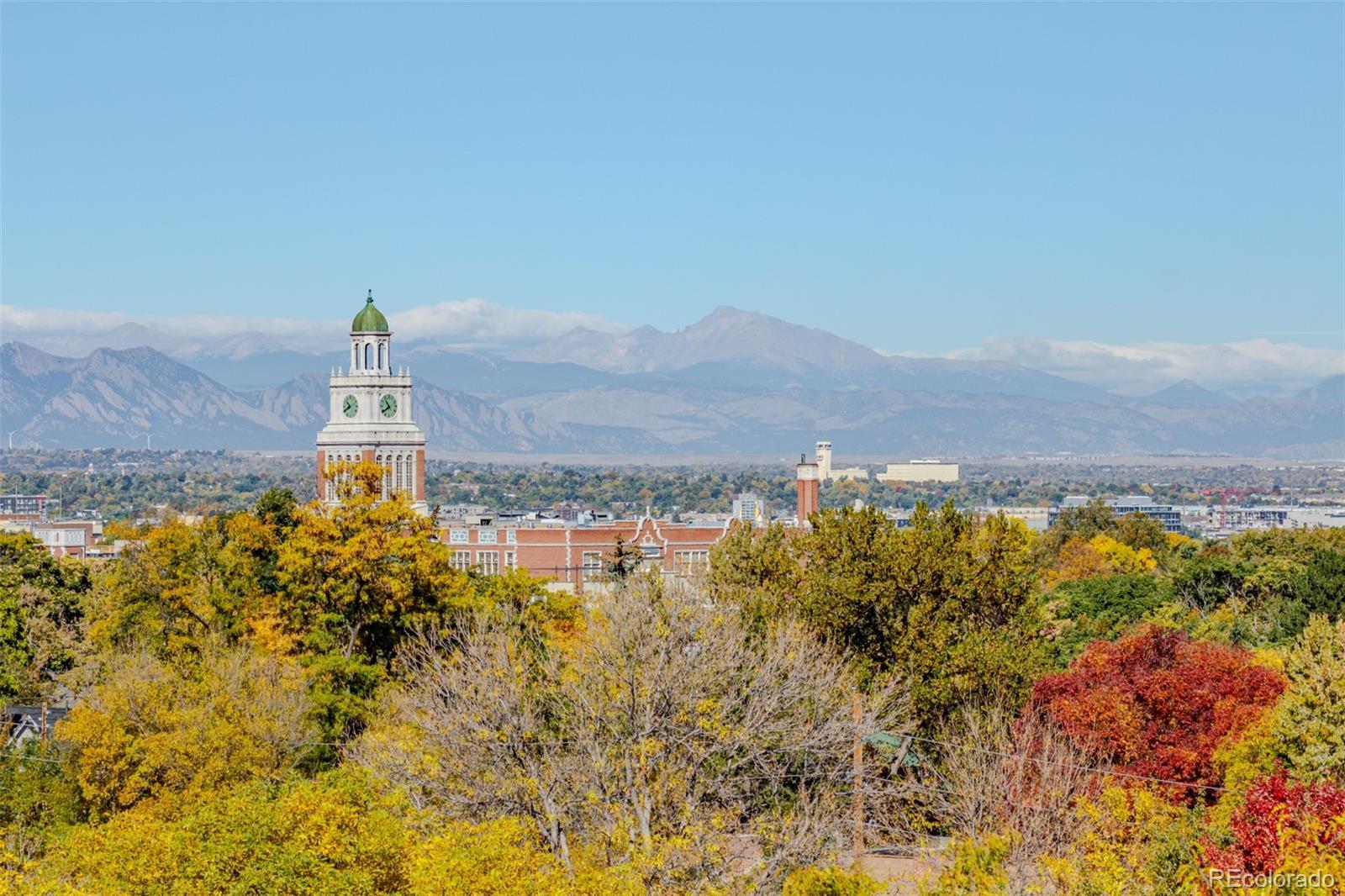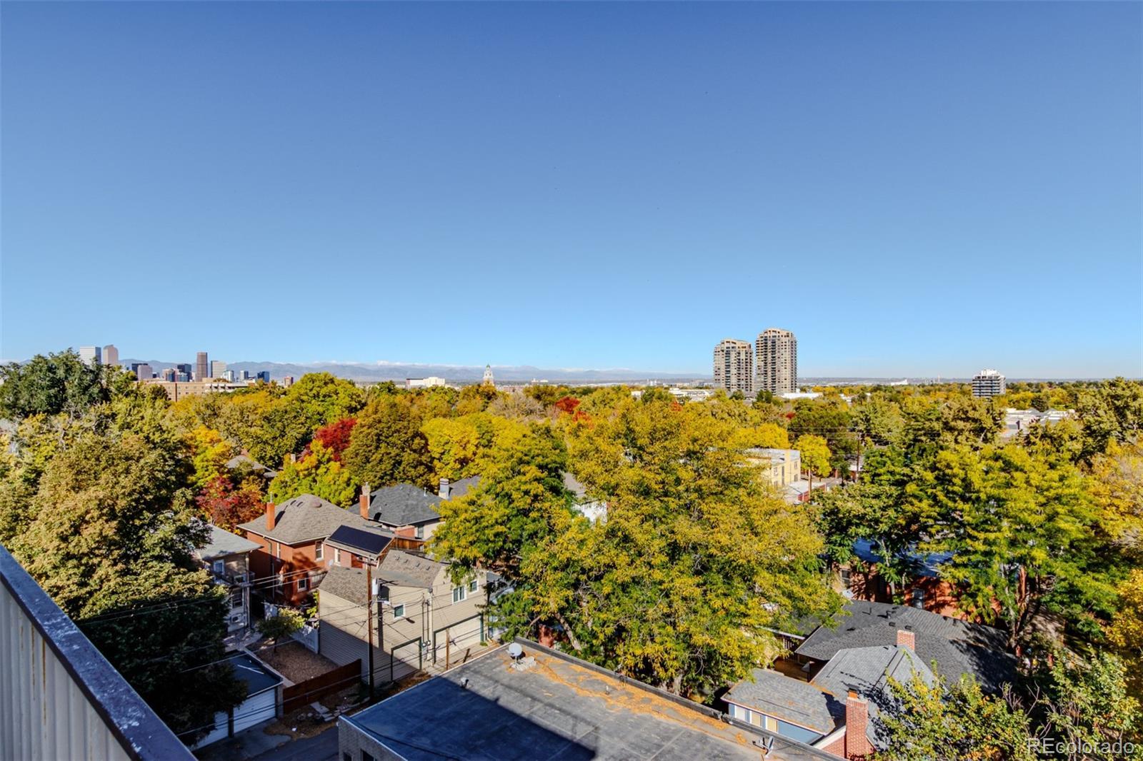 Welcome to this darling one-bedroom, one-bath condo in the heart of Congress Park! Perfectly situated on the corner of 13th and Steele, this seventh-floor home sits just below the penthouse and offers the best of Denver living - city views, mountain views, and vibrant treetops. Step inside to a thoughtfully renovated kitchen opened for light, space, and effortless entertaining. Gorgeous stone detailing and granite countertops complement newer stainless steel appliances (refrigerator 2 years old, dishwasher less than 1 year). The expansive living room is bright yet cool thanks to Anderson Smart Sun E4 windows (installed 3 years ago) and opens to an oversized balcony - ideal for morning coffee or sunset views. The flexible layout allows room for dining or a home office. The spacious bedroom is tucked away for privacy and features a walk-in closet, abundant storage, and its own balcony access. A renovated full bathroom sits just across the hall. Enjoy southwest sun on your balcony (no snow buildup) and a private storage unit included with the property. This secure building offers a welcoming lobby, deeded parking space (#10), guest parking (first come, first serve), communal card laundry, and an eighth-floor clubhouse with breathtaking city and mountain views from it's balcony. Walk to local restaurants, shops, fitness studios, City Park, and National Jewish Health—or take a quick drive to Cherry Creek Mall, Rose Medical Center, and the Botanic Gardens. HOA covers heat/AC, water, trash, reserves, and insurance. EPDM roof replaced in 2018.