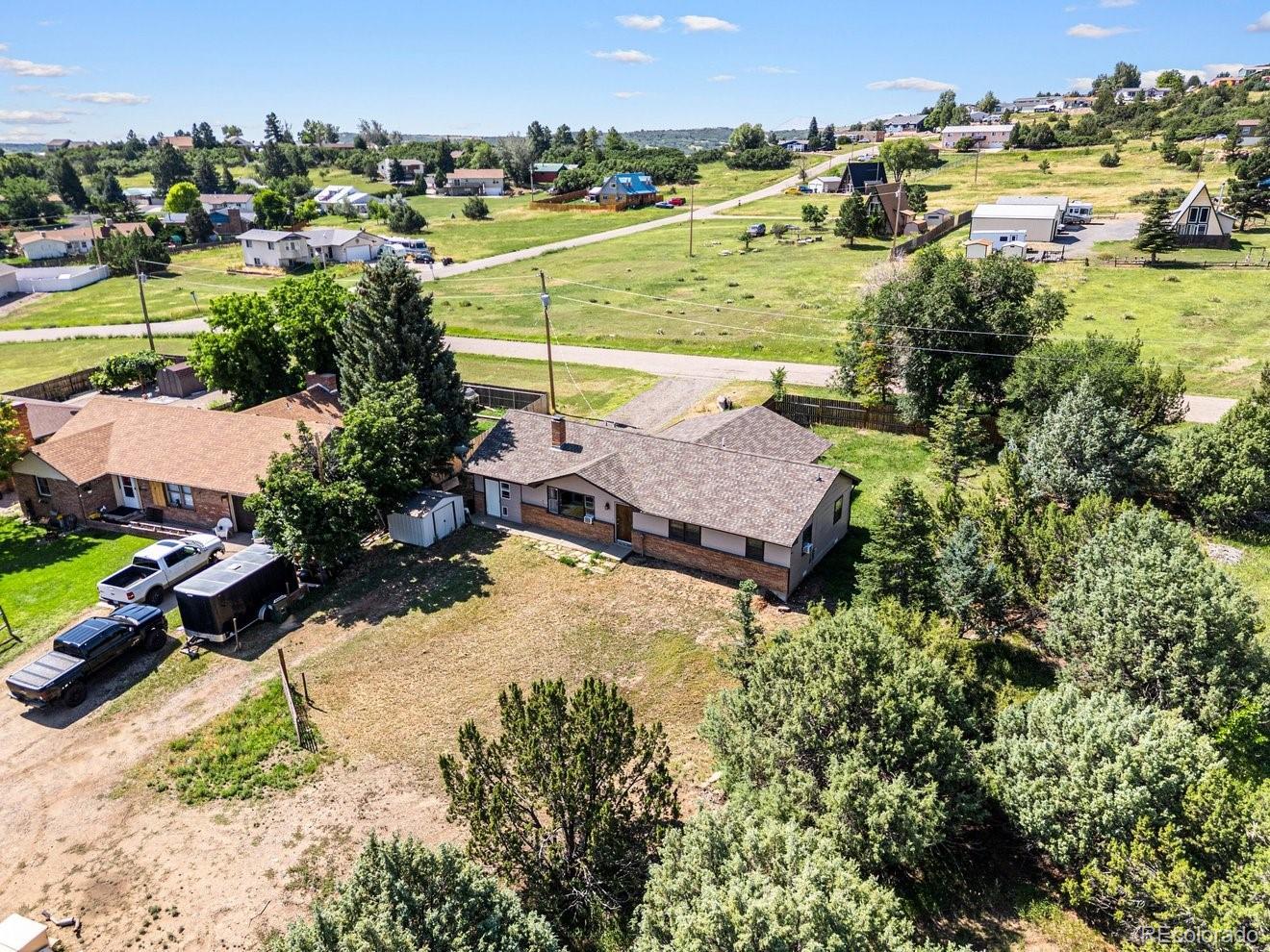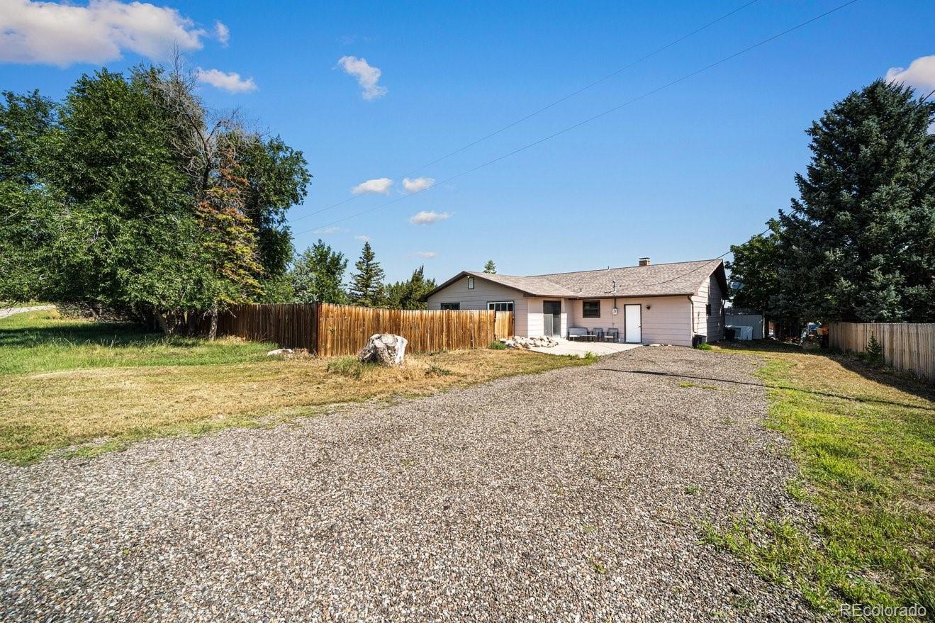 Escape to serenity in this charming Ranch style home nestled near Lake Beckwith! Discover a haven of affordability and tranquility in this 4-bedroom retreat, boasting a spacious living room with a wood-burning fireplace, built-in shelves for ample storage, and expansive windows framing breathtaking lake and mountain vistas. The dining area flows seamlessly from the kitchen, or alternatively, can be situated in the family room, as the current owners have delightfully arranged. The innovative ETS Unit (Energy Thermo Storage) optimizes energy efficiency, heating up during off-peak hours to keep utility bills remarkably low - a feature the sellers adore! Additional window air conditioning units ensure comfort during the summer months. The primary bedroom is a bright sanctuary with a walk-in shower in the ensuite bathroom. Three more bedrooms share a Jack-and-Jill bathroom, perfect for family accommodations. This fabulous home is ideal for entertaining, featuring multiple walk-outs to a private mountain space from the living room, kitchen, and family room. Although the garage has been repurposed as a storage and laundry area, there's ample opportunity to convert it back. The expansive backyard offers plenty of room for a large garage or shop, and it's partially fenced for added security. Located at the end of a gravel Cul-de-Sac with a greenbelt ensuring seclusion, this property also benefits from proximity to a paved road, Spotted Tail, and effortless access to the mountains, lake, and trails. Revel in the peace and serenity, knowing there's no HOA and just minutes to I-25 - a true haven awaits!