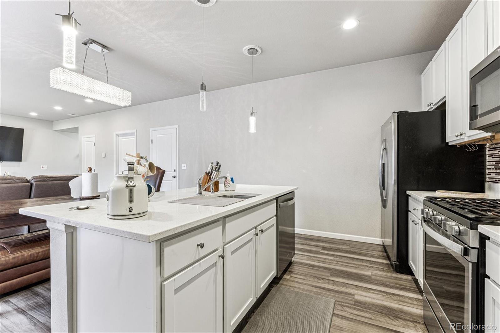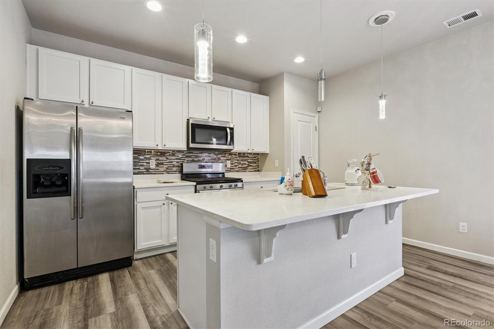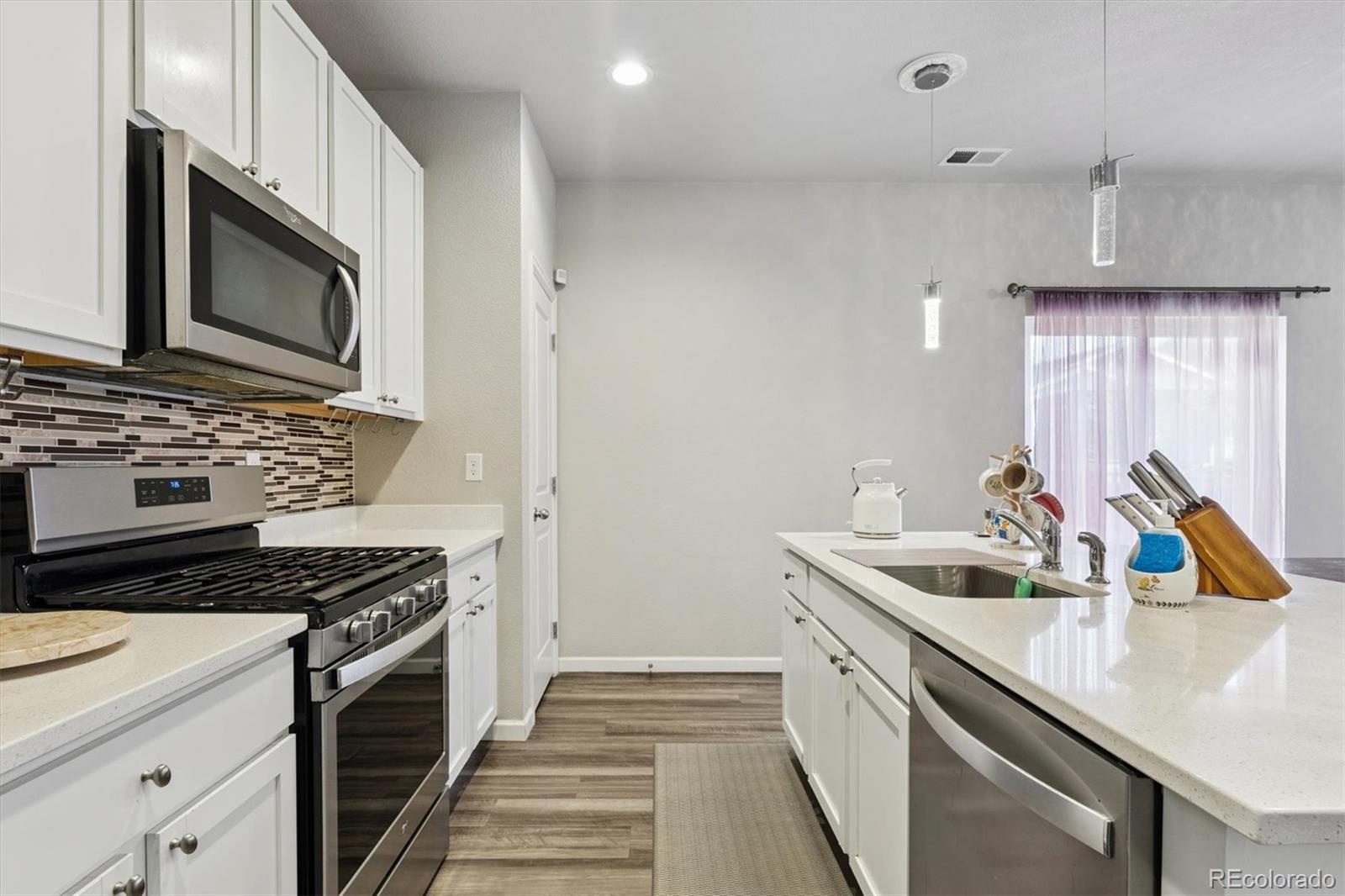 Welcome to this beautiful home featuring the modern layout with open floorplan. The house is located in the highly desirable Wyndham Hill Erie/Frederick neighborhood. The kitchen offers beautiful tall white cabinets, oversize large quartz countertops, a spacious pantry, a tile backsplash & stainless steel appliances. The primary bedroom & ensuite bathroom along with 2 additional bedrooms, another full bath and the laundry room are all located upstairs. Luxury vinyl flooring throughout the main living space. Located just west of I-25, the entire neighborhood has our ever beautiful mountain views, surrounded by open space, parks, and walking trails. The community offers a clubhouse & pool. With easy access to Hwy 52, Hwy 287, and I-25 providing short drive away from Frederick, Erie, Longmont, Lafayette, Broomfield, Boulder, and Denver. Bring your offers & looking for a quick close!