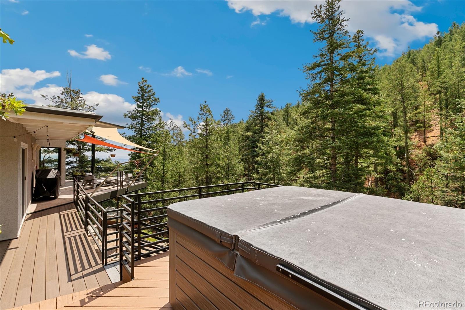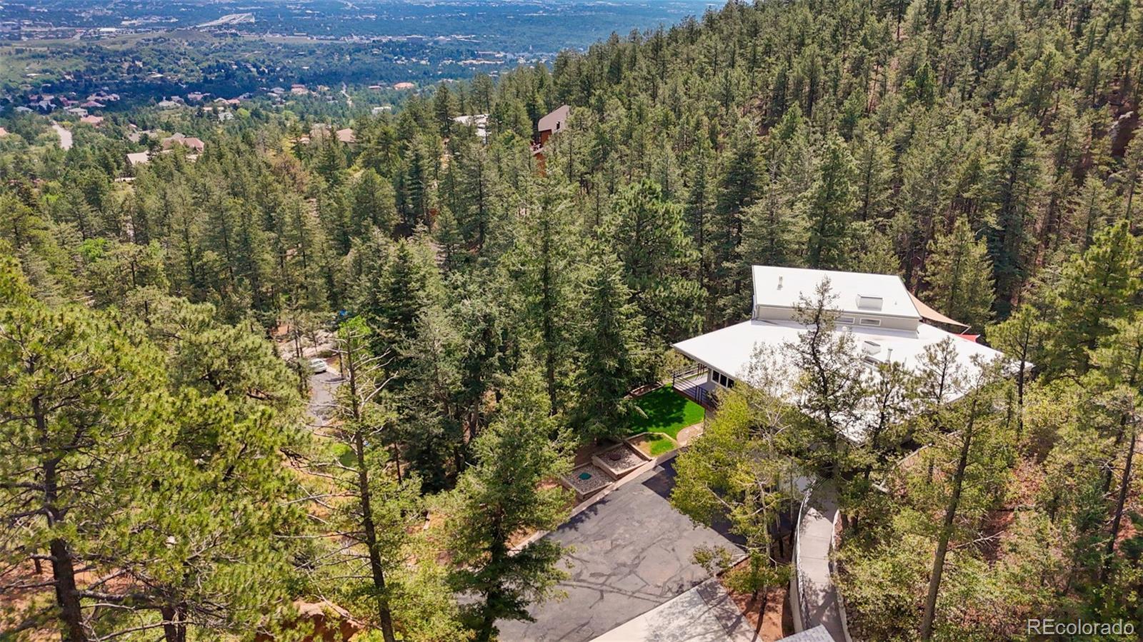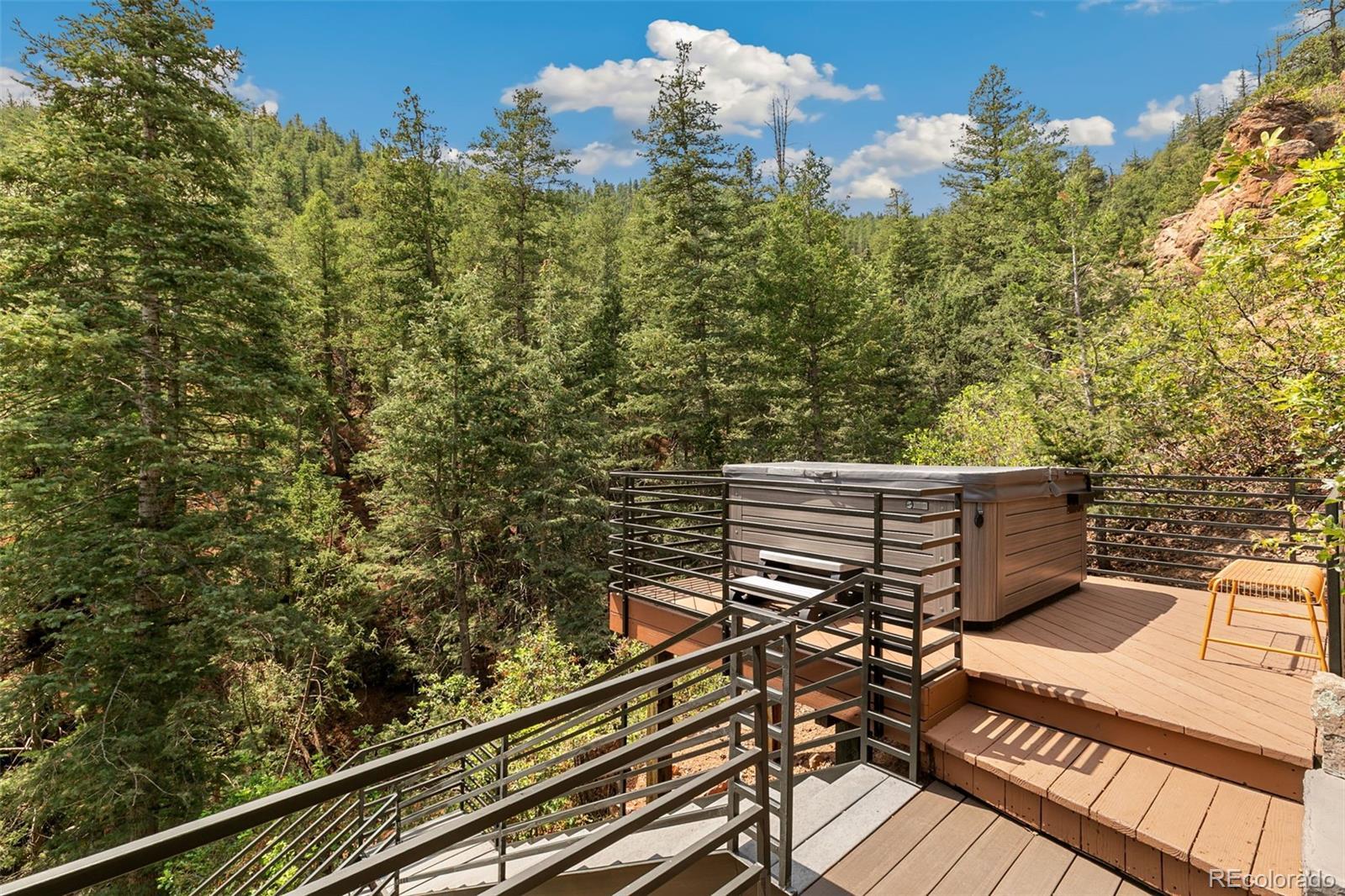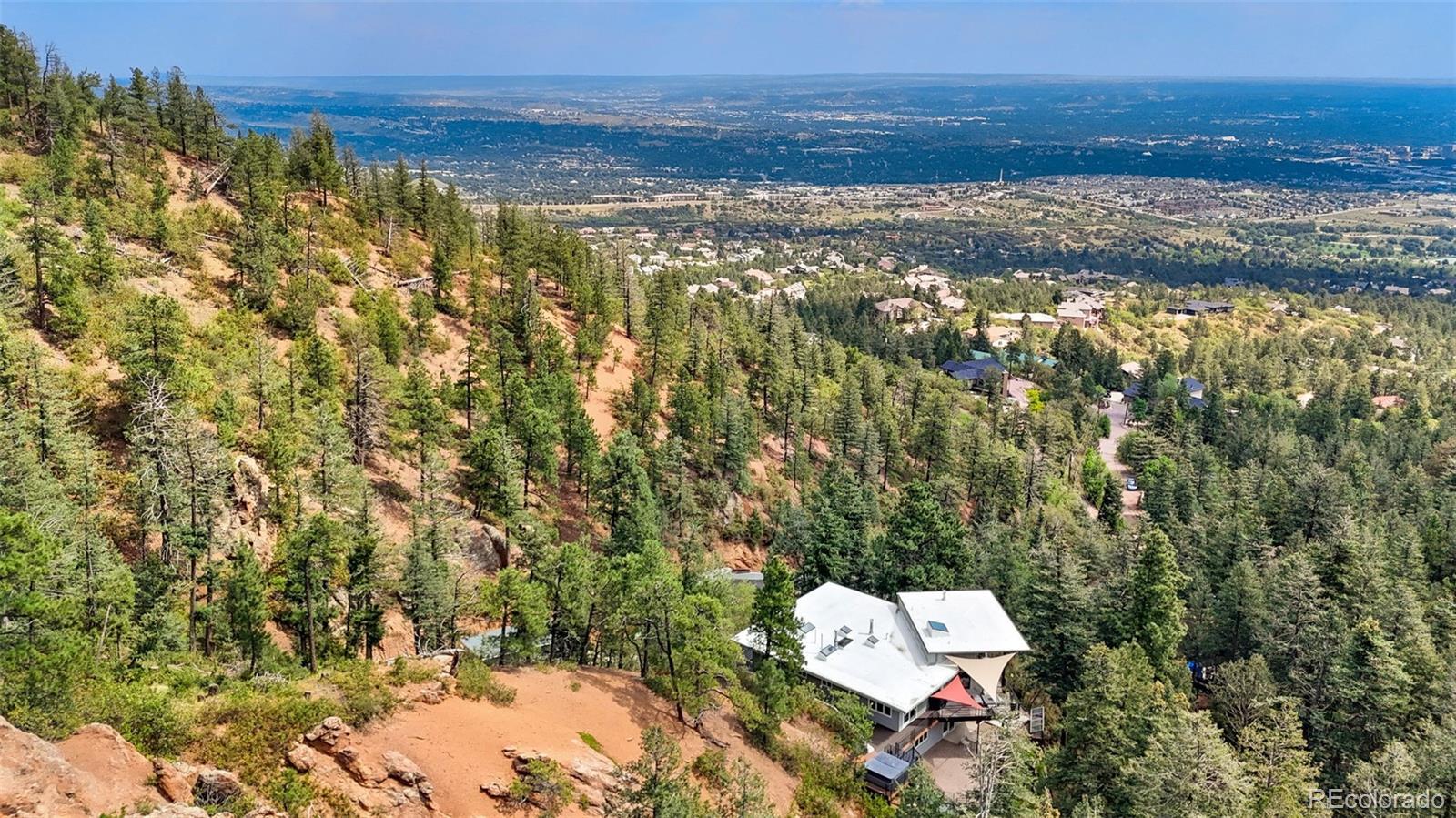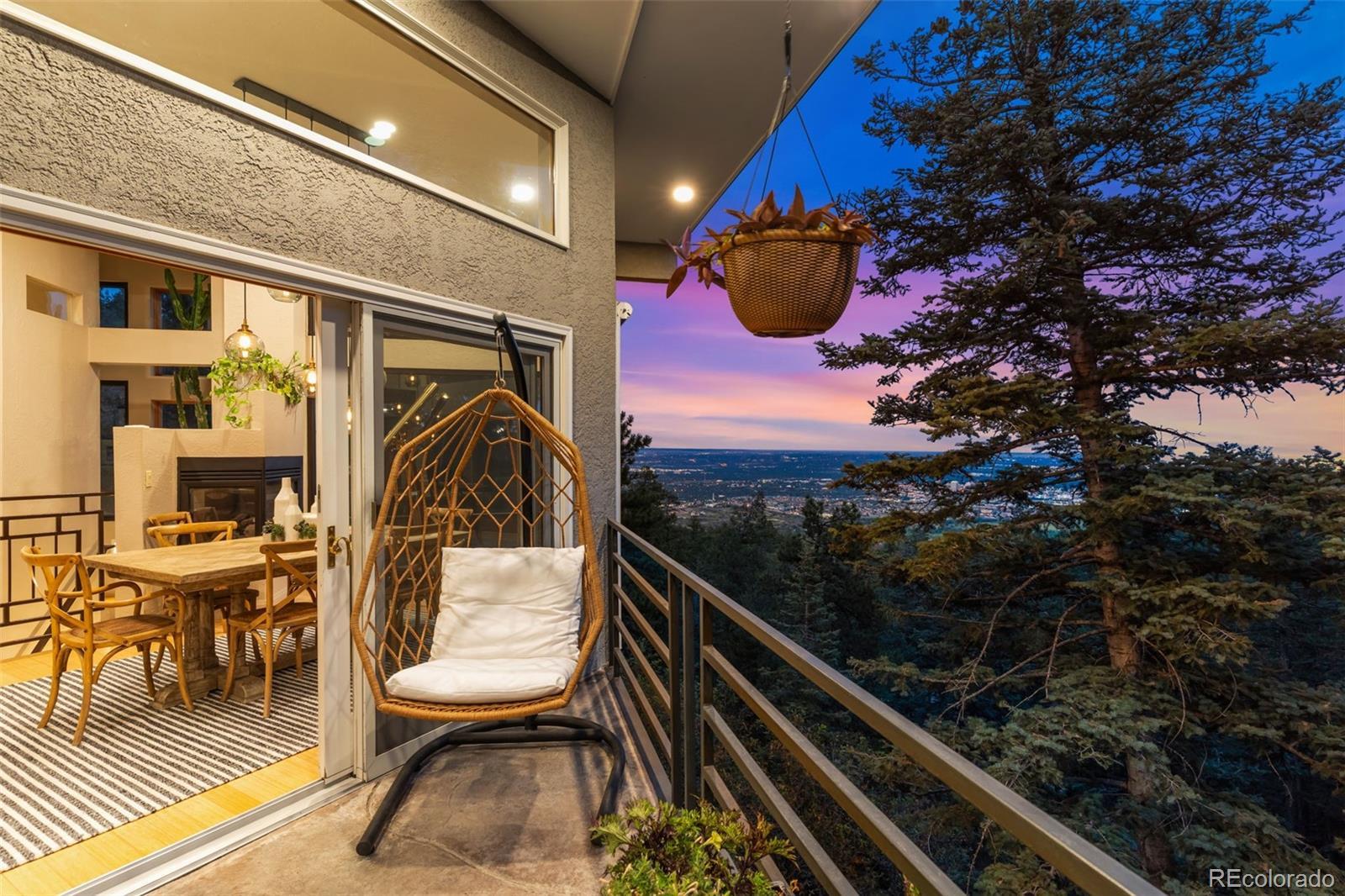 Priceless private setting on 5.7 AC yet minutes from top-ranked District 12 Schools, Bear Creek pickleball courts, the Broadmoor Hotel, shopping, restaurants, and more. Take advantage of the multitude of hiking and biking trails right outside your front door! This unique home offers many amenities. The entry way features impressive commercial-grade wall of windows, offering expansive views of both the city and the mountains. The great room and sitting area feature a dual-sided gas fireplace, providing both warmth & atmosphere during cooler winter days and evenings. The great room & sitting area feature a dual-sided gas fireplace, adding both warmth & atmosphere during cooler winter days. The kitchen features Incl: 5-burner Thermador gas cooktop, Sub-Zero refrigerator, wine fridge, vegetable sink, and coffee bar! The kitchen opens to the dining area w/more dramatic windows with views of the city and Mtn. An additional 2-sided fireplace gives warmth to the kitchen & dining area. Walkout to a concrete deck & new top of the line TimberTech Landmark deck from the kitchen & dining area. A perfect spot for morning coffee or end of the day relaxation! The primary bedroom has direct deck access, just steps from the hot tub included. The renovated 5-piece master bath features custom tile in the spacious walk-in shower, updated paint, mirrors, lighting, and in-floor heating for winter warmth. A 2nd washer & dryer are located just outside of this room for easy access! A 2nd main level ensuite completes this level. The lower walkout level incl a bright office/sitting room w/patio access a 3rd ensuite with washer/dryer hookups in the closet, 4th bedroom currently being used as a family room w/a Queen-sized Murphy bed & small loft. An add'l laundry room & ¾ bathroom completes this level. A lg one-car garage is attached & 2-car detached garage is perfect for outdoor equipment. This home has been lovingly cared for & ready for the next owner to enjoy for a lifetime!