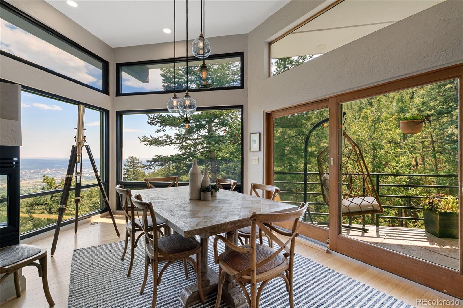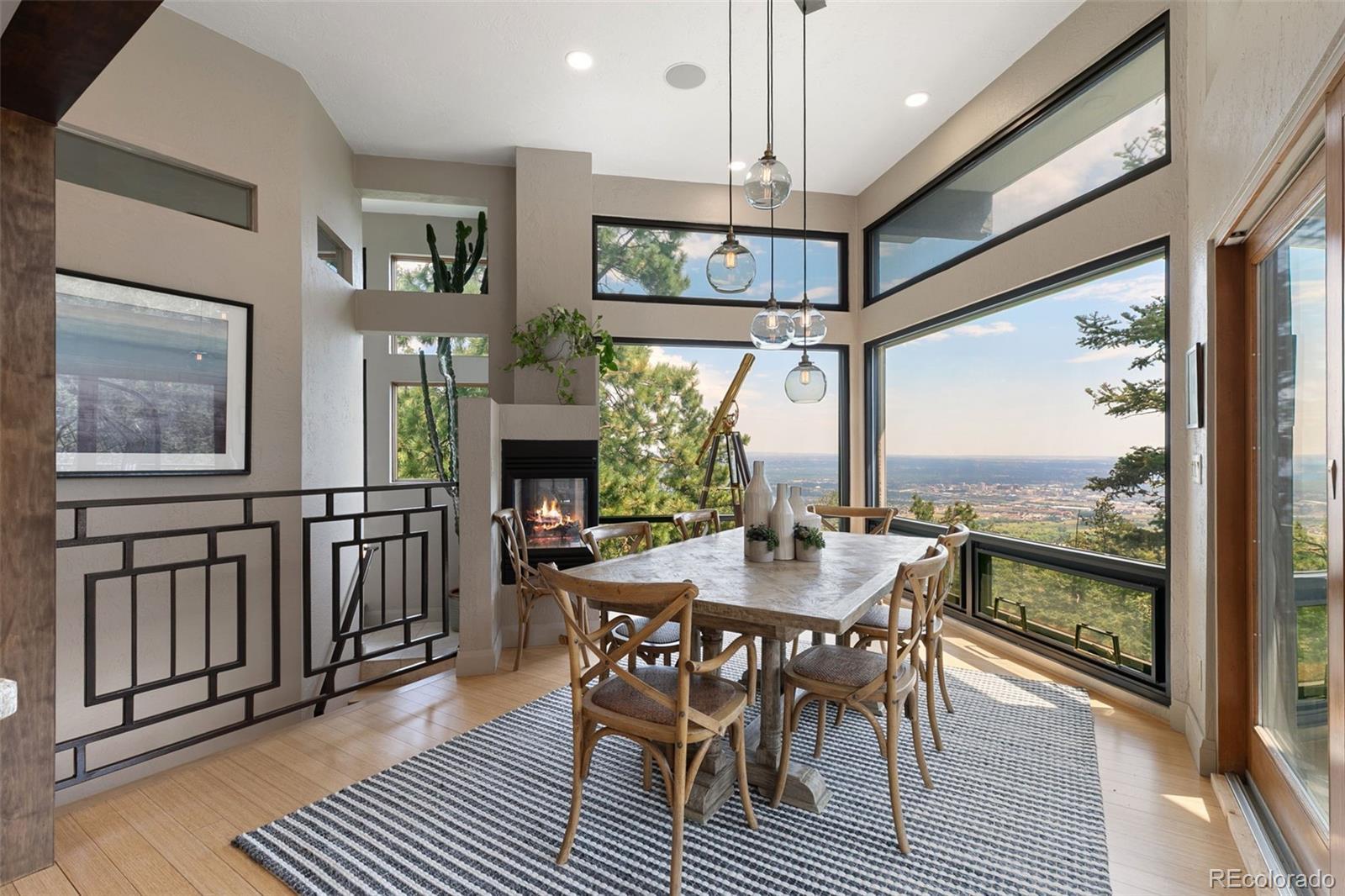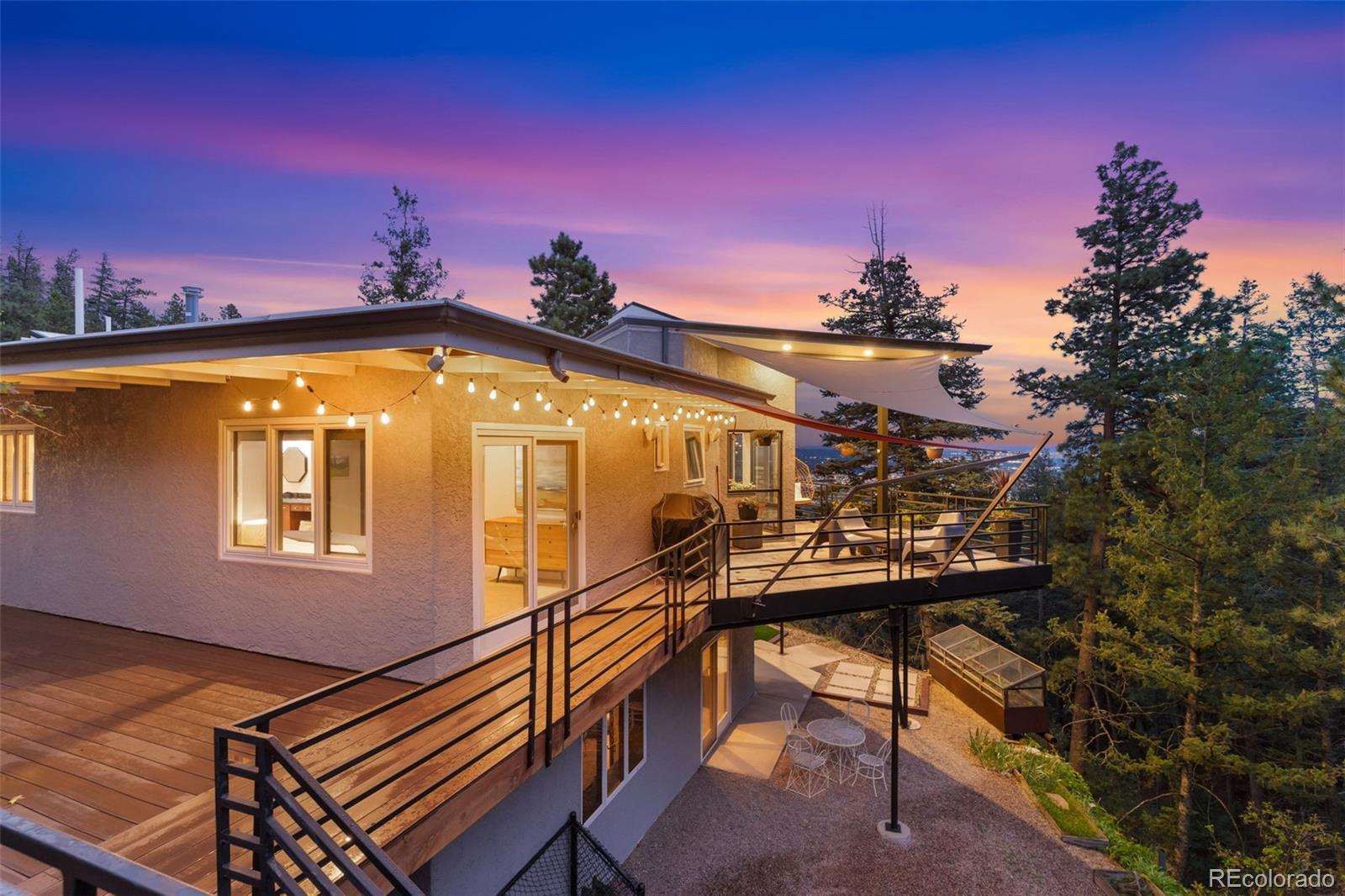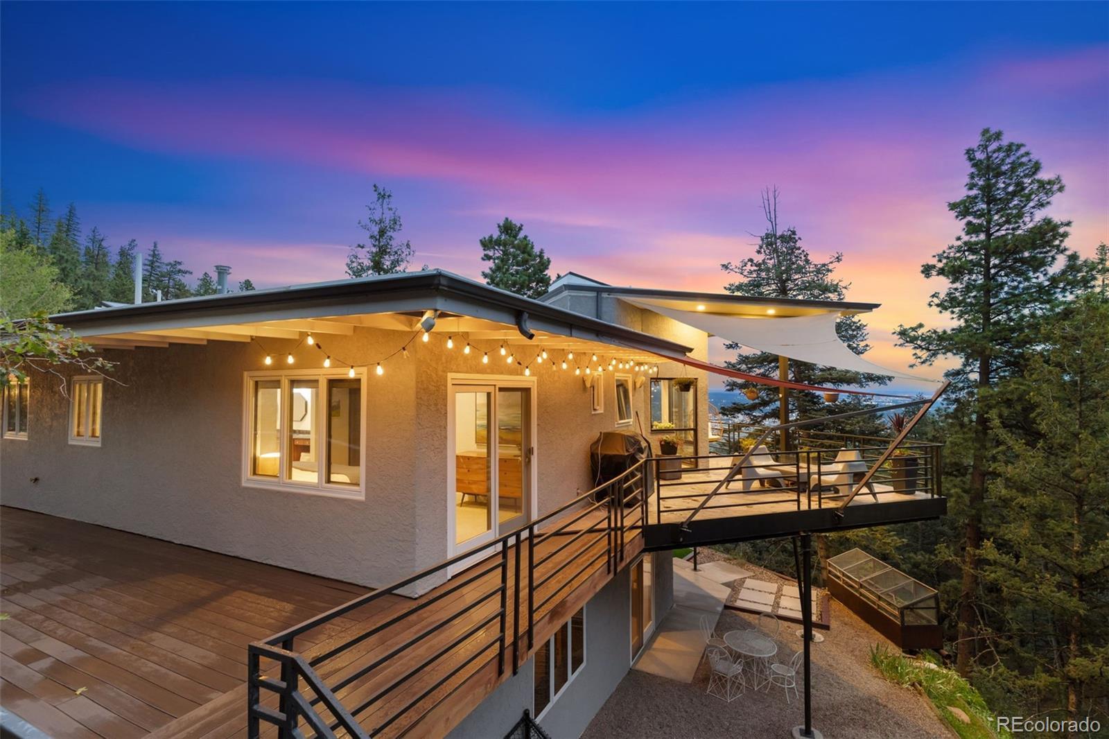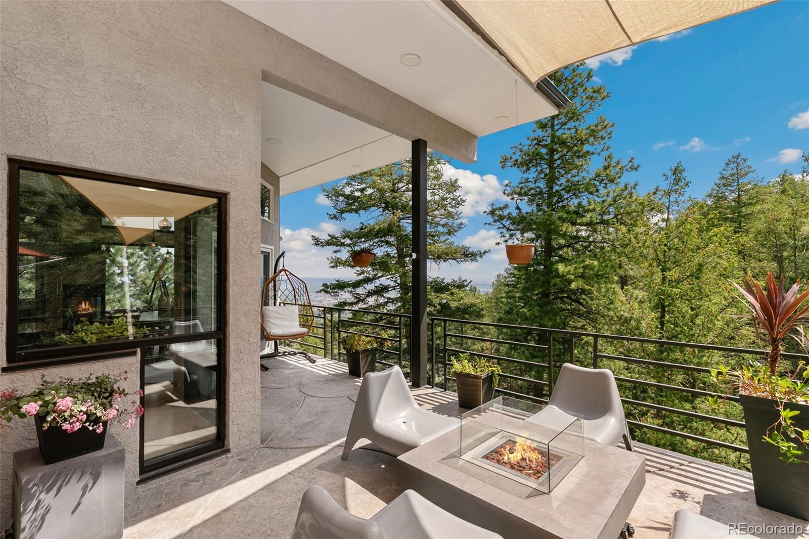 Priceless private setting on 5.7 AC yet minutes from top-ranked District 12 Schools, Bear Creek pickleball courts, the Broadmoor Hotel, shopping, restaurants, and more. Take advantage of the multitude of hiking and biking trails right outside your front door! This unique home offers many amenities. The entry way features impressive commercial-grade wall of windows, offering expansive views of both the city and the mountains. The great room and sitting area feature a dual-sided gas fireplace, providing both warmth & atmosphere during cooler winter days and evenings. The great room & sitting area feature a dual-sided gas fireplace, adding both warmth & atmosphere during cooler winter days. The kitchen features Incl: 5-burner Thermador gas cooktop, Sub-Zero refrigerator, wine fridge, vegetable sink, and coffee bar! The kitchen opens to the dining area w/more dramatic windows with views of the city and Mtn. An additional 2-sided fireplace gives warmth to the kitchen & dining area. Walkout to a concrete deck & new top of the line TimberTech Landmark deck from the kitchen & dining area. A perfect spot for morning coffee or end of the day relaxation! The primary bedroom has direct deck access, just steps from the hot tub included. The renovated 5-piece master bath features custom tile in the spacious walk-in shower, updated paint, mirrors, lighting, and in-floor heating for winter warmth. A 2nd washer & dryer are located just outside of this room for easy access! A 2nd main level ensuite completes this level. The lower walkout level incl a bright office/sitting room w/patio access a 3rd ensuite with washer/dryer hookups in the closet, 4th bedroom currently being used as a family room w/a Queen-sized Murphy bed & small loft. An add'l laundry room & ¾ bathroom completes this level. A lg one-car garage is attached & 2-car detached garage is perfect for outdoor equipment. This home has been lovingly cared for & ready for the next owner to enjoy for a lifetime!