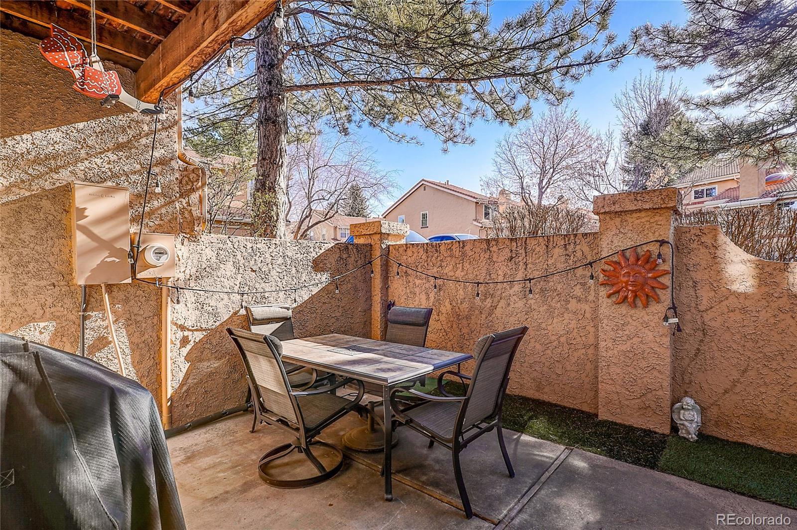Welcome to this beautifully maintained 3-bedroom, 4-bathroom townhome located in the highly sought-after Taos of Lone Tree community. Bathed in natural light, this home features an open floor plan with a dramatic two-story living room that creates a bright and airy ambiance. The main level offers a spacious kitchen with a large island, perfect for entertaining, along with a separate dining area and a convenient half bath. Upstairs, the primary suite is a true retreat with vaulted ceilings, a private balcony, and a luxurious five-piece spa-like ensuite. Two additional bedrooms, also with vaulted ceilings, share a full bath and complete the upper level. The finished basement provides a large family or recreation room, an additional half bath, and a dedicated laundry room. Enjoy the convenience of an oversized attached two-car garage and a private outdoor patio ideal for relaxing or entertaining. The home features a high-efficiency AC and furnace, both only four years old, ensuring year-round comfort and energy savings. Included with the home are the washer and dryer, as well as a refrigerator located in the garage. Just minutes from Meridian, DTC, and Park Meadows Shopping Center, and within walking distance to Sweetwater Park, Cook Creek Pool, and South Suburban Tennis Courts, this home offers low-maintenance living with unmatched access to parks, golf, tennis, swimming, and all the amenities Lone Tree has to offer. With easy access to I-25, C-470, and light rail, this quiet and friendly community is the perfect place to call home.