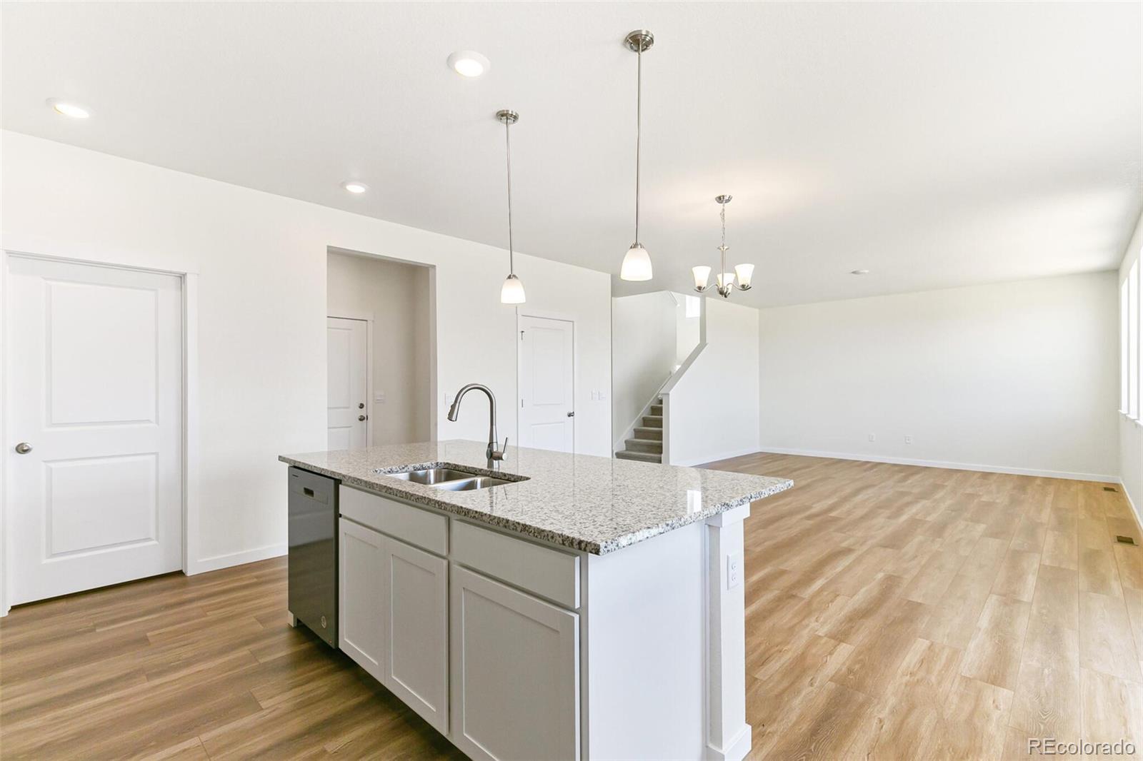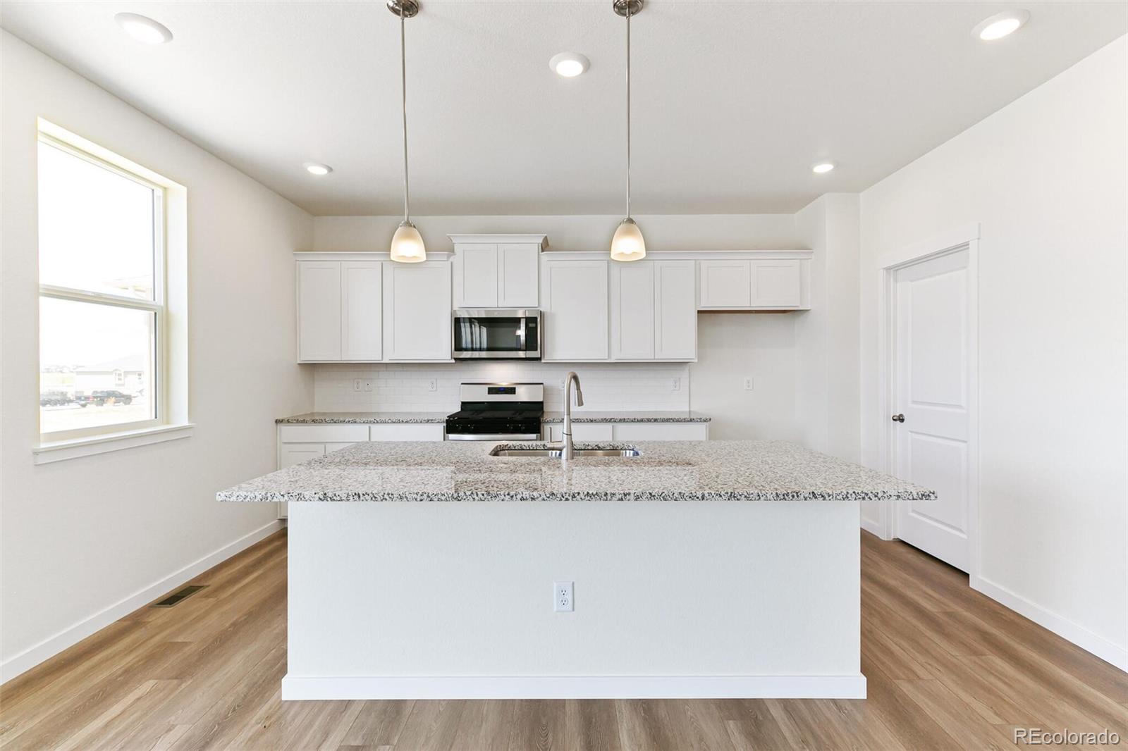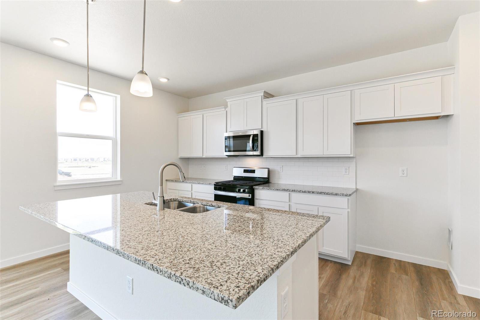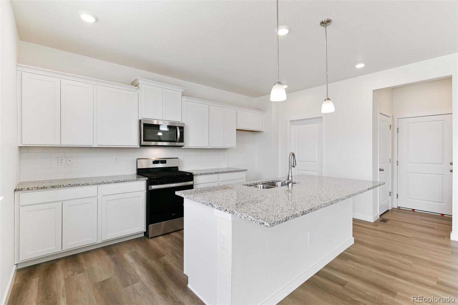 Stunning, spacious 4-bedroom home with 2nd floor living area and a main floor flex space! The warm and inviting kitchen features granite slab counters, contemporary cabinets with crown moulding, pendant lights over the large island, subway tile backsplash and Stainless-Steel Whirlpool appliances. The primary bedroom is roomy and bright, and connects to an ensuite bathroom with quartz countertops, 2 undermount sinks and tile floors and shower walls. Enjoy all the space and storage in this brand-new home with walk-in closets, kitchen pantry and linen closets. This Smart Home includes keyless entry with keypad, video doorbell, smart thermostat, wi-fi enabled garage door opener, Amazon Echo device, wall-mounted touch screen panel, and more. Deako plug and play light switches and tankless water heater are also included in this home! This property comes included with front and rear landscaping along with fencing.***Estimated Delivery Date: November. Photos are representative and not of actual property***