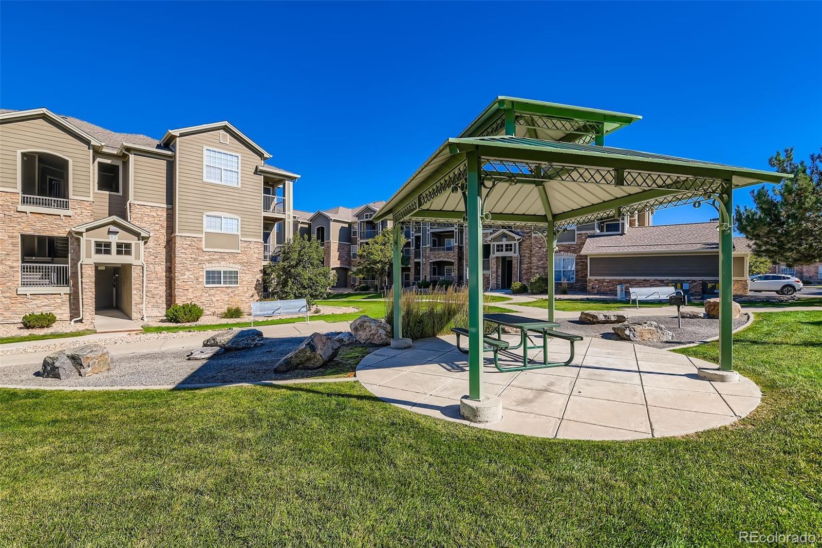 Main-level 2-bed/2-bath condo with NO stairs, private garage, two patios facing peaceful courtyard, FHA approved — in desirable Erie, CO. This main-level home features two patios overlooking a peaceful courtyard—not a parking lot—providing a more private and enjoyable outdoor living experience. No steps into the building or throughout the home make accessibility effortless, complemented by brand-new carpet and recently serviced HVAC for a fresh, move-in-ready feel. Designed for flexible living, the floorplan includes two ensuite bedrooms—ideal for a roommate situation or a comfortable guest suite with separation from the primary bedroom. Bonus value: The Seller has pre-paid a 6-month garage rental starting in November, offering covered parking during winter months or extra storage space for seasonal gear. Enjoy a lock-and-leave lifestyle with exterior maintenance, snow removal, and great community amenities including a pool, fitness center, playground, and volleyball courts. Prime location—walk or bike to nearby grocery stores and restaurants, and less than 2 miles to public transit for convenient commuting. Perfect for first-time buyers, downsizers, or anyone seeking comfort, convenience, and low-maintenance living.