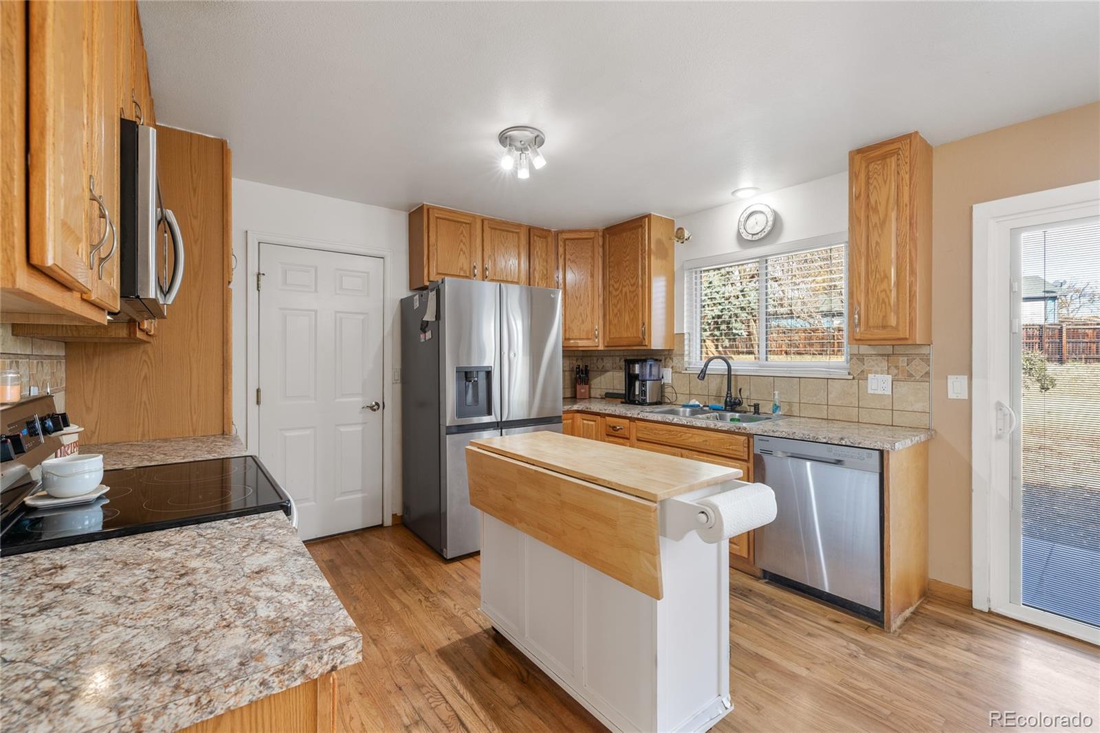 Welcome to 2645 E 98th Way, a beautifully maintained home nestled in the desirable Riverdale Heights neighborhood of Thornton. This spacious and inviting residence offers a perfect blend of comfort, functionality, and modern appeal. Step inside to discover an open and airy floor plan filled with natural light, featuring a welcoming living room that flows seamlessly into the dining area and kitchen. The kitchen is well-appointed with ample cabinetry and a large island perfect for casual meals or entertaining. The primary suite offers a peaceful retreat with generous closet space. The additional bedrooms provide room for guests, a home office, or whatever best suits your lifestyle. The finished basement provides even more living space with a large family room, an additional bedroom and bathroom, and extra storage. Outside, enjoy a beautiful backyard complete with a patio—perfect for relaxing or hosting gatherings. With an attached garage and easy access to parks, schools, shopping, and major commuter routes, this home has it all. Move-in ready and full of thoughtful details, 2645 E 98th Way offers the ideal balance of style, comfort, and convenience.