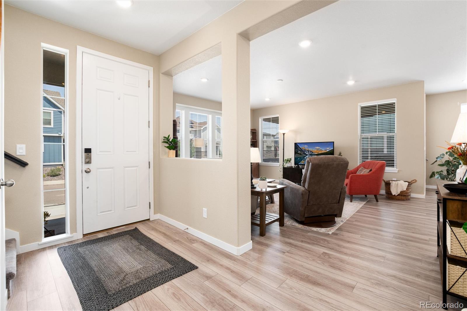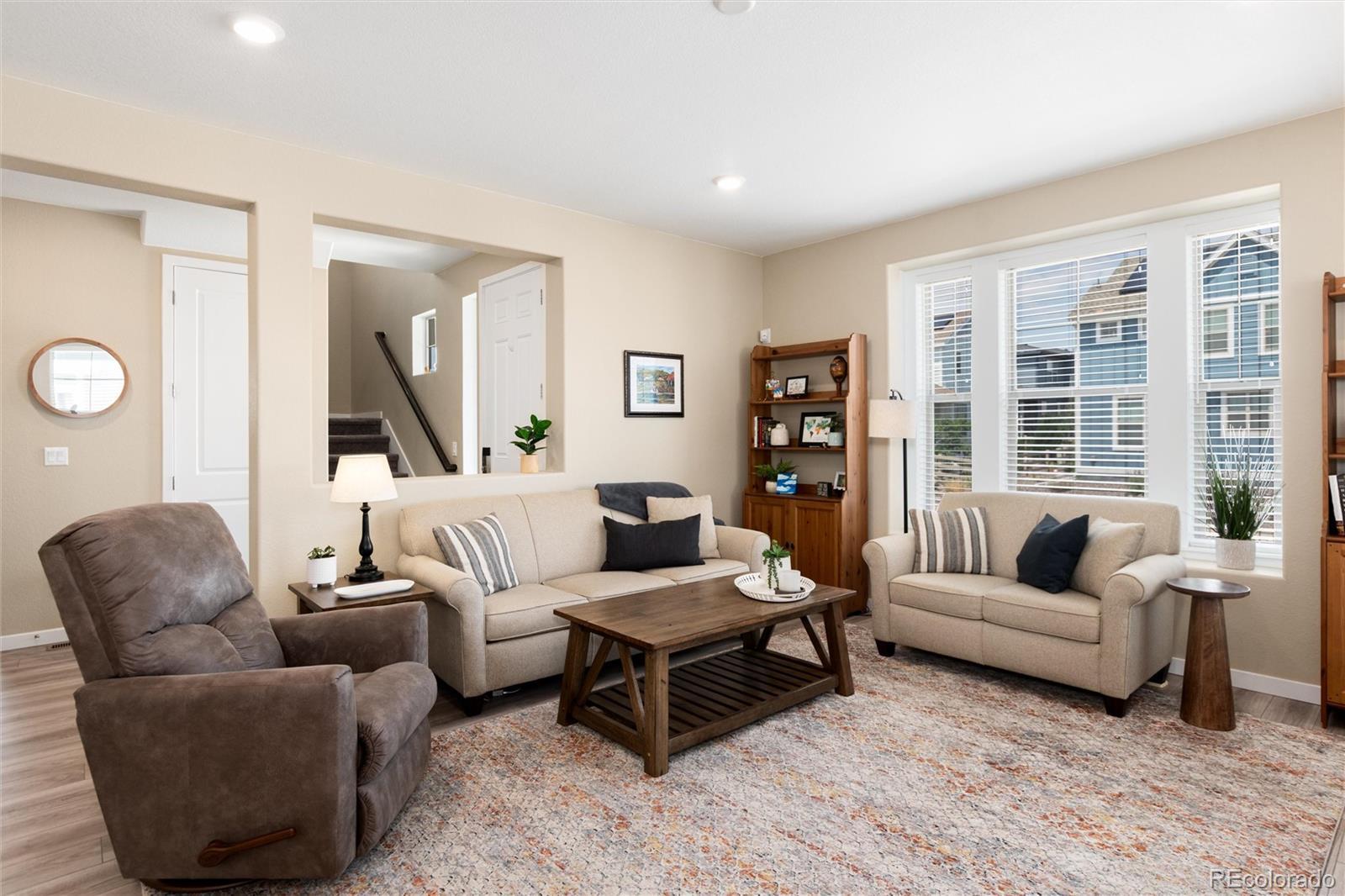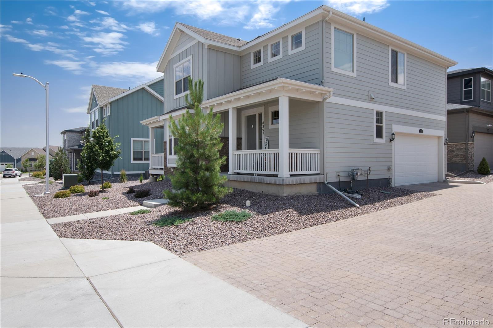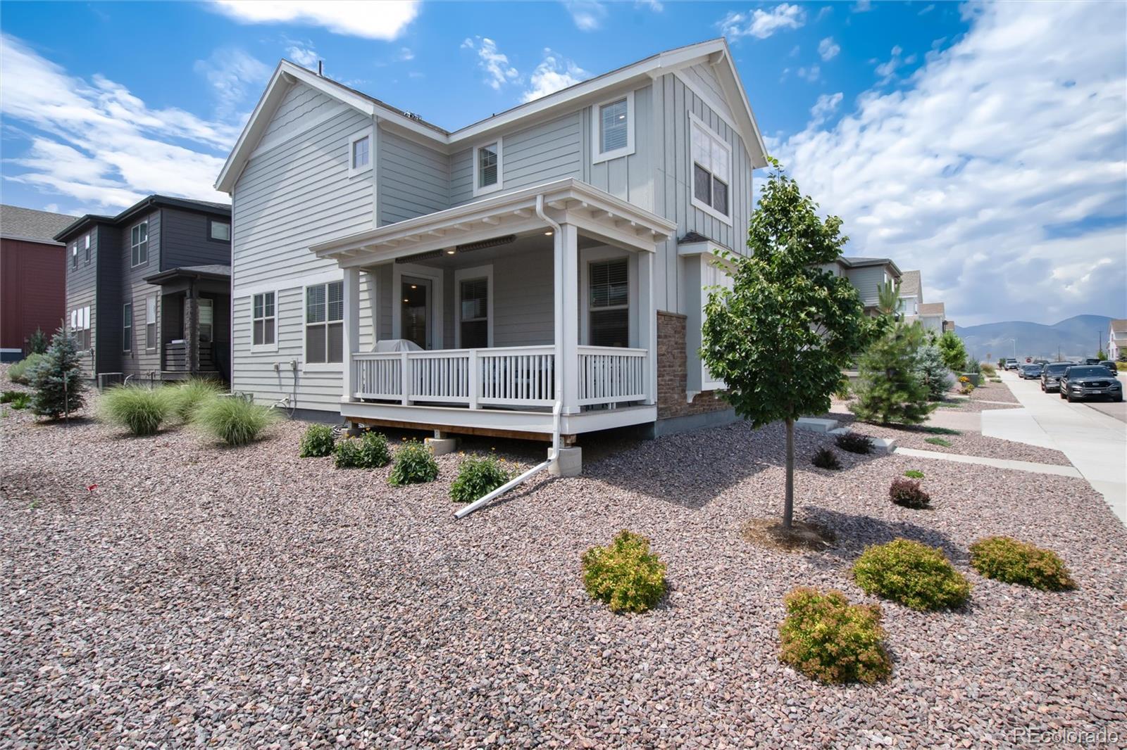 Welcome home! Enjoy breathtaking views right from your front porch in this warm and inviting home designed for both comfort and style. Step inside to an open and spacious floor plan that flows effortlessly, perfect for everyday living and entertaining alike. The kitchen is a true showstopper with stunning finishes and plenty of space for cooking and gathering. Upstairs, you'll find a cozy loft—ideal as a reading nook, home office, or flex space. The large laundry room adds convenience, and the washer and dryer are included. Throughout the home, window coverings are already in place, making it truly move-in ready. Step out back to relax on the beautiful covered deck, the perfect spot for morning coffee or evening get-togethers. A two-car attached garage offers added functionality. Located in a desirable neighborhood with wonderful amenities like a pool, clubhouse, and scenic trails. Plus, you're just minutes from shopping, dining, and everyday conveniences. This home offers the best of Colorado living—don’t miss it! **Buyer can fence in their property if they choose to do so**