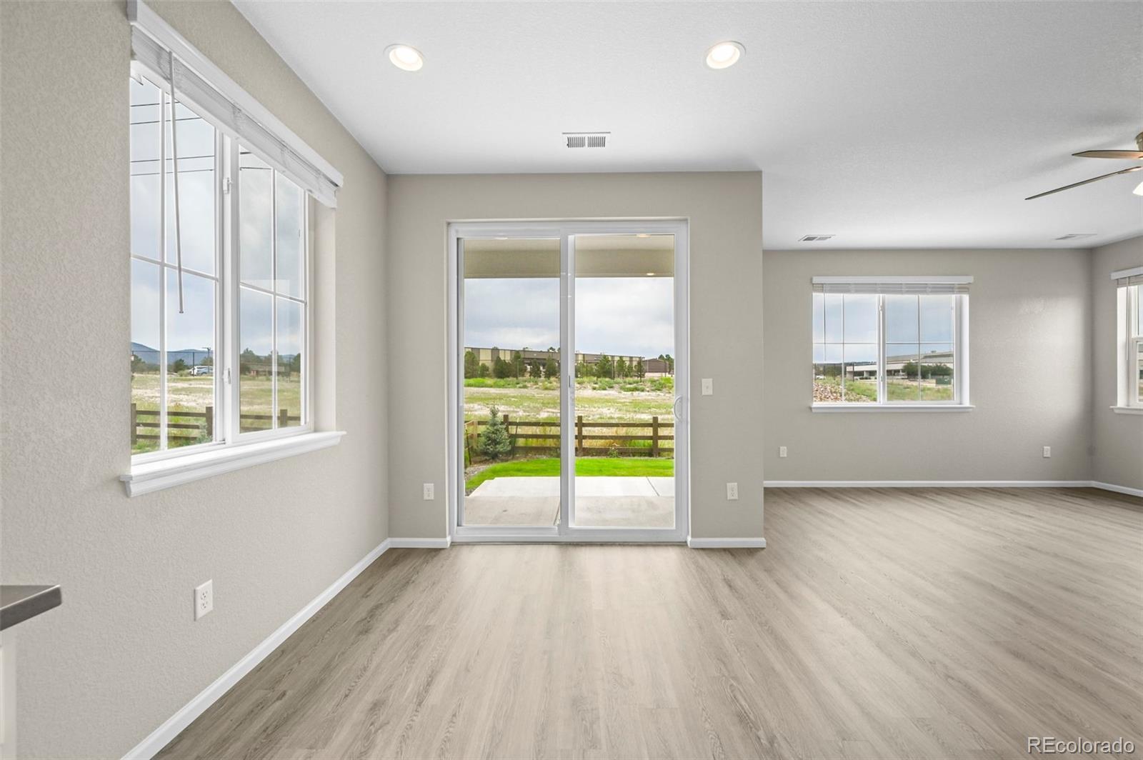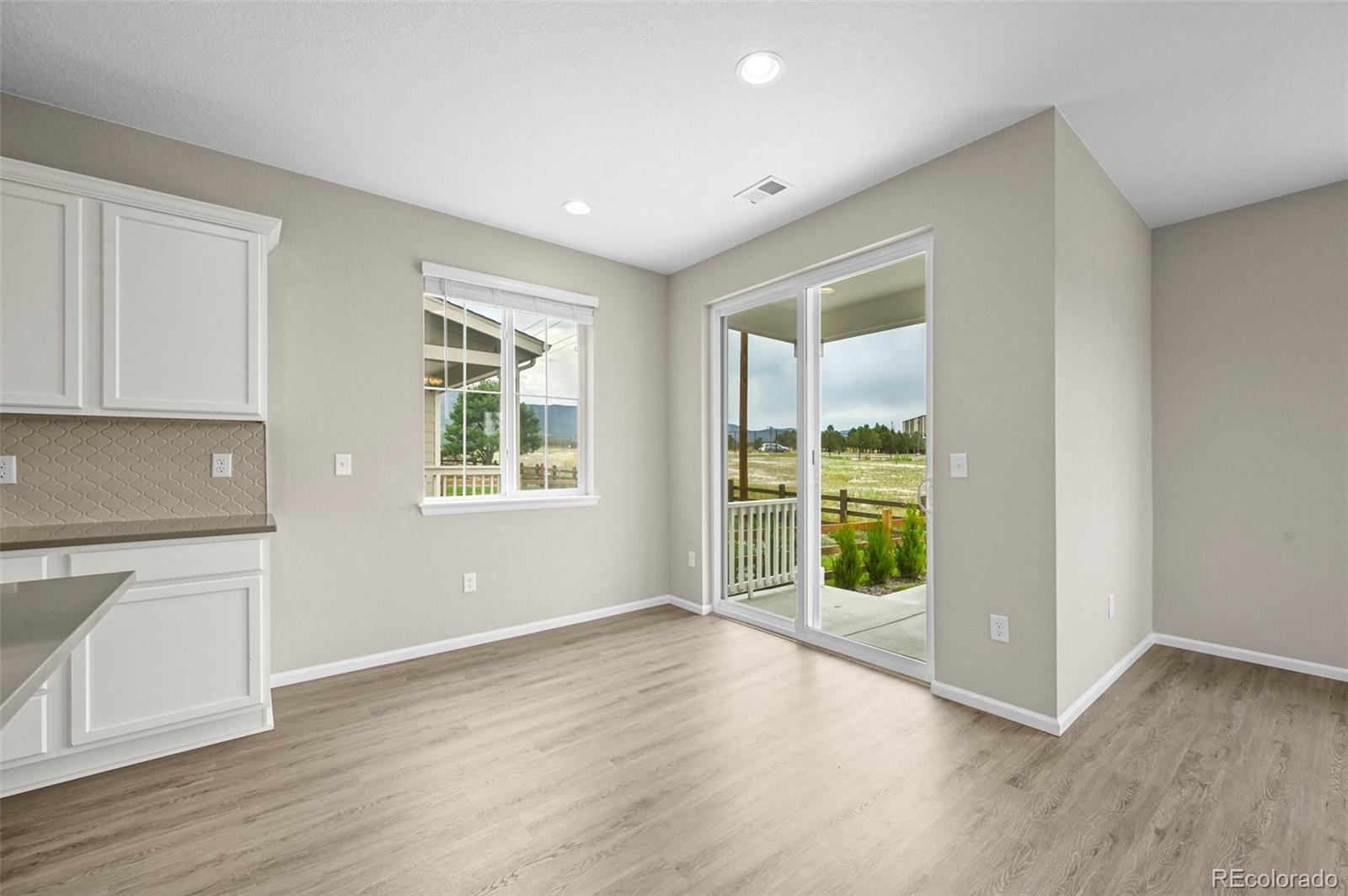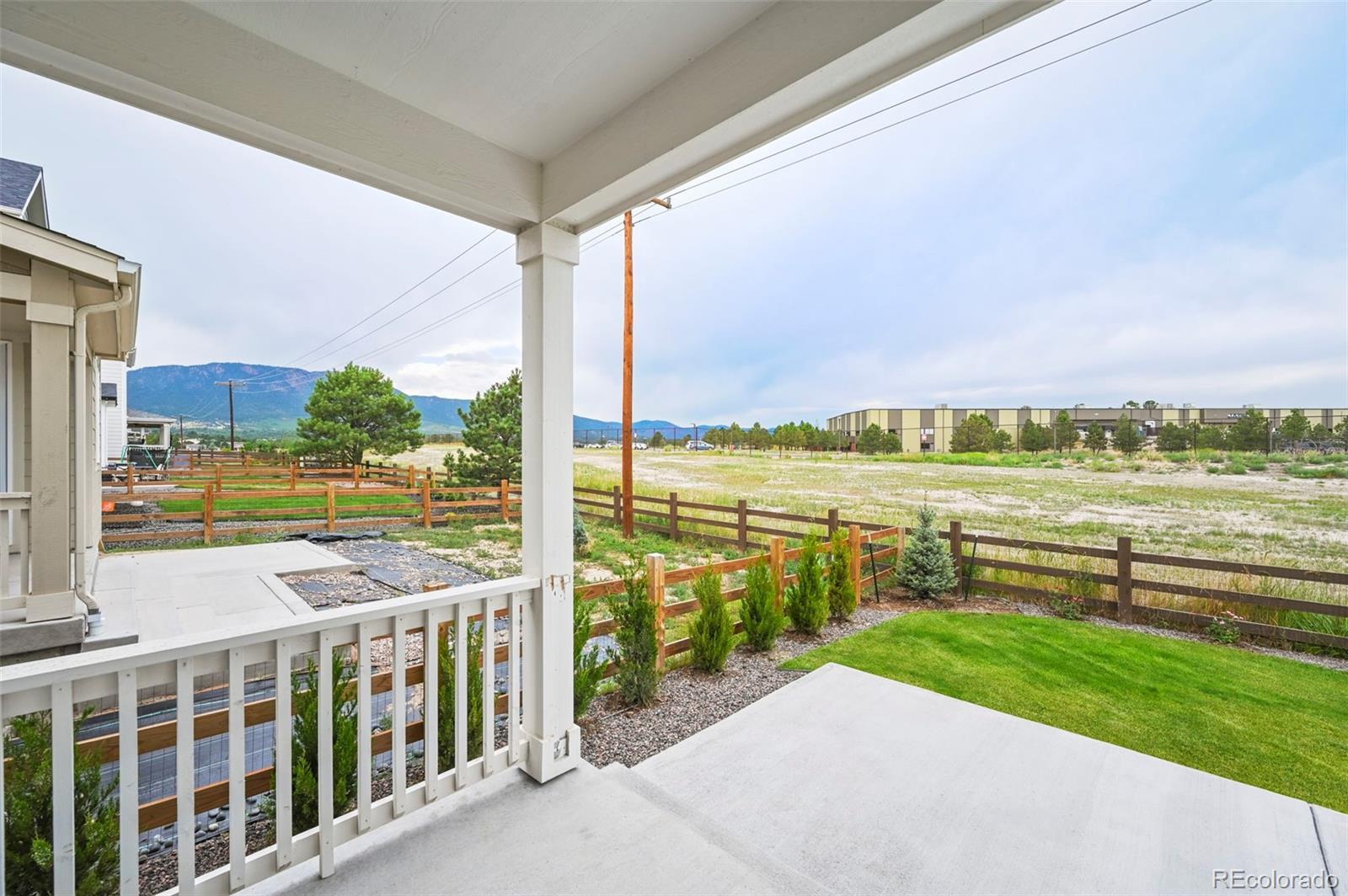 Welcome to this beautifully maintained 3-bedroom, 2.5-bathroom home situated on a professionally landscaped corner lot at the end of a quiet cul de sac in desirable Monument. This property offers a great combination of privacy, space, and curb appeal. Step inside to find a thoughtfully designed floor plan featuring an open concept main living area filled with natural light and ideal for entertaining. The kitchen has fresh white cabinetry, modern appliances, ample cabinet space plus pantry, and a generously sized kitchen island for additional seating. The kitchen flows seamlessly into a separate dining area and family room. There is a conveniently located half bath serves guests on the main level as well. Upstairs, you will find a large primary suite with a walk-in closet and en-suite bathroom with double vanities and an oversized shower. Two additional generously sized guest bedrooms can access the full bath in the adjacent hallway. There is a laundry room upstairs for added convenience of keeping the laundry close to the bedrooms. Outside, enjoy the meticulously maintained, fully fenced backyard with mesh fencing as well to keep pets contained. The covered patio makes a great place to relax during summer thundershowers while the expanded concrete patio is perfect for a larger outdoor dining table and grill. The professional landscaping enhances the home’s beauty with thoughtfully selected plants providing both shade and color. Located in the peaceful master planned community of Willow Springs Ranch, you will enjoy easy access to I-25, top-rated schools, shopping, and outdoor recreation. This neighborhood offers comfort, convenience, and a true sense of community. Don’t miss your chance to own this corner lot gem in one of Monument’s most sought-after areas!
