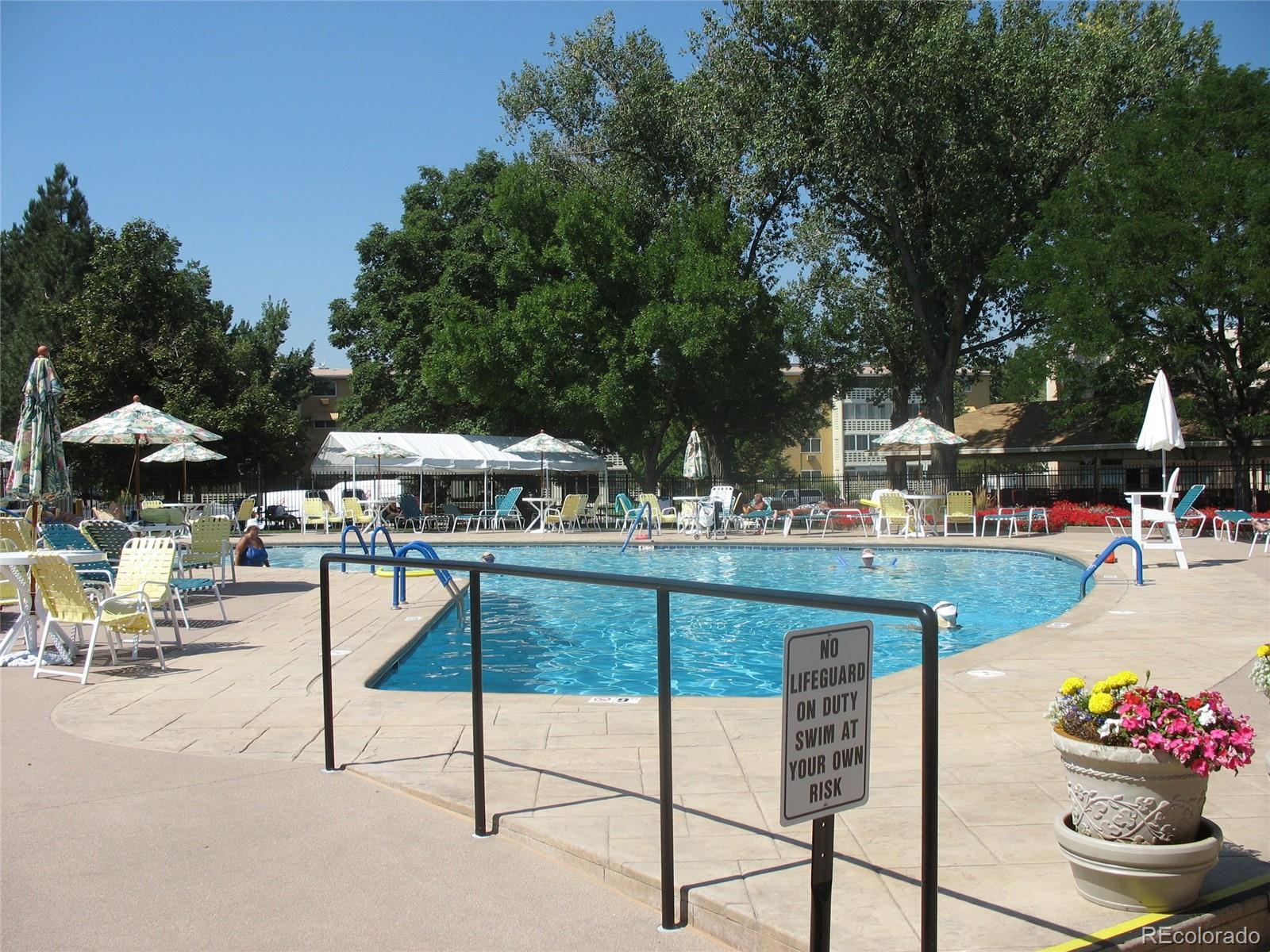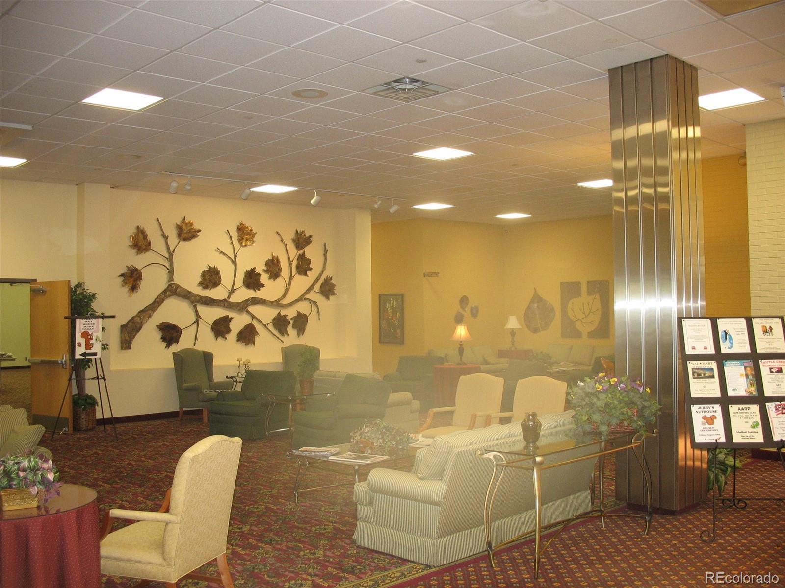 Nice unit centrally located with a enclosed lanai facing the golf course. Includes one car garage with extra storage unit. HOA includes taxes. This is the most affordable over 55 complex in Denver. Indoor and outdoor pool, fitness center, sauna and 24 hour security. Bus services runs through the complex.