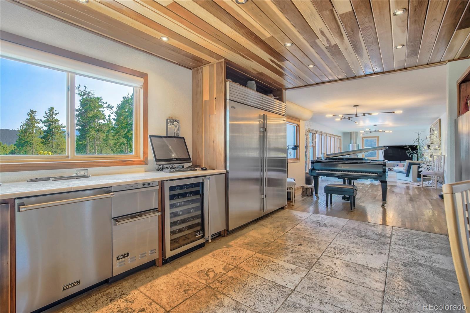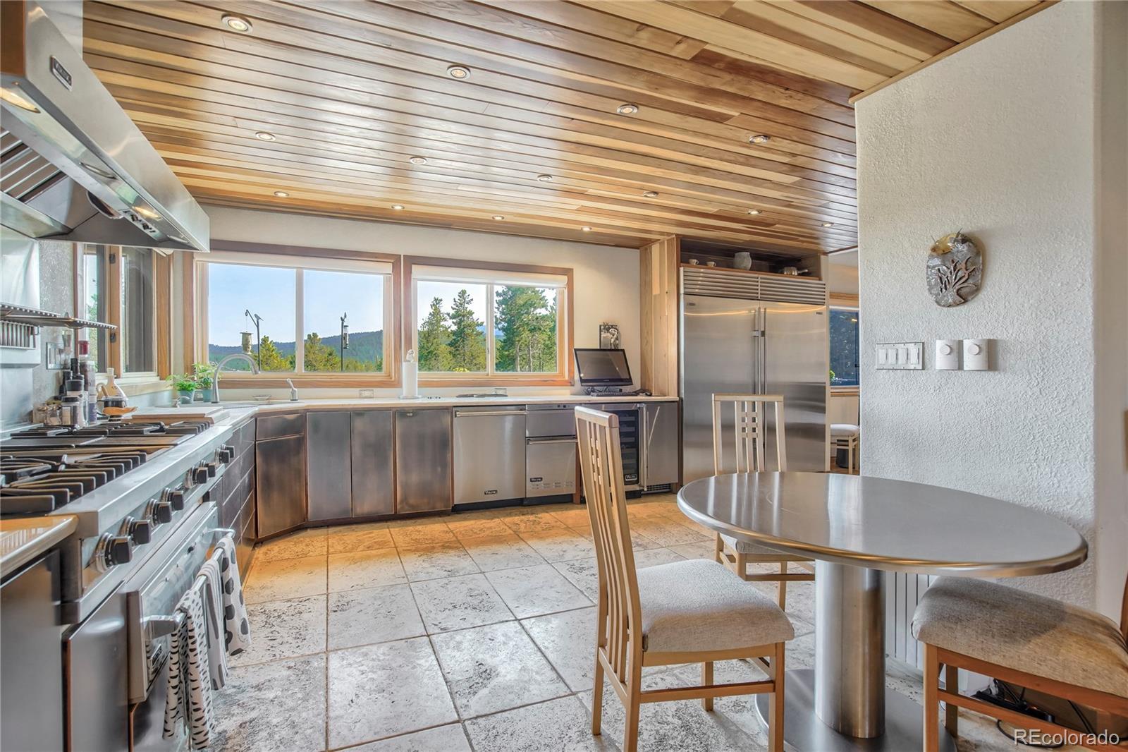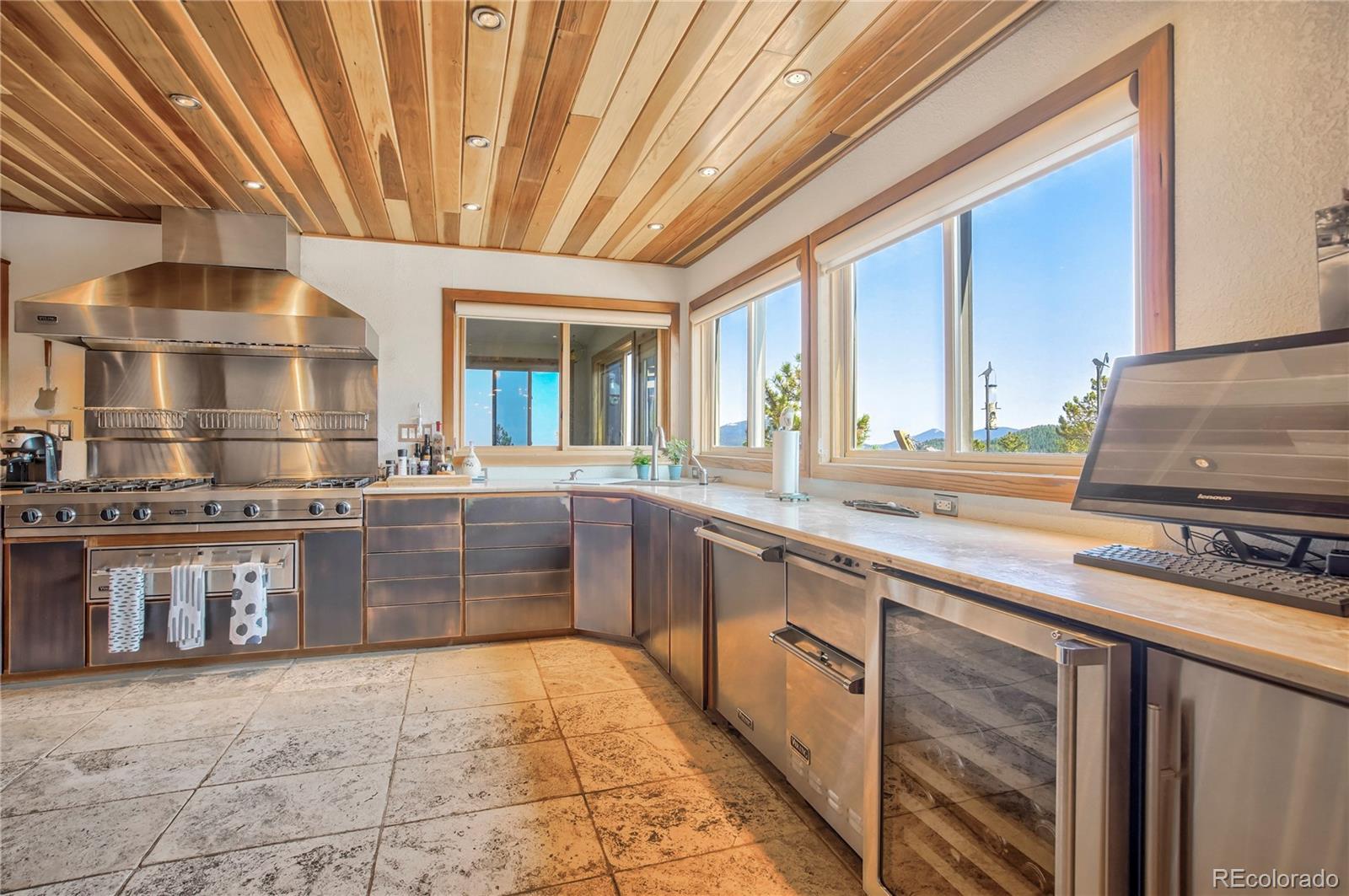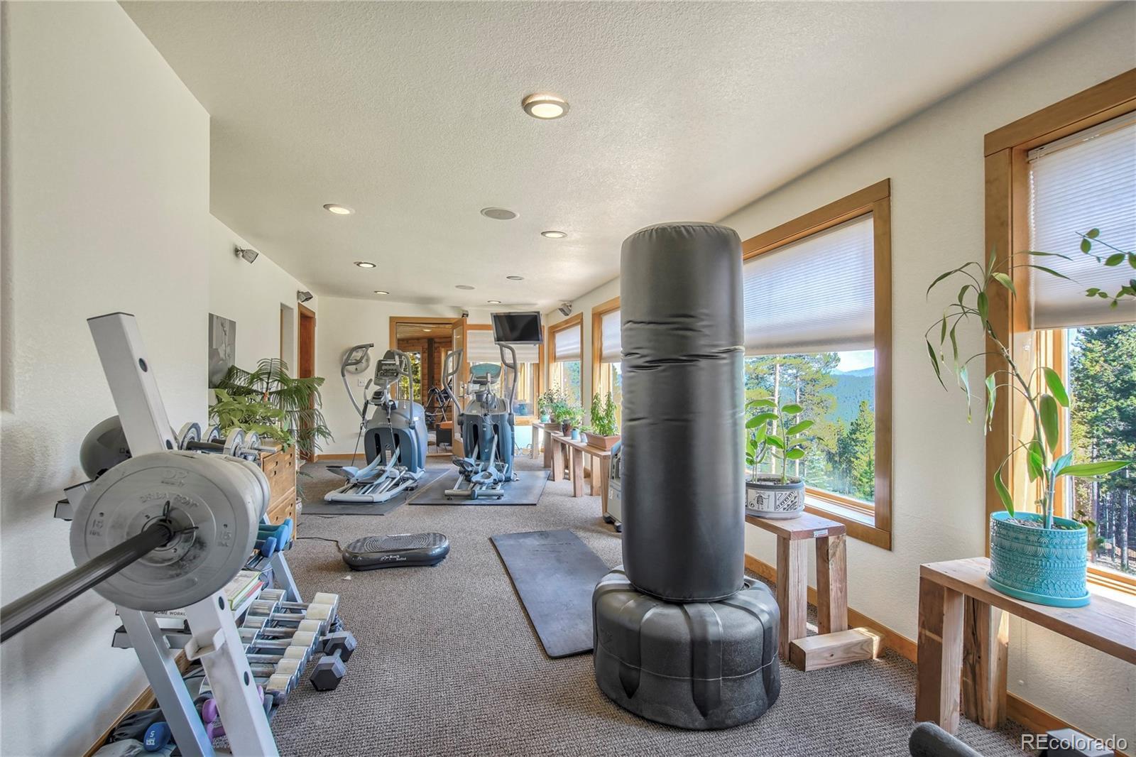 The Conifer Home Estate is an exceptional property that has plenty of features and amenities to offer. The modern and luxurious design of the home makes it a dream come true for anyone looking for a comfortable and lavish place to stay. The property has five bedrooms, including three master suites, and six bathrooms. The large viewing windows provide breathtaking mountain views, while the copper skylights and wooden accents bring a touch of warmth to the interiors. The living room and formal dining room are perfect for hosting guests, while the game and lounge room, music recording studio, and fitness center home gym provide entertainment and relaxation. The elite 6-car detached garage is perfect for car enthusiasts, while the hot tub spa, sun room, and custom-built steam shower offer complete relaxation. Other features of the property include a tanning bed, Brunswick Crown Gold V Pool Table, and office with a panoramic window. The professional designer kitchen with copper cabinets and stainless steel appliances is ideal for cooking gourmet meals, while the garden and greenhouse provide fresh produce. The 5-acre lot, including a 3-acre fenced area, is perfect for pets to run around, and the upgraded concrete private driveway provides easy access to the estate. The property is also equipped with a HD Security Camera System and Fire Extinguisher Balls, ensuring the property's and its occupants' safety. The Conifer Home Estate is a short 20-minute drive from Red Rocks Amphitheatre and 40 minutes from Denver, making it an ideal location to enjoy both the tranquility of the countryside and the excitement of the city. Inclusions/Exclusions/Available for purchase: • Bosch Fridge/Freezer – Jenn air Stove Oven – Dishwasher – Trash Compactor – included Many pieces of furniture are available to purchase