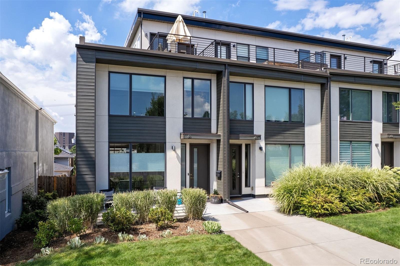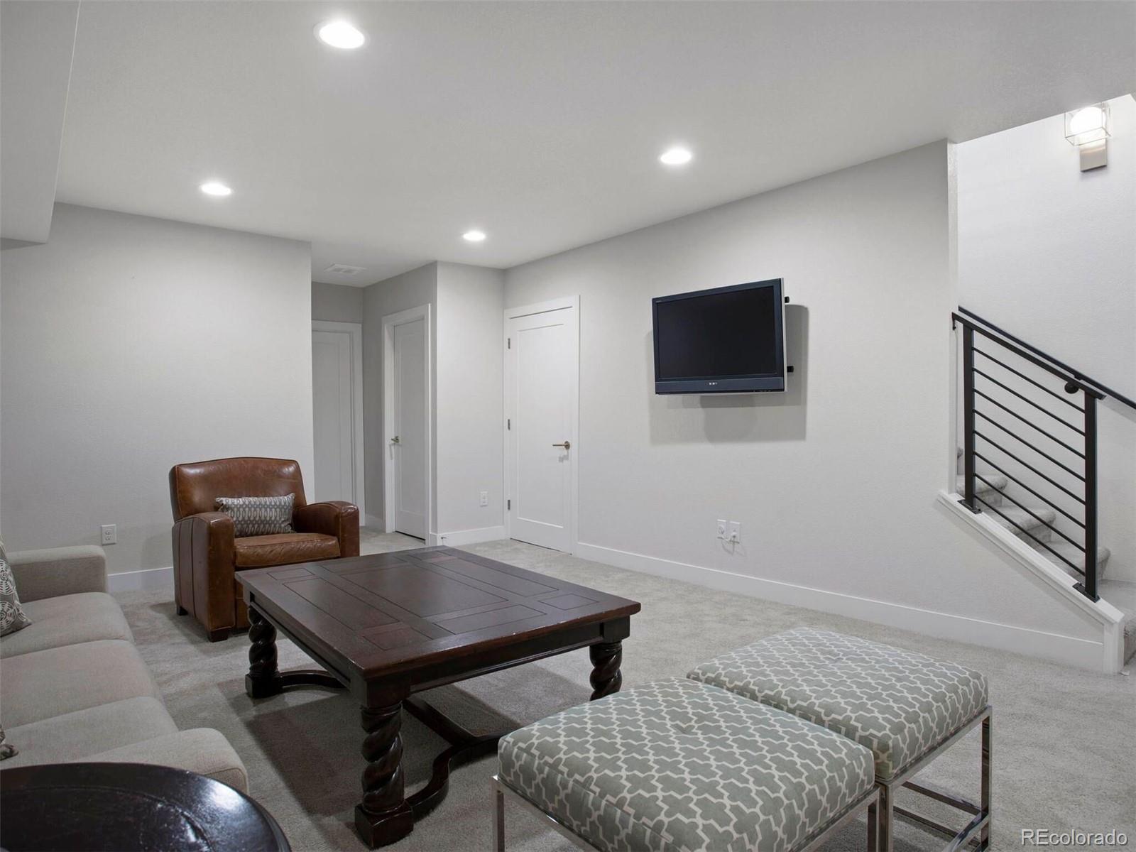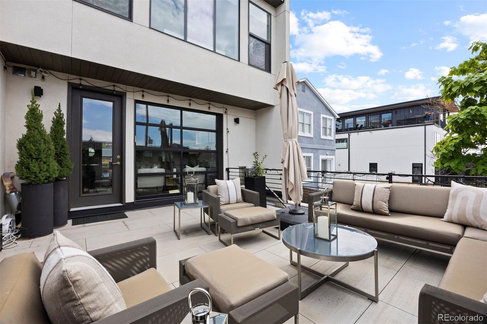 Experience luxury living in this stunning three-story townhome built in 2018 with three outdoor patios and custom features throughout. In 2019, after the original purchase, the kitchen was fully remodeled. It is a chef’s dream with modern white glossy custom soft-close cabinets, Geolux stone countertops, and a large spacious island with seating for 6. The kitchen also features Bosch appliances, a custom paneled Thermador fridge, a wine cooler and Calacatta Marble|Brass Polished Tile backsplash. The dining area features a spectacular chandelier. The family room is light-filled with a gas fireplace, brushed gold shelving, and a garage door that opens to a spacious main floor patio for indoor/outdoor entertaining. Enjoy movie nights with the pre-wired TV and surround sound system. New lighting throughout and custom bottom-up blinds were installed throughout the home to allow for privacy while enjoying all the natural light. The primary bedroom suite on the second floor is spacious with new flooring, fireplace, beautiful windows offering a mountain view, and a walk-in closet. The home is bright and airy with south-facing windows and a side yard for extra outdoor space. The third floor offers light into a gorgeous home office along with flex space and two patios with a hose bib and gas for grilling/heating, and amazing views of the mountains. The home has zoned heating and cooling from two 90% efficient GFA heat and high efficiency 15 seer air conditioning units. The second level features a second bedroom with new flooring, a bath and the laundry area which has a Samsung washer and dryer and cabinets for storage. The basement is finished with a bedroom, a bathroom, a TV area, and two flex spaces for a second home office or other use. The oversized 2-car garage has upgraded electrical and heat, high ceilings with installed rack storage, an insulated door, and a Genie 2028 proline GDO HomeLink and Car2u compatible. Don’t miss this opportunity to own this exquisite townhome