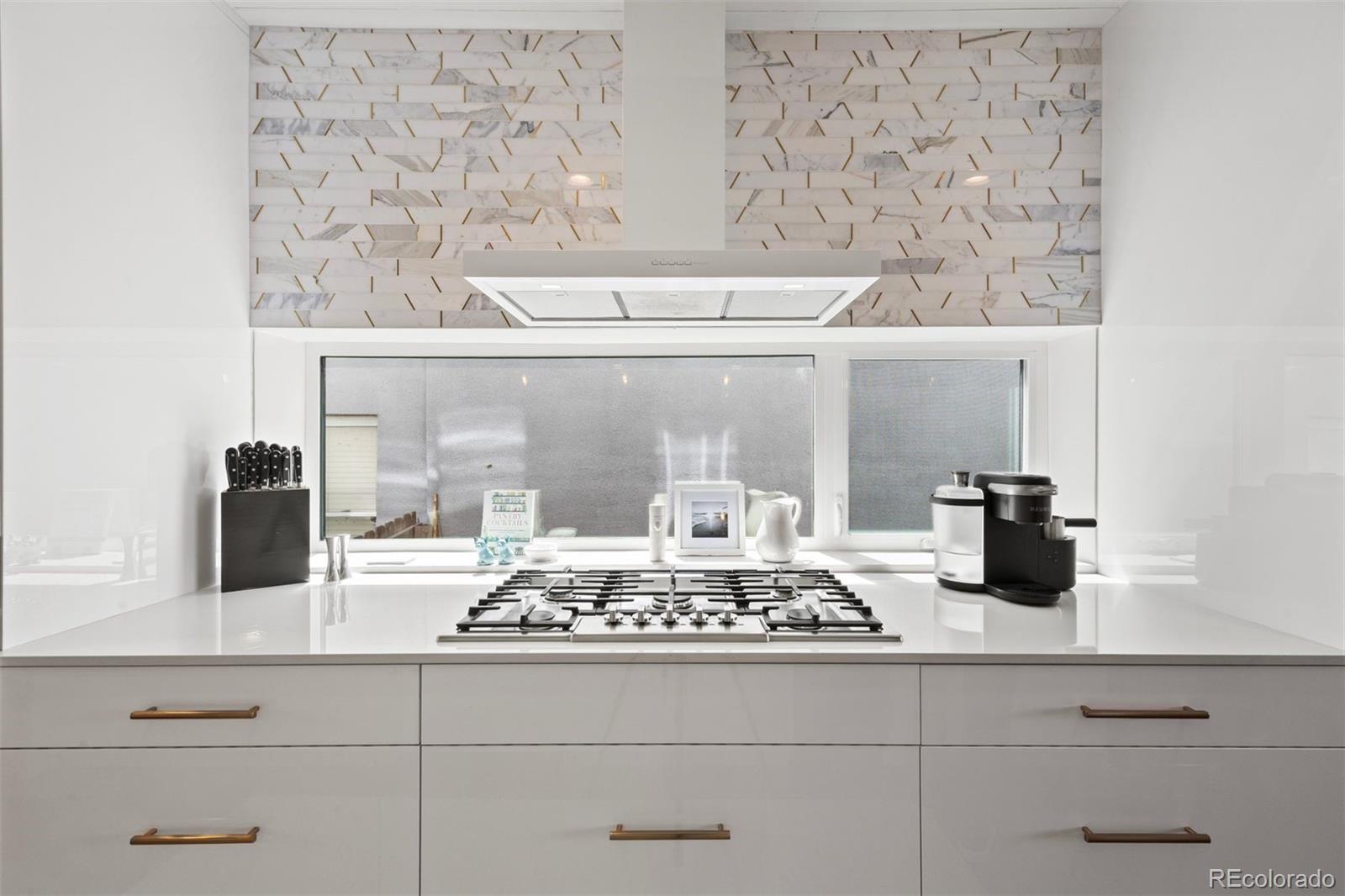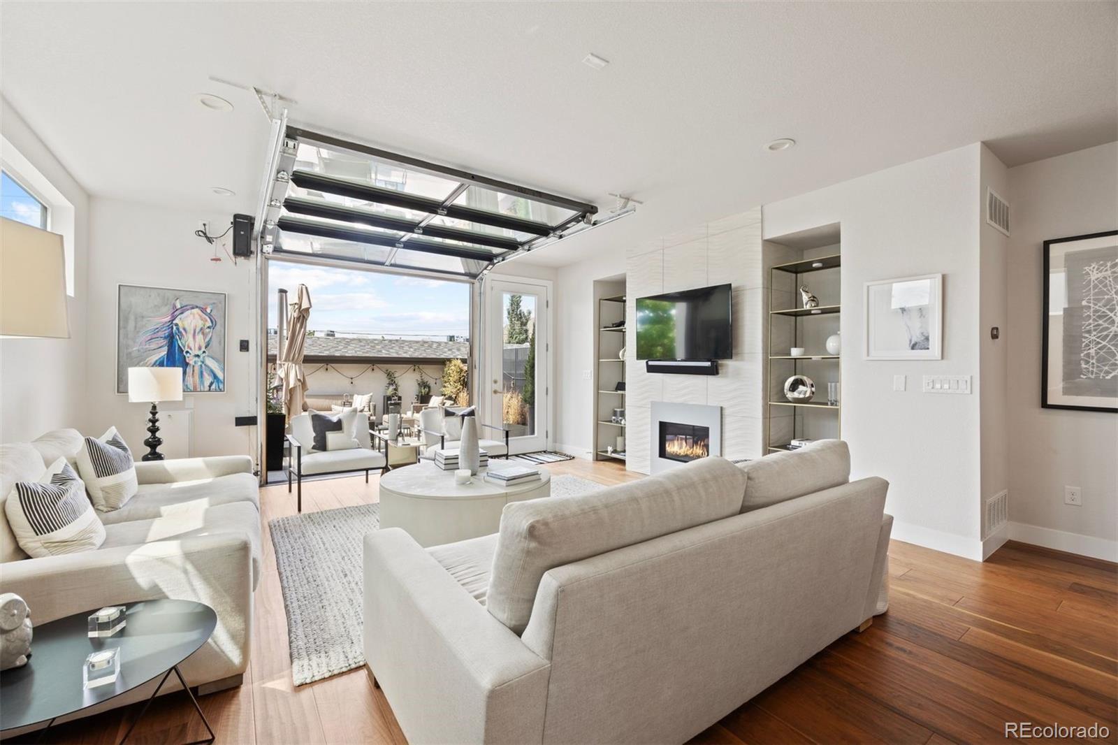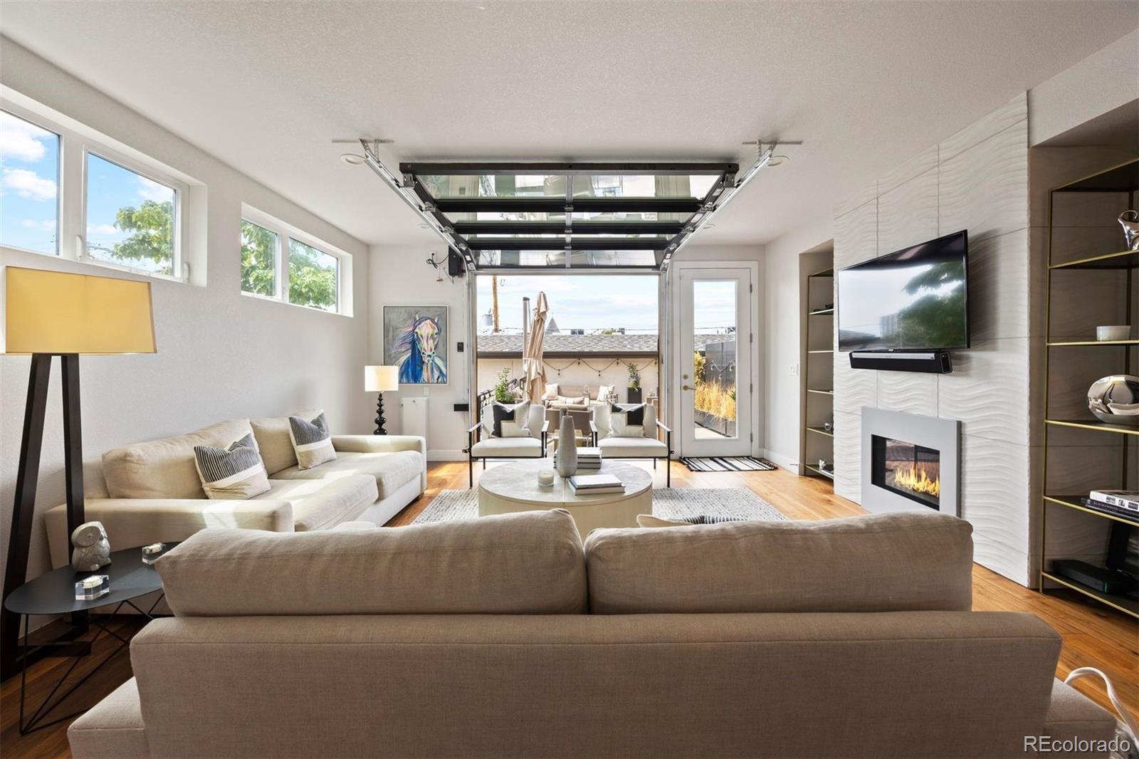 Experience luxury living in this stunning three-story townhome built in 2018 with three outdoor patios and custom features throughout. In 2019, after the original purchase, the kitchen was fully remodeled. It is a chef’s dream with modern white glossy custom soft-close cabinets, Geolux stone countertops, and a large spacious island with seating for 6. The kitchen also features Bosch appliances, a custom paneled Thermador fridge, a wine cooler and Calacatta Marble|Brass Polished Tile backsplash. The dining area features a spectacular chandelier. The family room is light-filled with a gas fireplace, brushed gold shelving, and a garage door that opens to a spacious main floor patio for indoor/outdoor entertaining. Enjoy movie nights with the pre-wired TV and surround sound system. New lighting throughout and custom bottom-up blinds were installed throughout the home to allow for privacy while enjoying all the natural light. The primary bedroom suite on the second floor is spacious with new flooring, fireplace, beautiful windows offering a mountain view, and a walk-in closet. The home is bright and airy with south-facing windows and a side yard for extra outdoor space. The third floor offers light into a gorgeous home office along with flex space and two patios with a hose bib and gas for grilling/heating, and amazing views of the mountains. The home has zoned heating and cooling from two 90% efficient GFA heat and high efficiency 15 seer air conditioning units. The second level features a second bedroom with new flooring, a bath and the laundry area which has a Samsung washer and dryer and cabinets for storage. The basement is finished with a bedroom, a bathroom, a TV area, and two flex spaces for a second home office or other use. The oversized 2-car garage has upgraded electrical and heat, high ceilings with installed rack storage, an insulated door, and a Genie 2028 proline GDO HomeLink and Car2u compatible. Don’t miss this opportunity to own this exquisite townhome