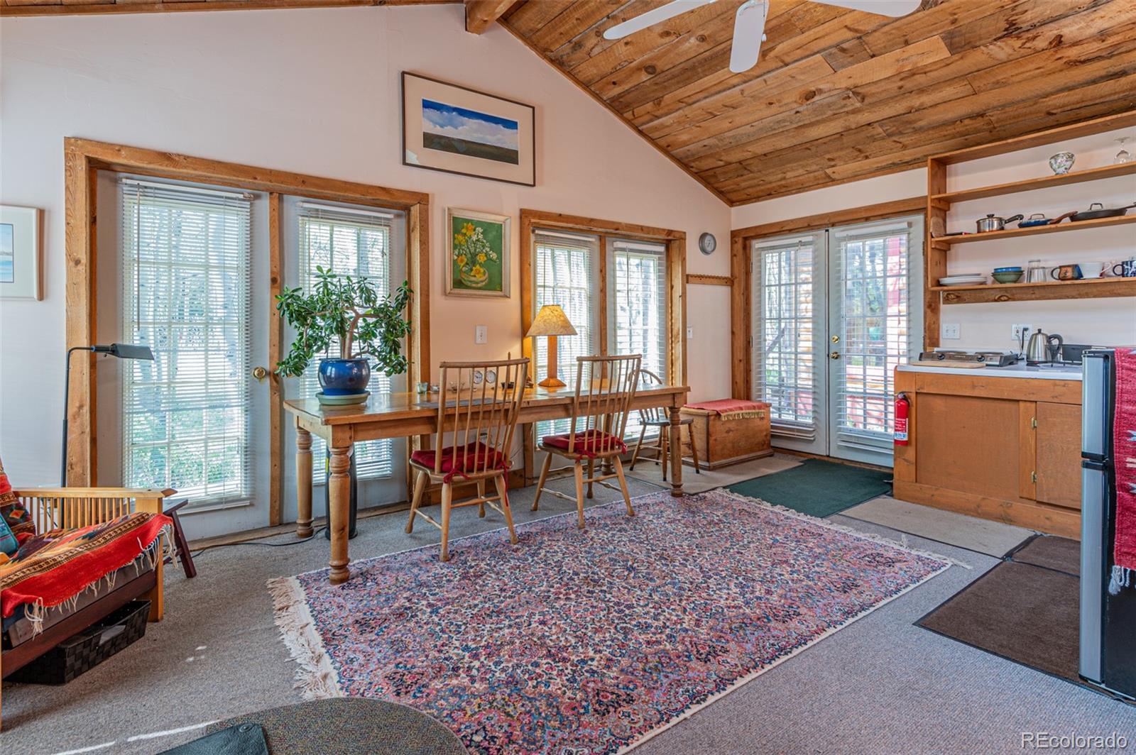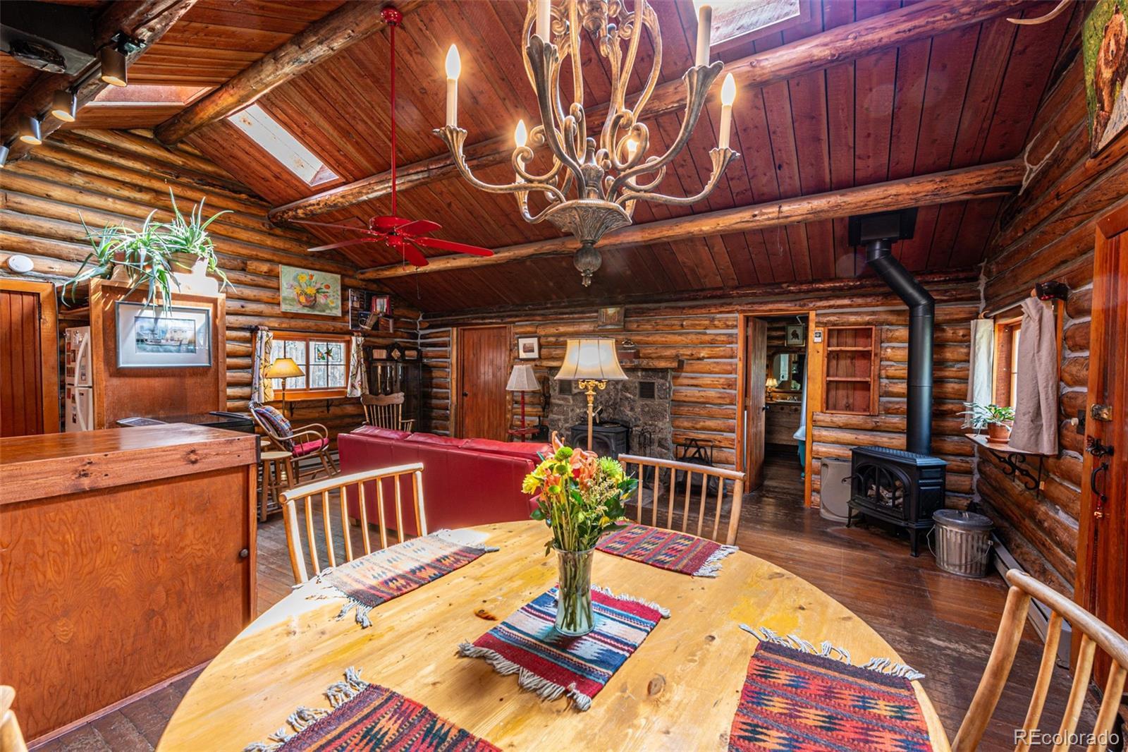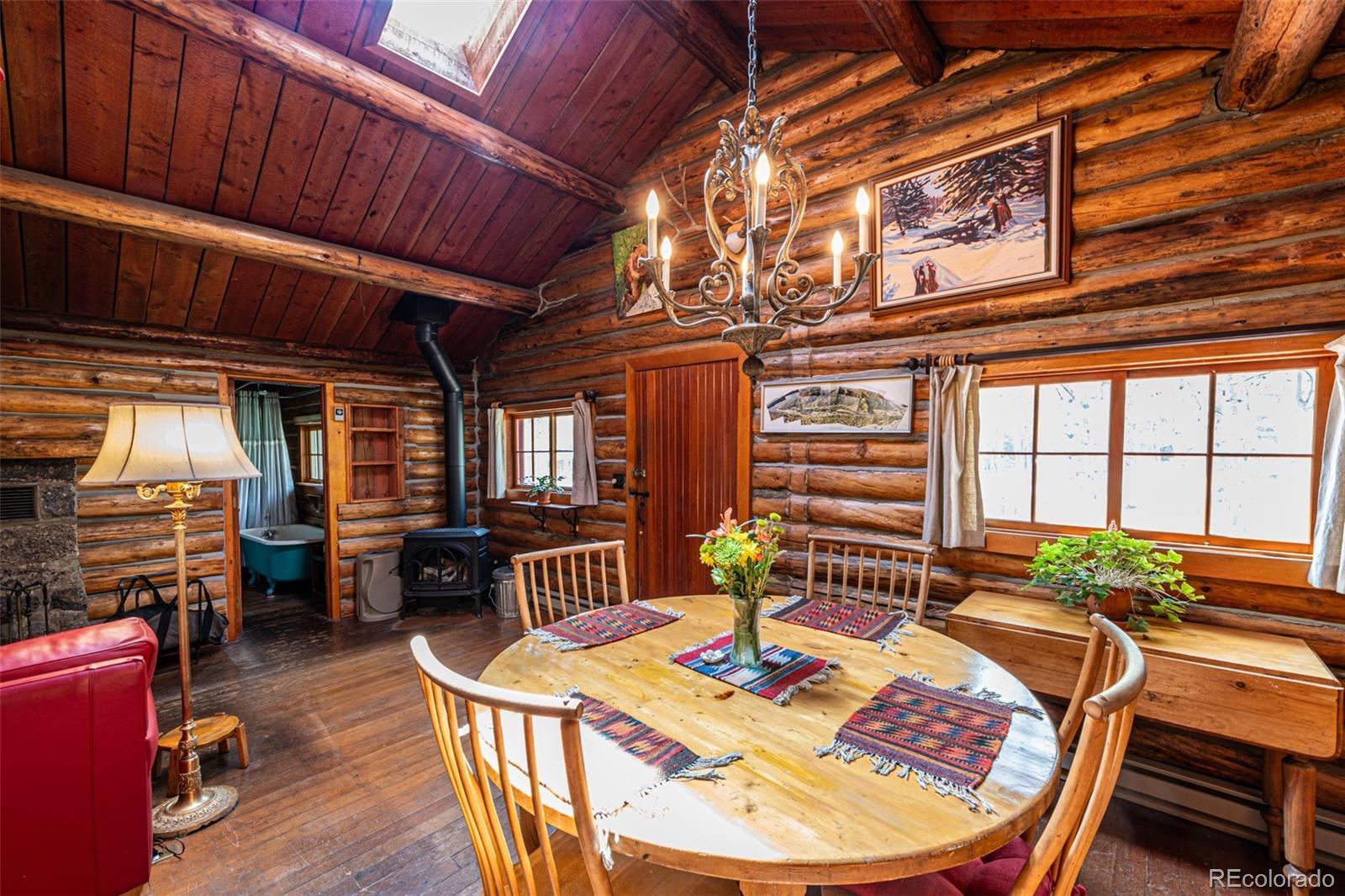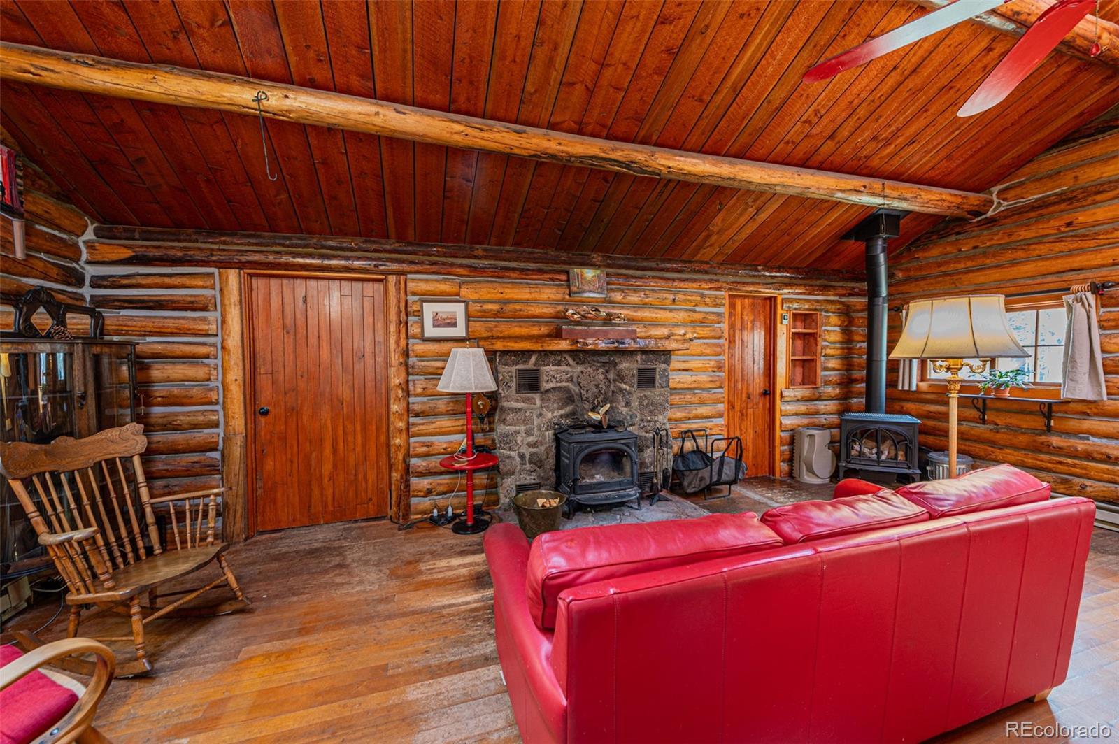 Gorgeous original 1930’s log cabin, inside the Walls are insulated* with stone fireplace. Artist's home in immaculate condition inside and out, a well maintained home and property. Over 10 skylights provide added natural light. Floor plan provides a 1 level ranch house with many windows and exits throughout the living area. Mature aspen grove and fully fenced-in front yard with many wildflowers and naturalized perennials. Separate studio for office or guest space with bathroom and shower. Multiple parking spaces. Winterized for year-round living with several sources of heat. Clawfoot bathtub. New washer, dryer and water heater. New metal roof installed on all buildings in 2017. Two large Tuff Sheds for storage. Room for RV parking. South facing. Close to Eldora ski area and hiking trails. Lovingly Cared for Home!