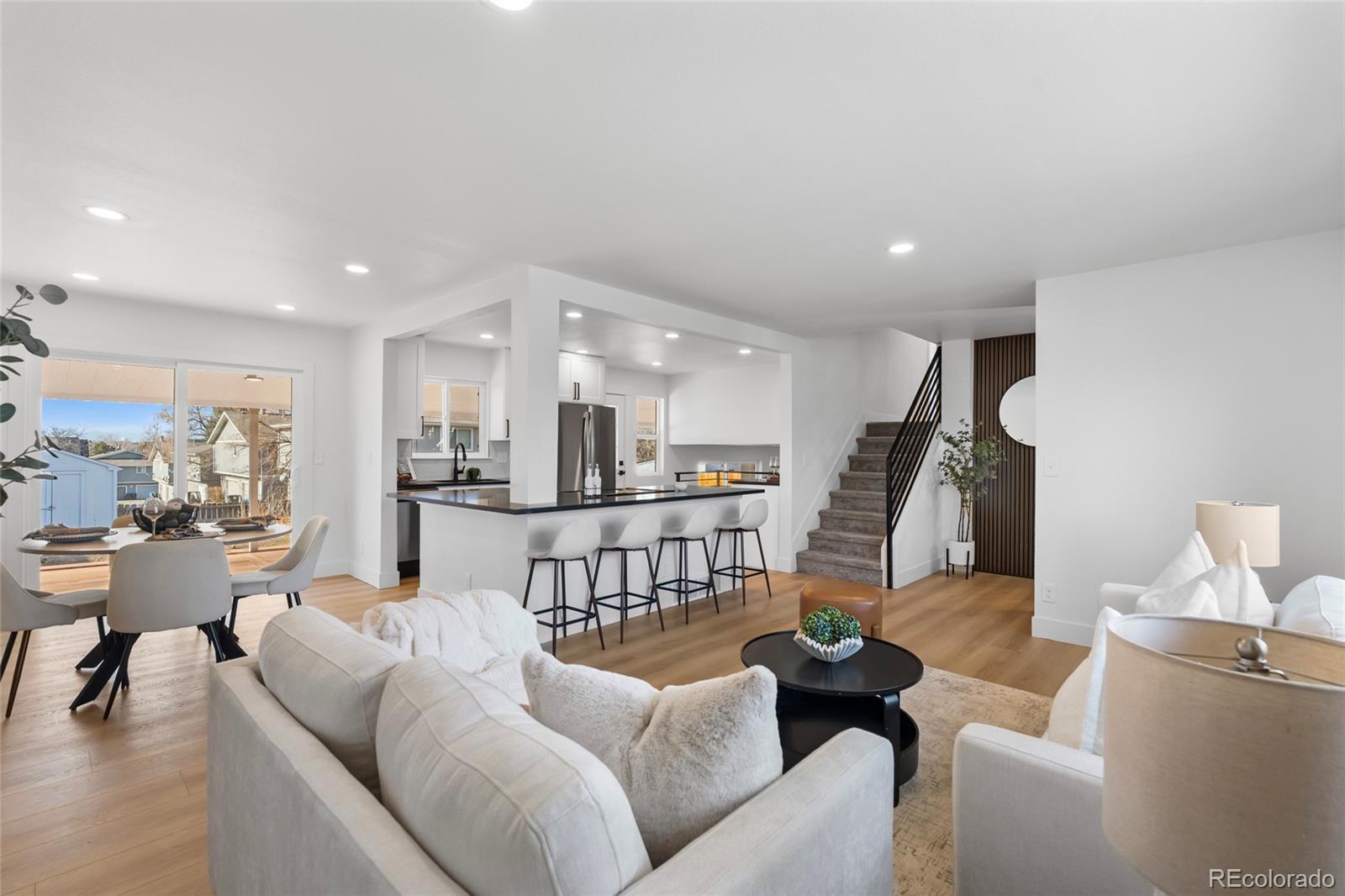 Welcome to this beautifully remodeled home showcasing modern design, custom finishes, and thoughtful attention to every detail. You’ll love the open-concept layout that flows seamlessly from the kitchen into the dining and living areas—perfect for hosting gatherings or enjoying comfortable everyday living. The home features a convenient in-unit laundry area for added functionality. The kitchen is designed to impress with soft-closing cabinets, granite countertops, and a sleek, seamless backsplash that complements the contemporary aesthetic. All kitchen appliances are brand new. The home offers four spacious bedrooms, that includes a private primary suite with its own ensuite bathroom. Recent upgrades include a newly replaced roof, new gutters, windows, a garage door with opener, and solid-core interior and exterior doors. Fresh paint throughout enhances the home’s clean, modern feel. Enjoy easy access to cafés, shopping, dining, the Anschutz Medical Campus, Children’s Hospital, and major highways including I-25 and I-70. Move-in ready and beautifully finished, this home perfectly blends comfort, style, and convenience—making it one you’ll truly fall in love with. Don’t miss your opportunity to call it yours!
