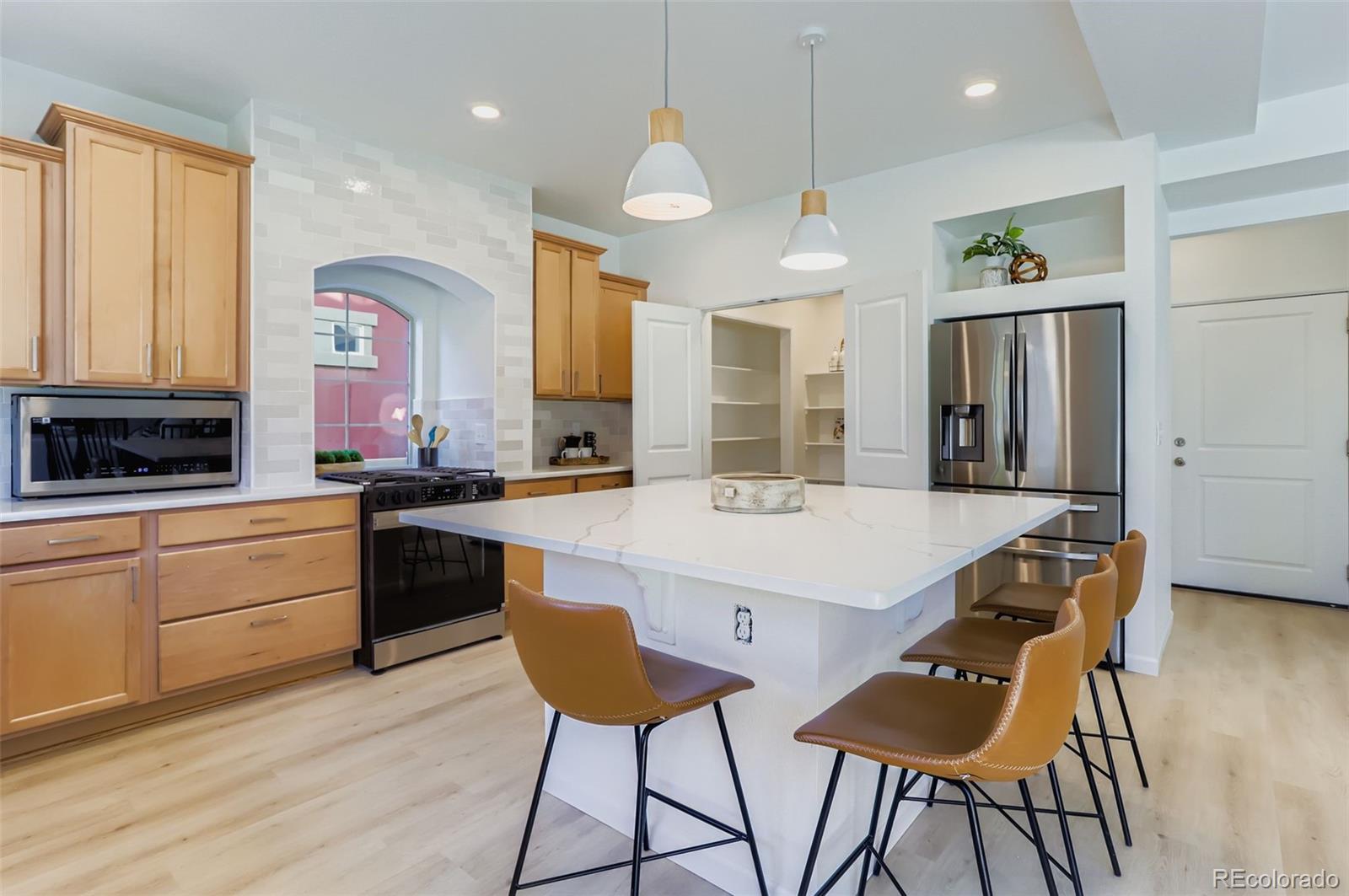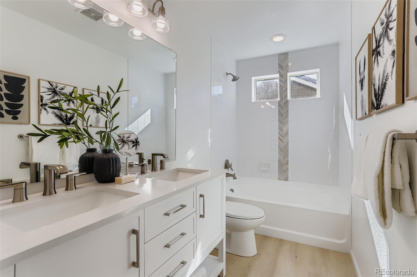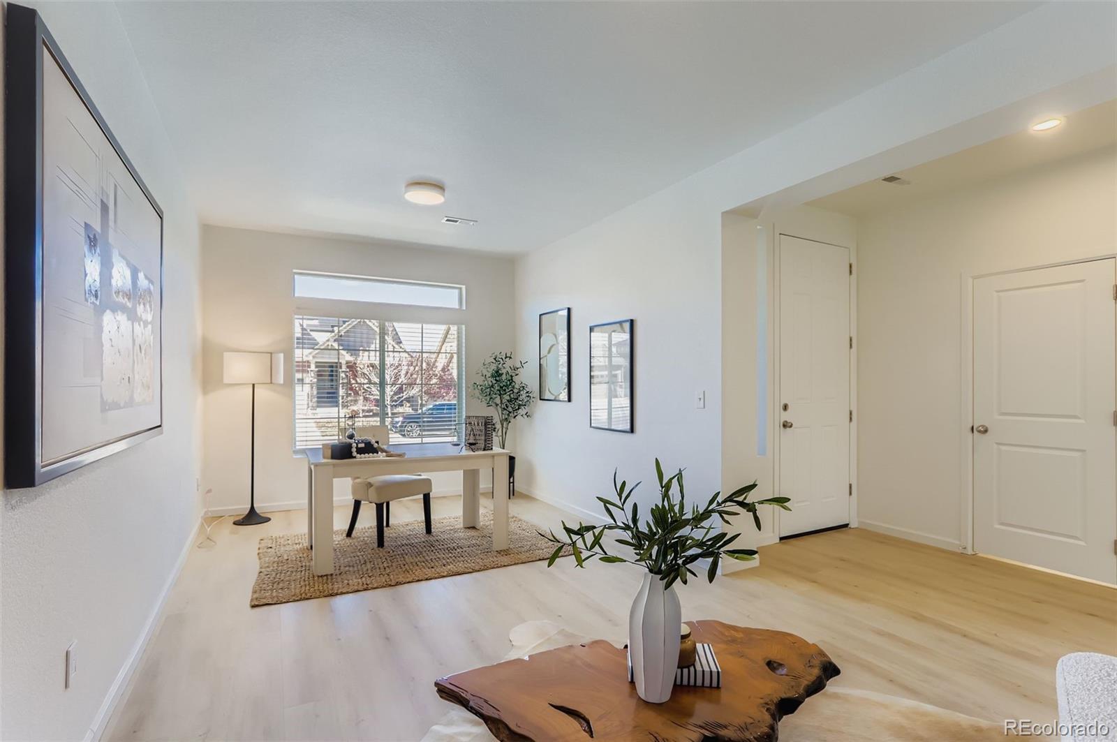 ***Open House cancelled due to Pending Status***Front yard has 2 beautiful maple trees, fresh new landscaping, and a covered porch to relax! Walk in and to the right you'll see the gorgeous, massive 20' x 10' home (dual?) office or play room with tons of natural light! Remodeled half bath! Living room has a beautiful new electric heat-producing fireplace, w/gorgeous 7 foot wide cultured stone surround and mantel! New luxury vinyl plank flooring throughout main floor, new blinds, new Samsung stainless appliance package in the kitchen and laundry (w/pedestals), incl. a brand new custom quartz island center piece w/enough space for literally 10 people (3,2,3,2) comfortably and WITH ROOM around the kitchen! You're not going to believe how beautifully GRAND the double-doored custom pantry is - it's any homeowner's dream! Custom backsplash to ceiling above the slide-in range, and soft close cabinetry throughout! The backyard leads out to a newly sodded and sprinklered lawn, with new landscaping as well. You get your own garden with amazing Southern Exposure - green thumbs feel alive in the space! The 2 car garage is 100% finished, and has a brand new 8' door and not 1/2 hp, but a 3/4 HP Chamberlain garage door opener with front and back camera - new technology! On the 2nd floor you have the Primary Bedroom with custom light/fan, a walk-in closet with all chrome closet rods (they're all chrome throughout), and a new custom vanity, quartz countertops and backsplash, Moen Faucets, Delta Raindrop Shower Head, and 2 new round mirrors! The other 3 generously sized bedrooms are throughout. The 2nd floor 2nd bath is custom too, with Moen Faucets, a new double vanity and tops! You even get another BONUS OFFICE/DEN/PLAY room on 2nd floor! On the 3rd level, call it what you want b/c it can be what you want - a massive nearly 600 sq.ft. space - Rec/Game/TV/Play/Yoga Room - whatever! MOUNTAIN views! The 850 sq.ft. unfinished bsmt is great storage or finish l8r! Hurry!