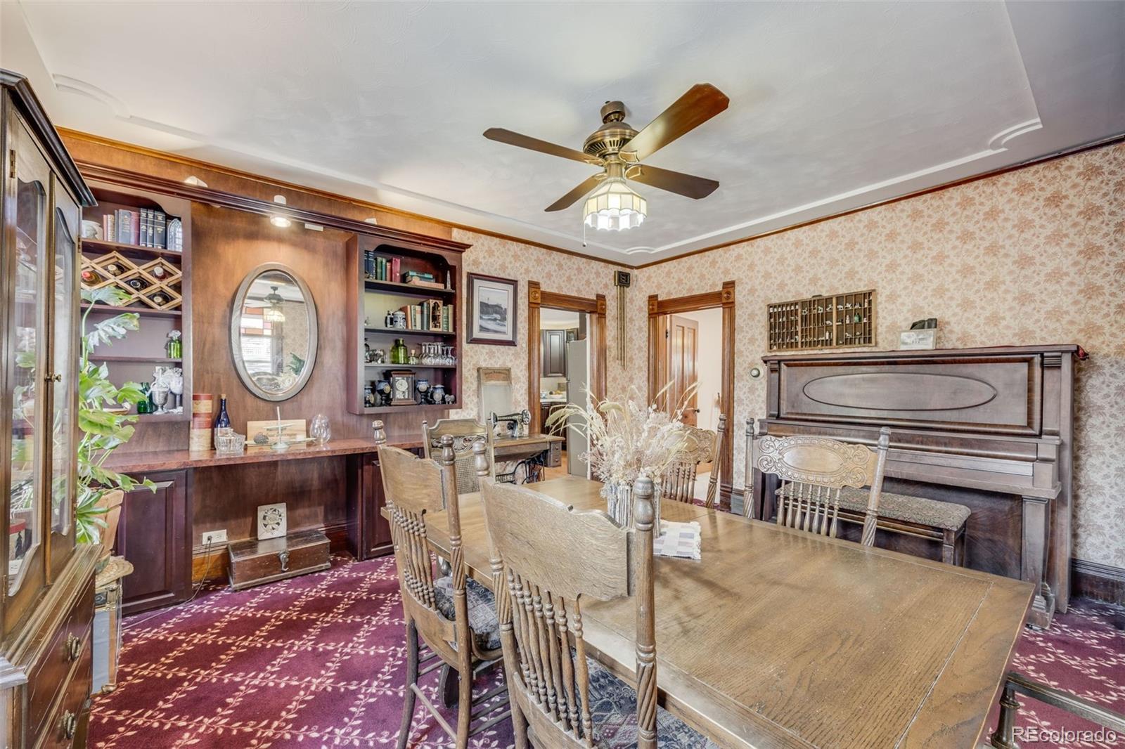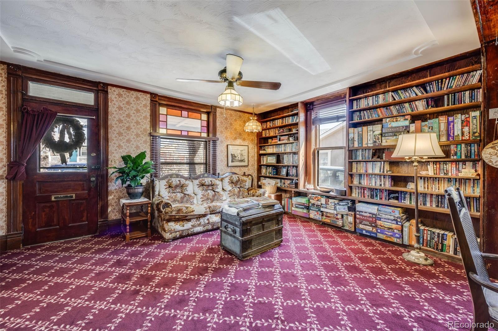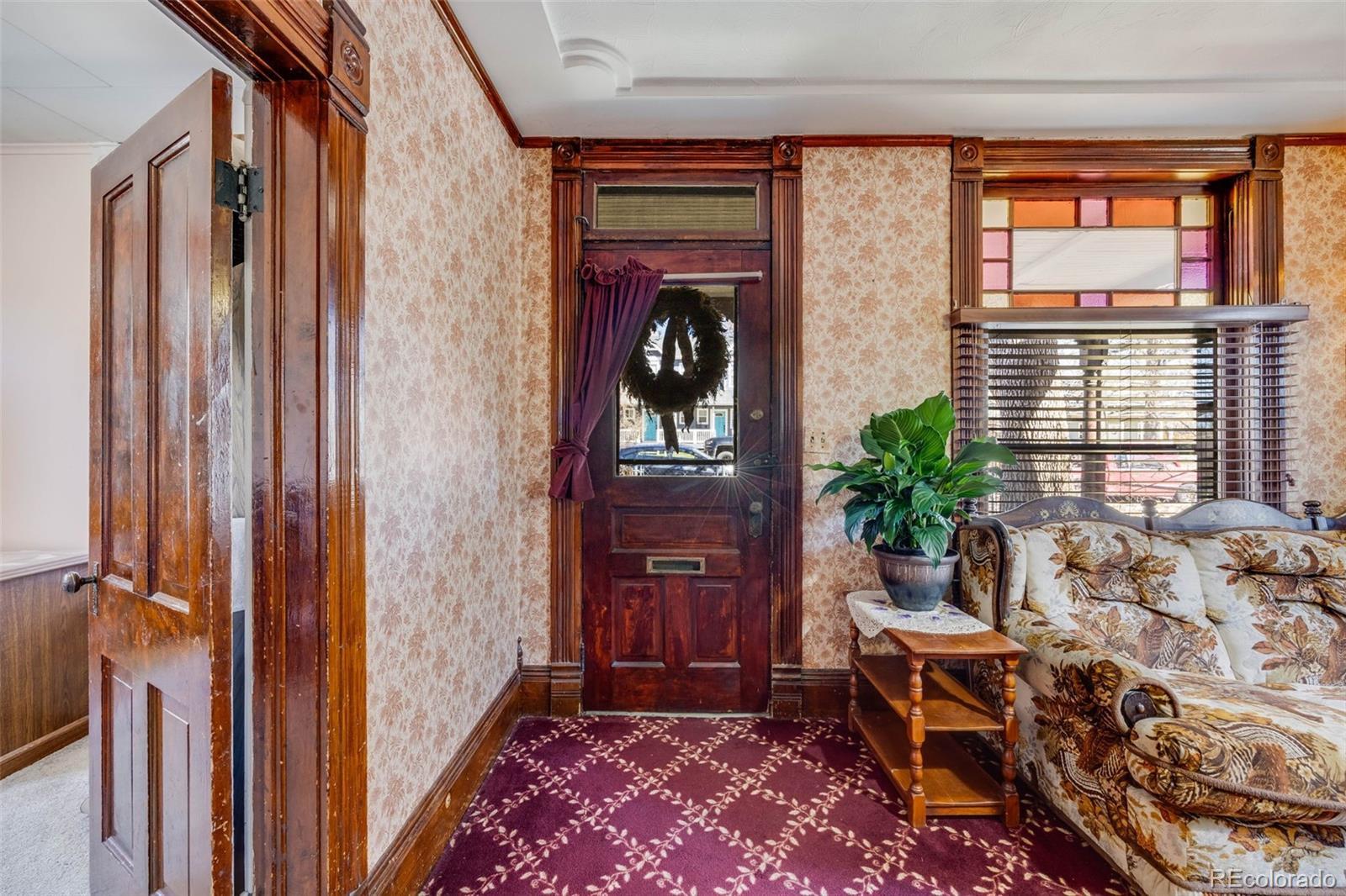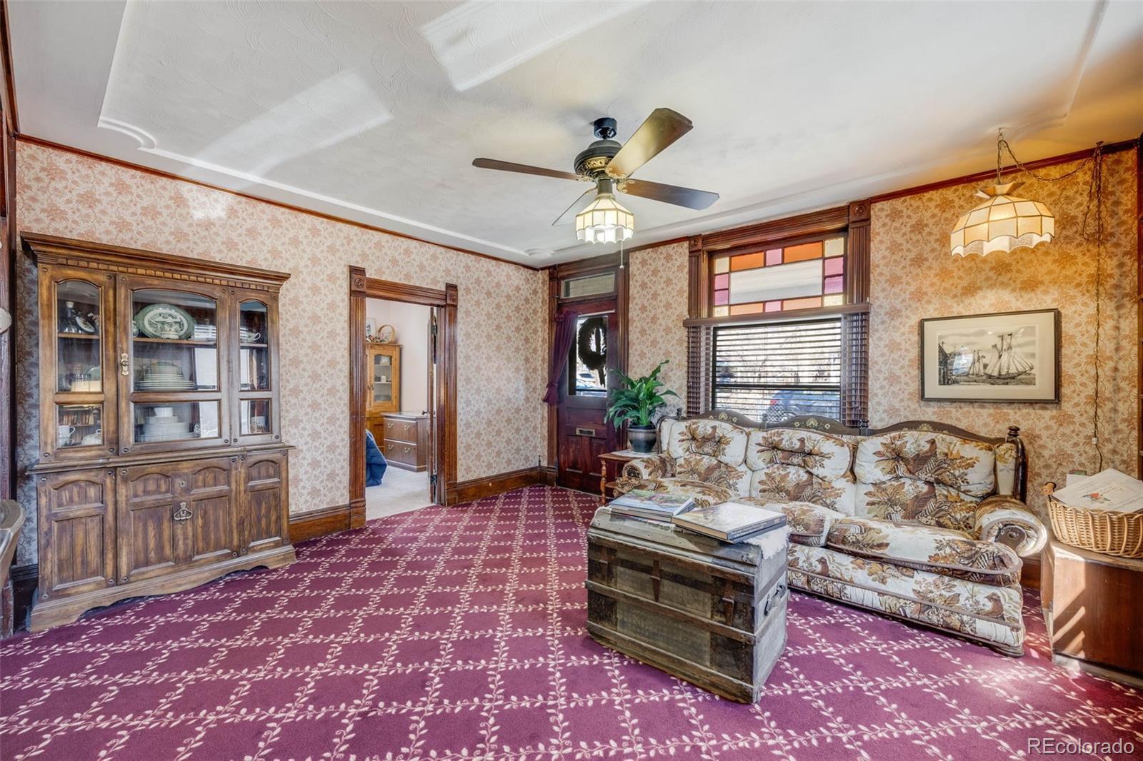 Step into the heart of Old Town Lafayette’s history with this beautifully preserved 4-bedroom, 2-bathroom home, officially designated as a historic landmark by the City of Lafayette for its architectural character and notable past residents. This designation provides access to Colorado state preservation tax credits and potential grant opportunities for future improvements. From the moment you arrive, the inviting front porch—with original posts and intricate woodwork—sets the tone for the timeless craftsmanship found throughout. Inside, rich millwork, stained glass, high ceilings, and detailed trim reflect the home’s historic integrity. The spacious living and dining areas are accented by built-in bookshelves, vintage wallpaper, and distinctive architectural touches. The kitchen has been tastefully updated with cherry-toned cabinetry and stainless steel appliances, blending seamlessly with the home's original style. A thoughtfully designed two-story addition includes a bright and versatile second living area that opens to a heated greenhouse and flagstone patio—perfect for indoor/outdoor enjoyment. Four generous bedrooms and two tiled full baths span both levels, with the primary suite offering ample space. Storage is abundant with built-in cabinetry, closets, and a basement bonus area ideal for an office or creative space. Recent updates include a newer sewer line and a durable Class 4 impact-resistant shingle roof. The fenced backyard is a private oasis featuring mature trees, raised garden beds, and space for future garage or ADU construction off the alley. Nestled on a quiet street in one of Lafayette’s most walkable neighborhoods, you're just steps from coffee shops, brewpubs, galleries, local dining, and community favorites like the historic theatre. A rare opportunity to own a piece of Lafayette’s legacy with modern livability.