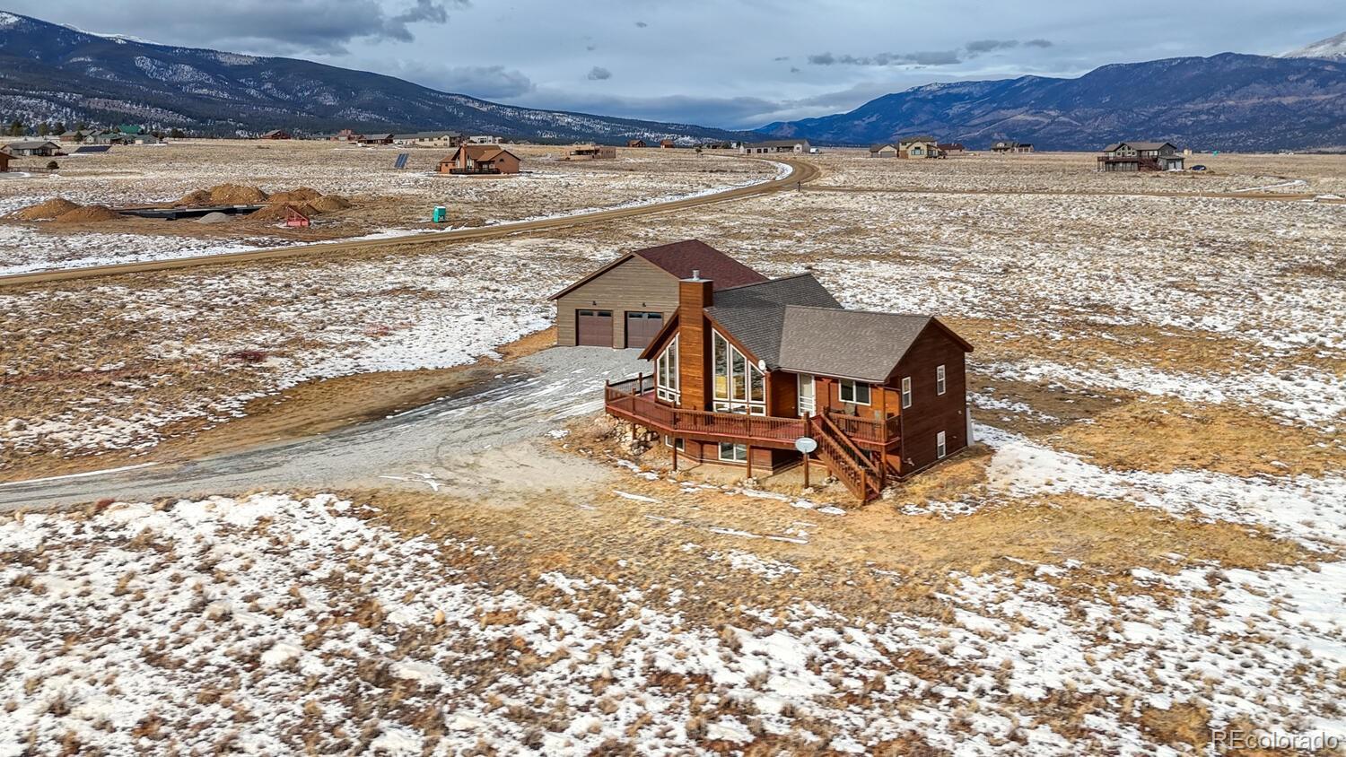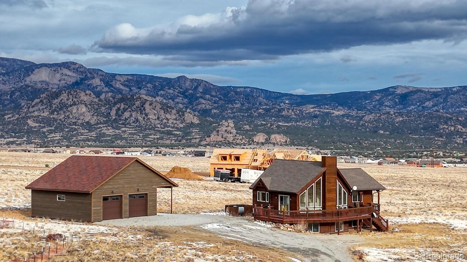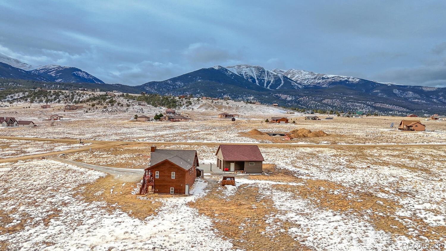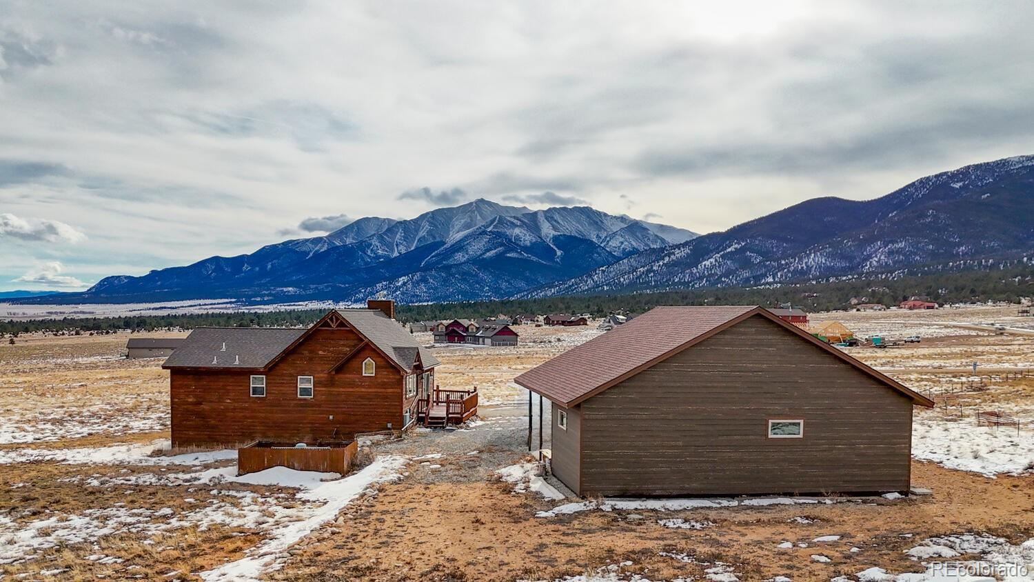 Nestled in the coveted Game Trail Subdivision, this stunning 2-bedroom, 2-bathroom cedar-sided mountain home offers the perfect blend of rustic charm and modern comfort on a sprawling 3.44-acre lot. The property boasts breathtaking panoramic views of the majestic Collegiate Peaks, where granite spires pierce the Colorado sky—ideal for watching dramatic sunrises and alpenglow evenings from your own private retreat. Step inside to an open and inviting great room featuring a cozy gas fireplace as the focal point, perfect for gathering after a day of hiking, skiing, or exploring nearby Buena Vista's rivers and trails. The updated kitchen shines with sleek granite countertops, ample cabinetry, and space for culinary adventures while overlooking the living area. Beautiful new hardwood floors flow through the main living spaces, complemented by fresh tile in the bathrooms and plush new carpet in the bedrooms for added warmth. The garden-level family room provides versatile bonus space—ideal as a media room, home office, gym, or guest quarters—with natural light. Recent upgrades include a brand-new hot water heater for worry-free efficiency. Car enthusiasts and hobbyists will love the oversized 30x30 detached garage/workshop, offering plenty of room for vehicles, tools, storage, or creative projects. Game Trail residents enjoy community amenities like hiking trails nearby, wildlife viewing, and a peaceful mountain lifestyle just minutes from town. This move-in-ready home combines low-maintenance living with abundant outdoor space on 3.44 acres—perfect for gardens, play, or simply soaking in the serenity. Don't miss this rare opportunity to own a slice of Colorado paradise!