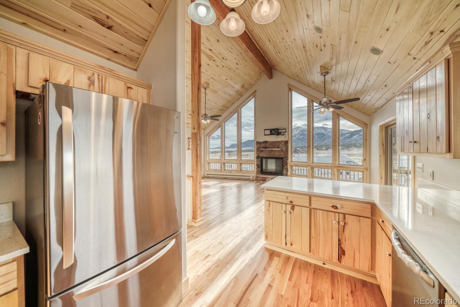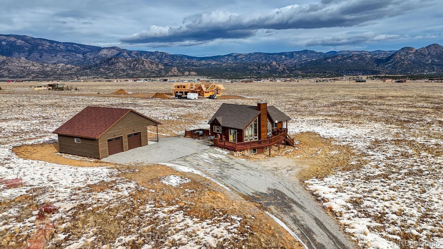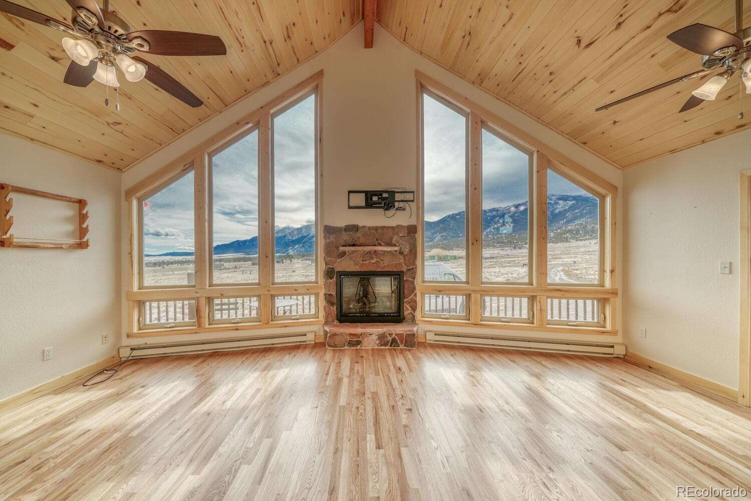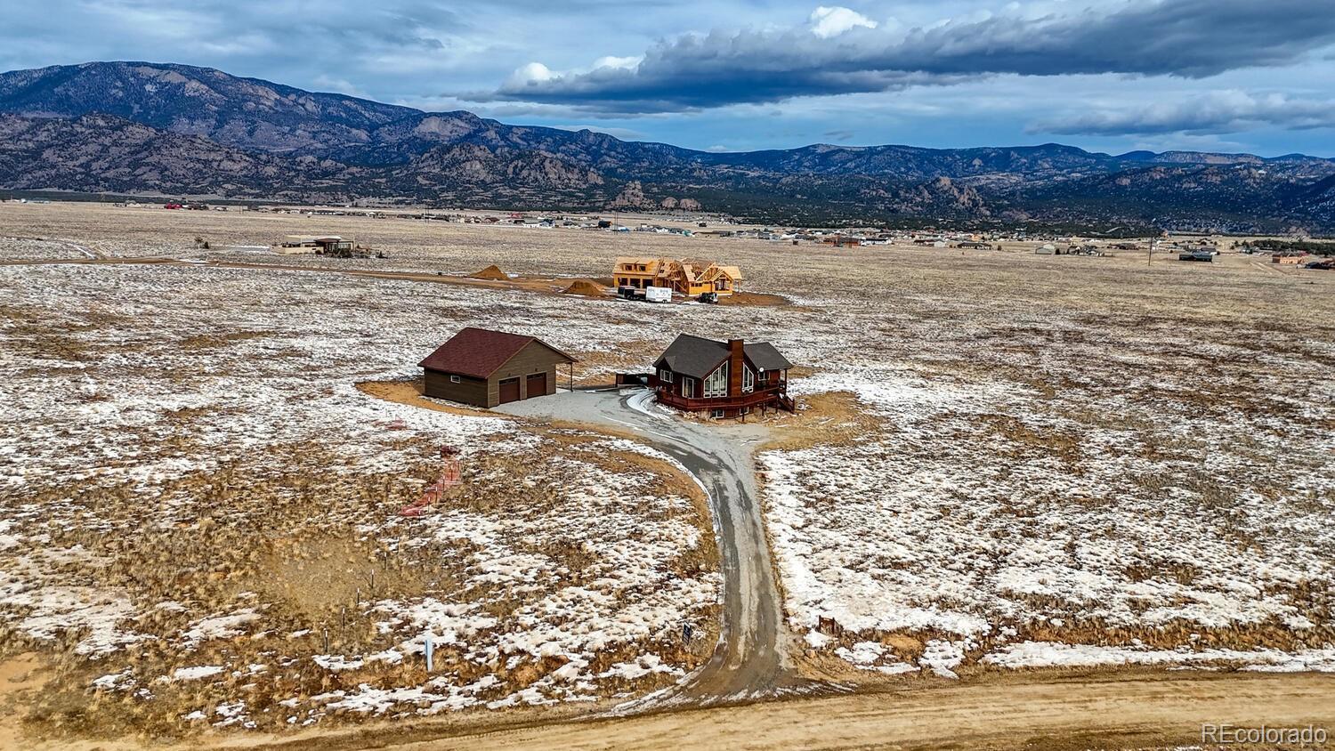 Nestled in the coveted Game Trail Subdivision, this stunning 2-bedroom, 2-bathroom cedar-sided mountain home offers the perfect blend of rustic charm and modern comfort on a sprawling 3.44-acre lot. The property boasts breathtaking panoramic views of the majestic Collegiate Peaks, where granite spires pierce the Colorado sky—ideal for watching dramatic sunrises and alpenglow evenings from your own private retreat. Step inside to an open and inviting great room featuring a cozy gas fireplace as the focal point, perfect for gathering after a day of hiking, skiing, or exploring nearby Buena Vista's rivers and trails. The updated kitchen shines with sleek granite countertops, ample cabinetry, and space for culinary adventures while overlooking the living area. Beautiful new hardwood floors flow through the main living spaces, complemented by fresh tile in the bathrooms and plush new carpet in the bedrooms for added warmth. The garden-level family room provides versatile bonus space—ideal as a media room, home office, gym, or guest quarters—with natural light. Recent upgrades include a brand-new hot water heater for worry-free efficiency. Car enthusiasts and hobbyists will love the oversized 30x30 detached garage/workshop, offering plenty of room for vehicles, tools, storage, or creative projects. Game Trail residents enjoy community amenities like hiking trails nearby, wildlife viewing, and a peaceful mountain lifestyle just minutes from town. This move-in-ready home combines low-maintenance living with abundant outdoor space on 3.44 acres—perfect for gardens, play, or simply soaking in the serenity. Don't miss this rare opportunity to own a slice of Colorado paradise!