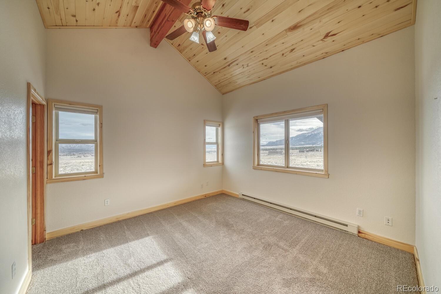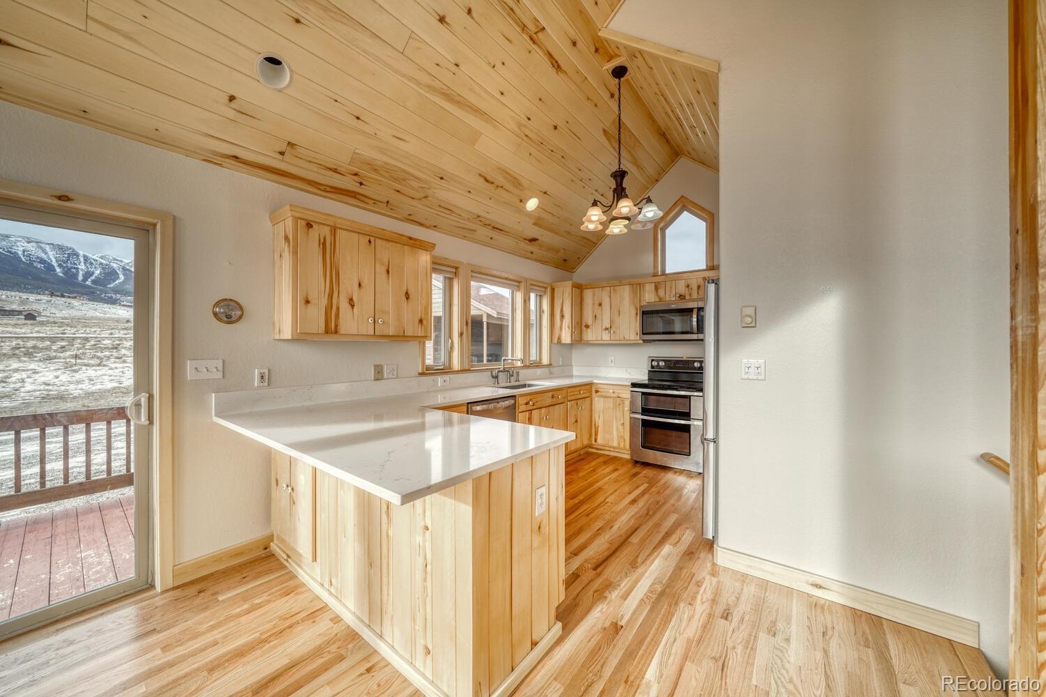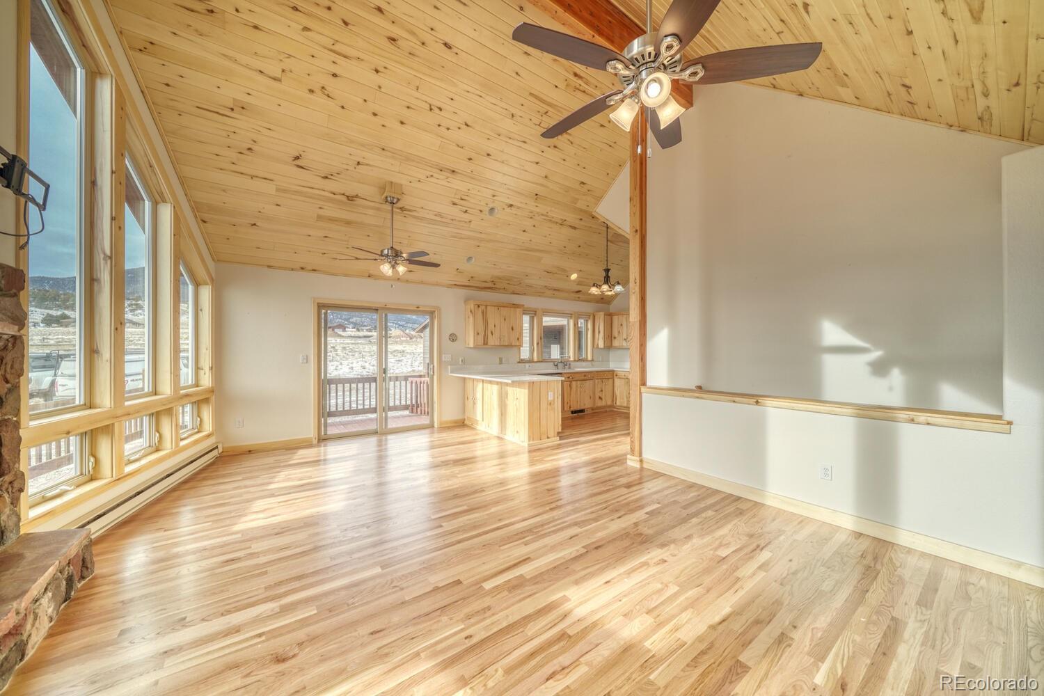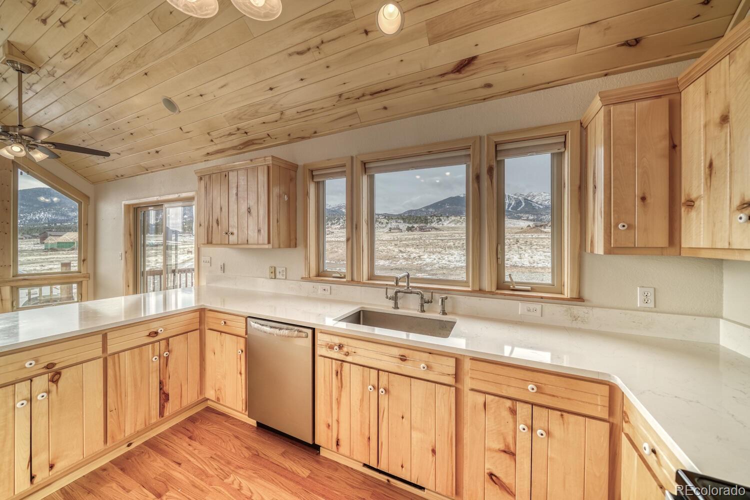 Nestled in the coveted Game Trail Subdivision, this stunning 2-bedroom, 2-bathroom cedar-sided mountain home offers the perfect blend of rustic charm and modern comfort on a sprawling 3.44-acre lot. The property boasts breathtaking panoramic views of the majestic Collegiate Peaks, where granite spires pierce the Colorado sky—ideal for watching dramatic sunrises and alpenglow evenings from your own private retreat. Step inside to an open and inviting great room featuring a cozy gas fireplace as the focal point, perfect for gathering after a day of hiking, skiing, or exploring nearby Buena Vista's rivers and trails. The updated kitchen shines with sleek granite countertops, ample cabinetry, and space for culinary adventures while overlooking the living area. Beautiful new hardwood floors flow through the main living spaces, complemented by fresh tile in the bathrooms and plush new carpet in the bedrooms for added warmth. The garden-level family room provides versatile bonus space—ideal as a media room, home office, gym, or guest quarters—with natural light. Recent upgrades include a brand-new hot water heater for worry-free efficiency. Car enthusiasts and hobbyists will love the oversized 30x30 detached garage/workshop, offering plenty of room for vehicles, tools, storage, or creative projects. Game Trail residents enjoy community amenities like hiking trails nearby, wildlife viewing, and a peaceful mountain lifestyle just minutes from town. This move-in-ready home combines low-maintenance living with abundant outdoor space on 3.44 acres—perfect for gardens, play, or simply soaking in the serenity. Don't miss this rare opportunity to own a slice of Colorado paradise!