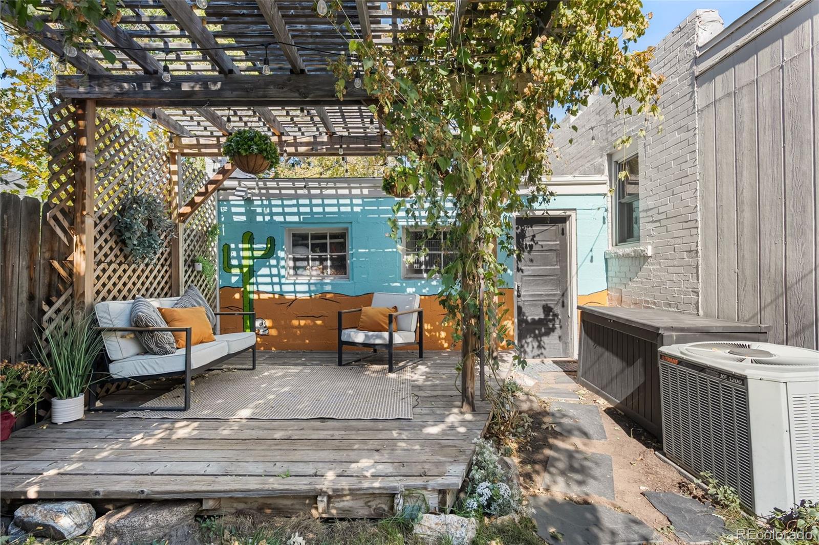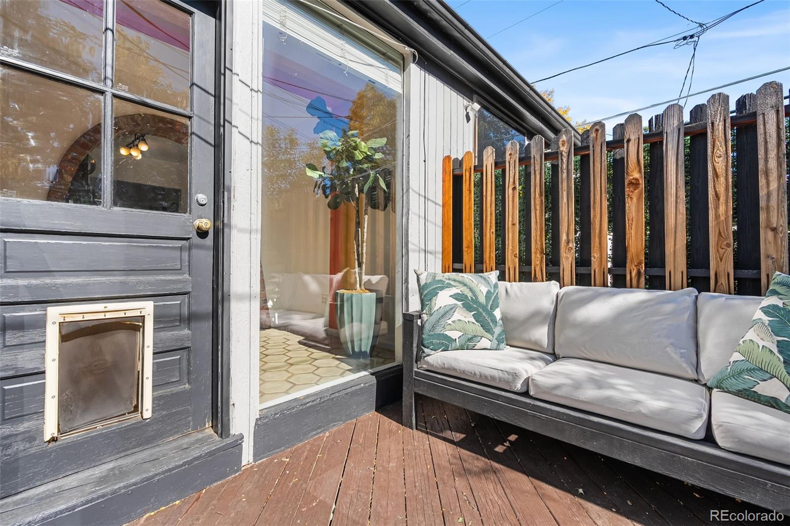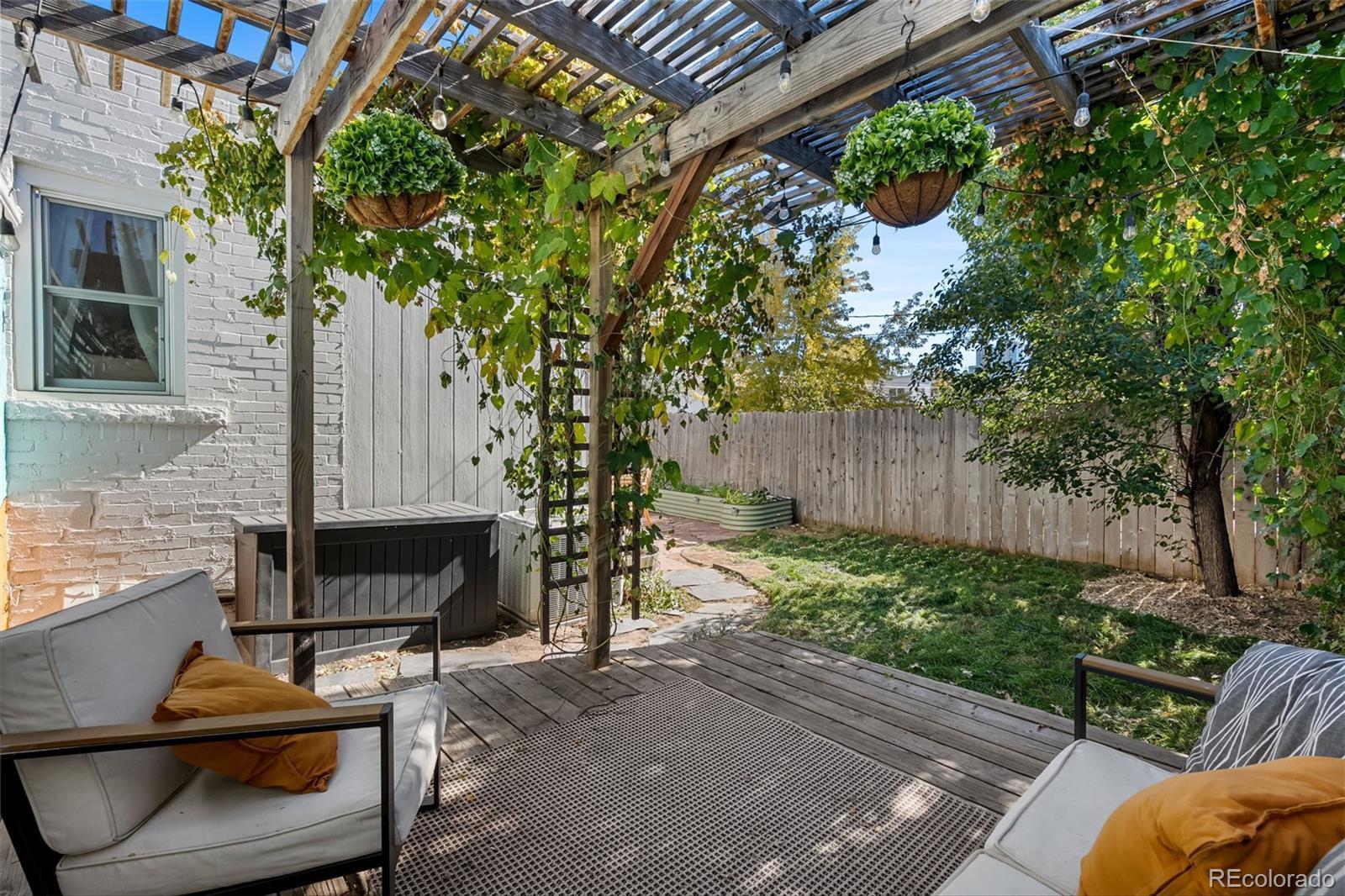 Charming half duplex in an UNBEATABLE location! Historic Alamo Placita Park is literally around the corner! Bike to Cheesman (1 mile away), 3 Blocks from Cherry Creek Bike Path/ Denver Country Club Bike Path, Speer Blvd Bike Path- 2 blocks from shopping, coffee shops and great restaurants on 6th Ave- a quick walk to Governer's Park. One mile from Cherry Creek Shopping District and Whole Foods! Hardwood floors in the main living area with large windows create a sunny, open living space- living room includes a sky light and gas fireplace perfect for entertaining. Primary bedroom boasts an ensuite totally remodeled bathroom and a sunny flex room. Kitchen includes stainless appliances and an incredible sunroom- which opens to a private deck and a "must see" yard featuring raised bed planters and a pergola for outdoor living and entertaining! This unique yard does not open to an alley (garage faces the street!) making it a quiet oasis for entertaining and relaxing. No HOA. City living at its best!