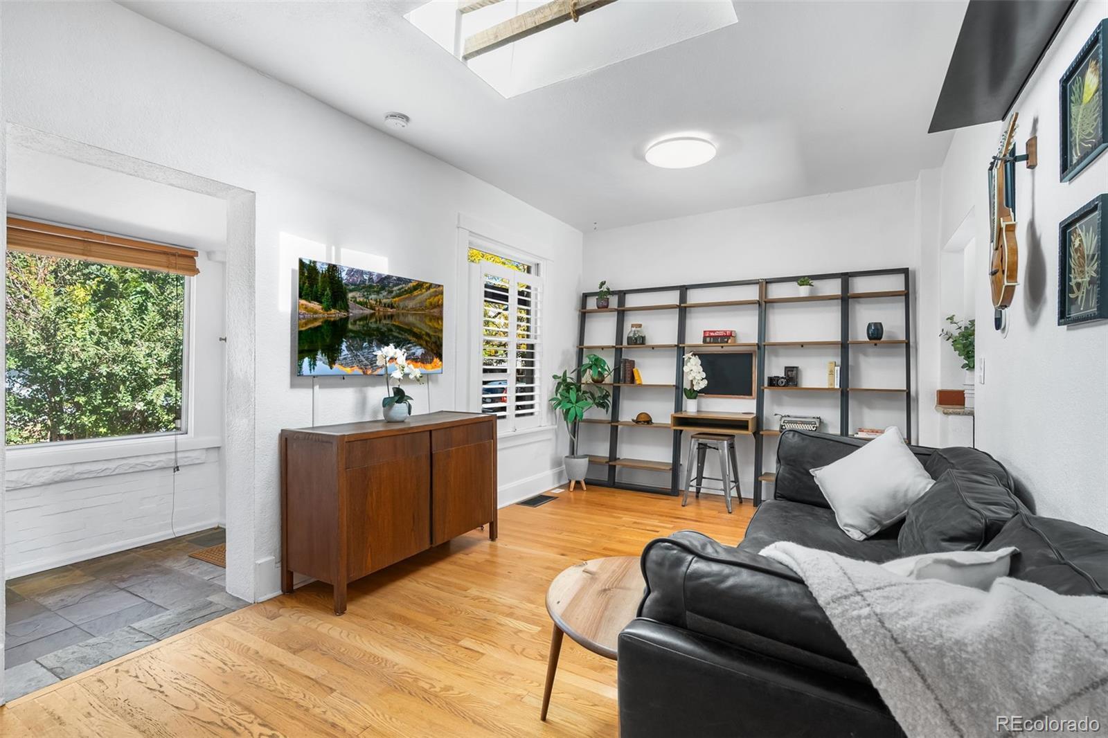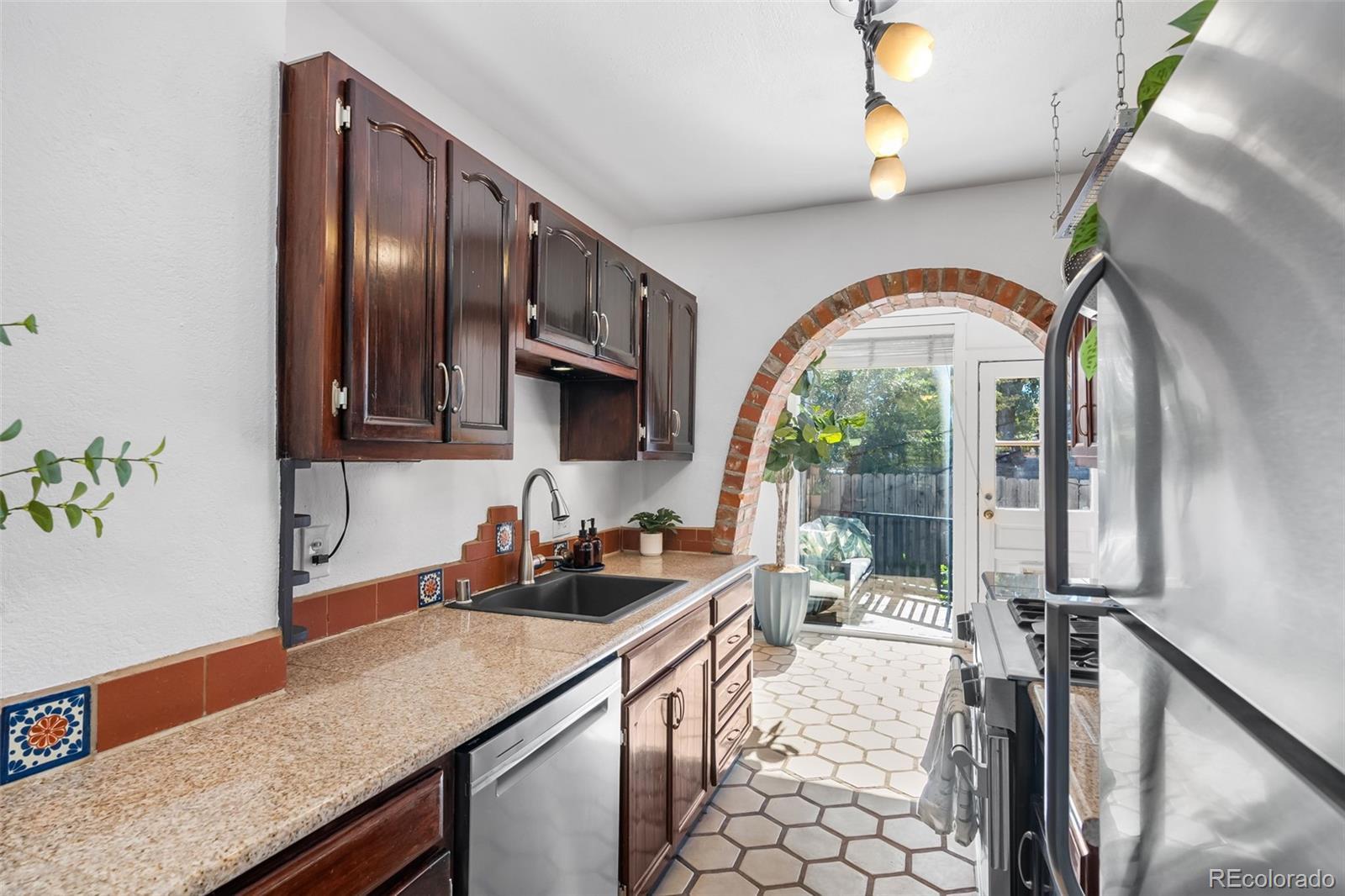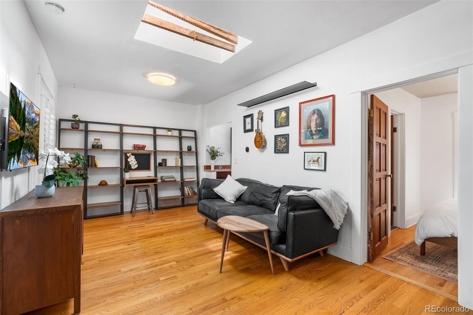 Charming half duplex in an UNBEATABLE location! Historic Alamo Placita Park is literally around the corner! Bike to Cheesman (1 mile away), 3 Blocks from Cherry Creek Bike Path/ Denver Country Club Bike Path, Speer Blvd Bike Path- 2 blocks from shopping, coffee shops and great restaurants on 6th Ave- a quick walk to Governer's Park. One mile from Cherry Creek Shopping District and Whole Foods! Hardwood floors in the main living area with large windows create a sunny, open living space- living room includes a sky light and gas fireplace perfect for entertaining. Primary bedroom boasts an ensuite totally remodeled bathroom and a sunny flex room. Kitchen includes stainless appliances and an incredible sunroom- which opens to a private deck and a "must see" yard featuring raised bed planters and a pergola for outdoor living and entertaining! This unique yard does not open to an alley (garage faces the street!) making it a quiet oasis for entertaining and relaxing. No HOA. City living at its best!