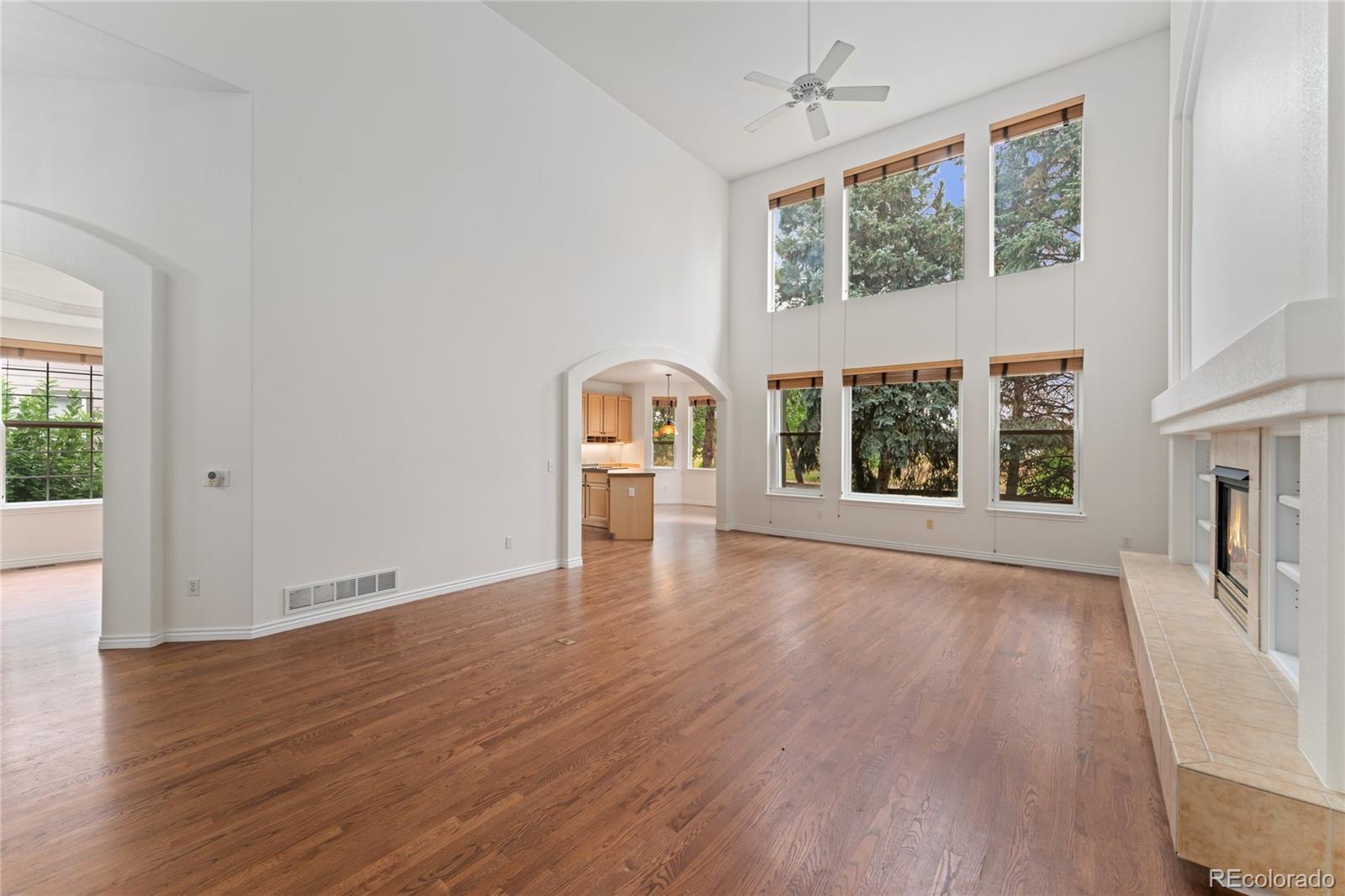 Step directly into Cherry Creek Open Space from your door in this 4-bedroom, 3-bath home nestled within a quiet luxury enclave surrounded by quiet natural beauty. So many scenic hiking and biking trails, a sparkling community pool, walkable off-leash dog park and a brand new kids community playground, this home offers an exceptional blend of upscale living and outdoor adventure. Inside, thoughtful design and effortless flow define the open floor plan, where dramatic vaulted ceilings, architectural angles, and inviting nooks create a sense of both spaciousness and comfort. The spacious kitchen features stainless steel appliances, granite countertops, an eat-at island, and a sunny breakfast nook with bow windows and patio access—ideal for relaxed mornings or entertaining guests. A gracefully curved formal dining room wrapped in windows offers a dramatic yet welcoming space for gatherings. The great room is equally inviting, anchored by a gas fireplace, built-in shelving, and a wall of windows that draw in natural light and views. The main-floor primary suite is a peaceful retreat with its own patio access, a walk-in closet, and a luxurious five-piece en suite bath complete with a soaking tub. A second main-floor bedroom is perfect as a guest room or home office. Upstairs, two additional bedrooms—each with walk-in closets—share a beautifully designed five-piece bath with a separate water closet. Original hardwood floors, mature landscaping, and a spacious 3-car garage complete this refined and welcoming home.
