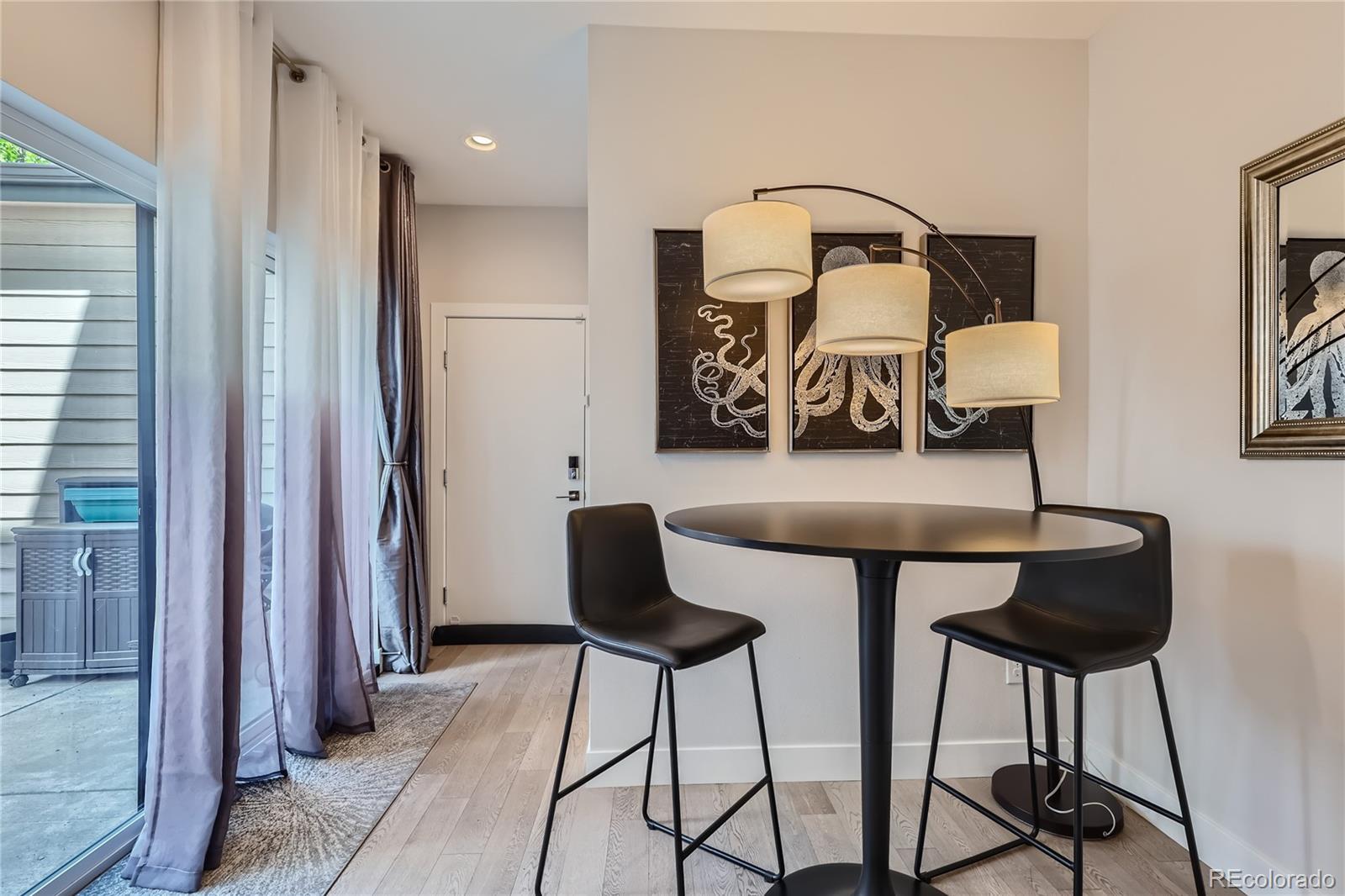 This phenomenal move-in ready 3-bedroom, 4-bath end-unit townhome offers designer finishes and tech upgrades throughout, with multiple private outdoor spaces, including a stunning rooftop deck with sweeping mountain views—all in a prime, walkable location near Sloan’s Lake and the light rail, with restaurants and breweries nearby. Enjoy natural light, tall ceilings, and seamless flow between the kitchen and living spaces on the first floor. It comes with a ground level private patio space and a rare attached garage. The luxurious second floor includes the master bedroom with en suite bathroom, guest bedroom and bathroom, along with a conveniently located laundry closet (LG washer/dryer included).The third level boasts a wet bar leading to the private rooftop deck with a full bathroom and flexible room, perfect for an office, playroom, or even a roommate. An exceptional opportunity to own a designer unit with rare outdoor living, mountain views, and unbeatable walkability in one of Denver’s most desirable neighborhoods.