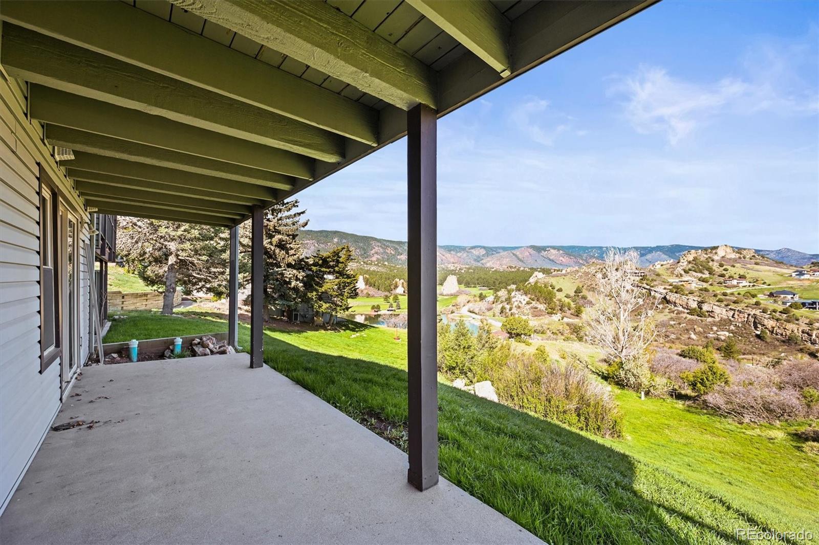 This well-maintained Perry Park townhouse has some of the most spectacular foothill views on the Front Range! Here's your opportunity to own a sliver of paradise! Nestled among dramatic sandstone pillars and bluffs and perched above Perry Park County Club and Golf Course and Wauconda Lake and Park, this updated Perry Park townhouse has some of the most spectacular unobstructed foothill views on the Front Range! This is big sky country where expanses of rolling plains and equestrian estates meet the foothills and the landscape is nothing short of mesmerizing! Floor to ceiling windows/doors and million dollar views from every room. Main level boasts an open layout flooded with natural light, hardwood floors, stone fireplace, built-in shelves and wet bar. Kitchen is appointed with tile floor, granite countertops, stainless appliances and pantry. Large, covered, private deck/balcony off living/dining room expands your living space in warm weather months and lower-level bedrooms open onto patio. Enter through the attached 2-car garage with plenty of room for storage. Come see this well-maintained townhouse today and get ready to enjoy your own little sliver of paradise!