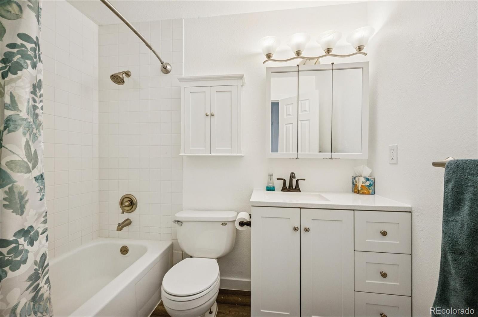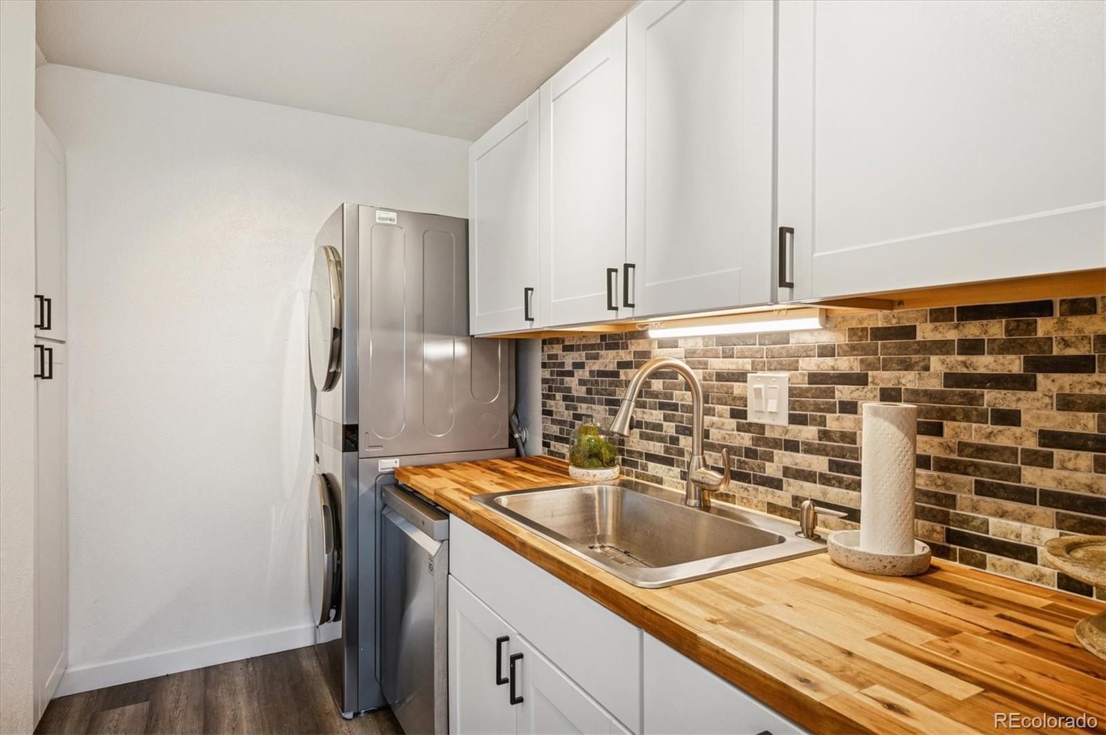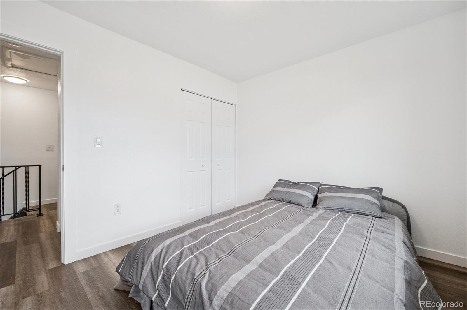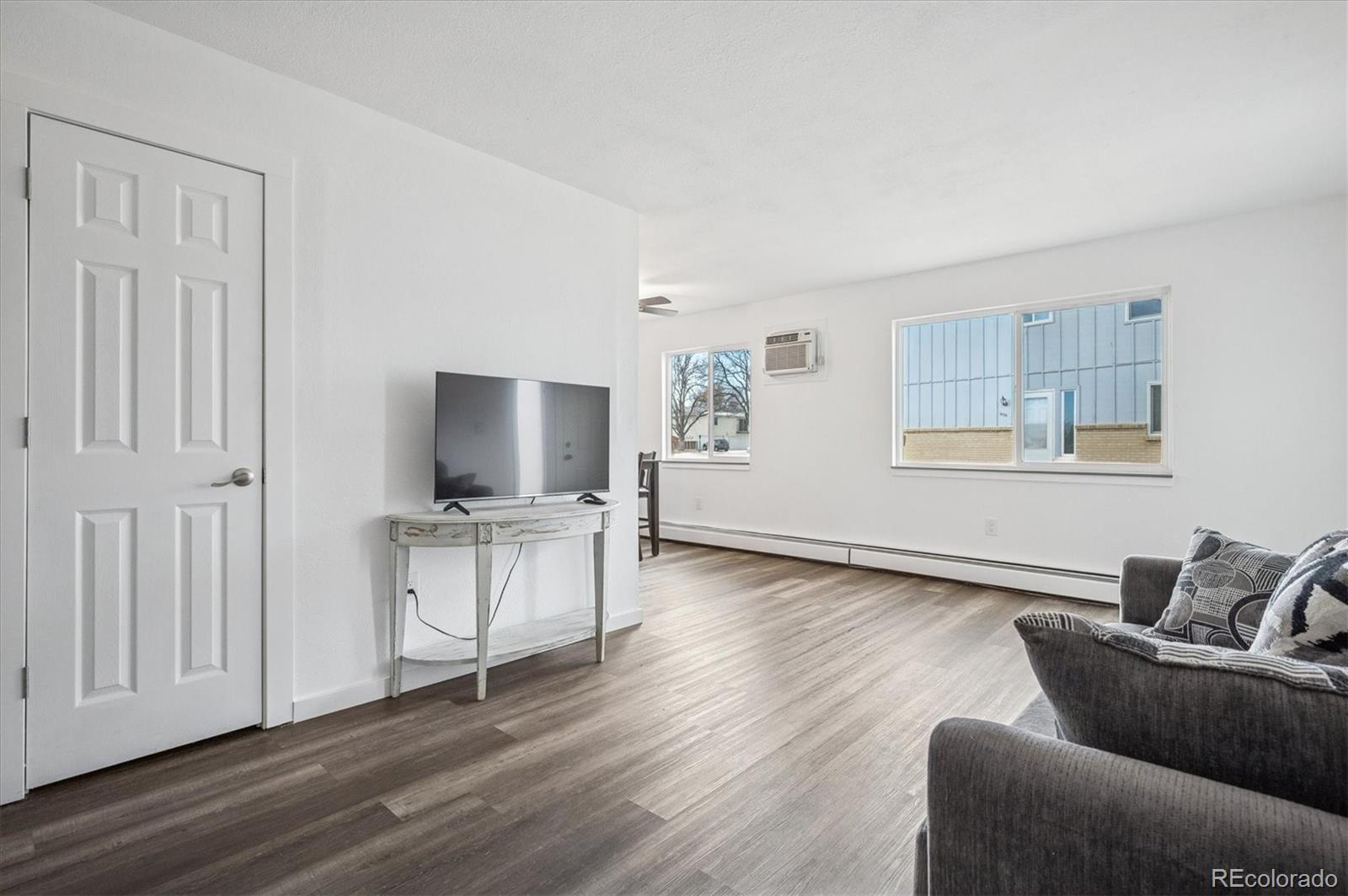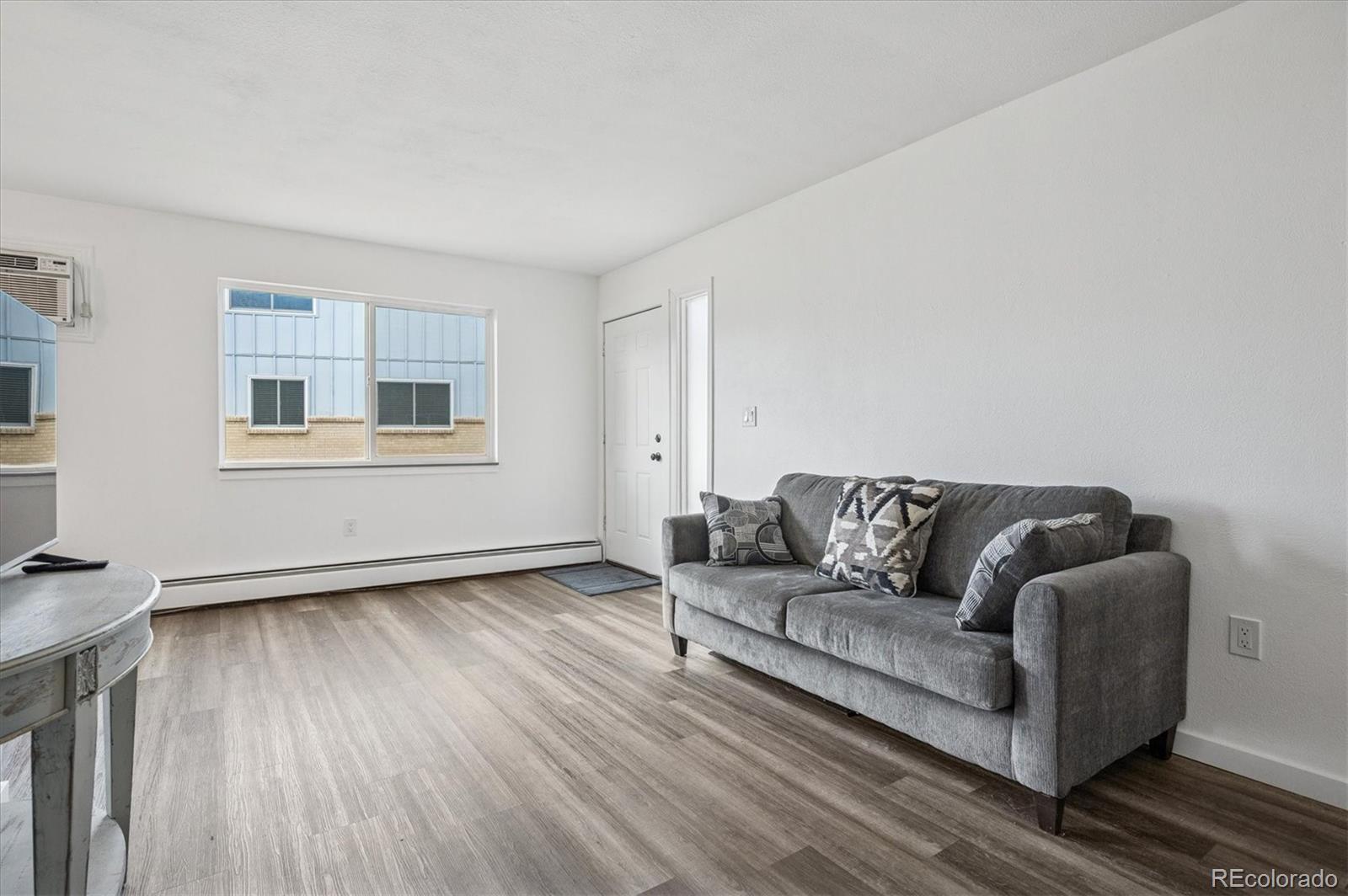 Experience modern living in this fully renovated two-bedroom townhome with pool and mountain views! Every surface has been updated with new finishes from top to bottom. Brand-new flooring flows throughout the entire residence. The efficient galley kitchen showcases freshly installed cabinetry paired with stylish countertops. The new appliances and laundry wash tower are included! An open-concept main floor unites the kitchen, dining, and living areas—ideal for both daily routines and hosting guests. Generous natural light fills the space through large windows. Upstairs, you'll find two inviting bedrooms, including a primary bedroom with a walk-in closet. The second bedroom provides flexibility—use it as a guest room, home office, or creative space. The newly renovated bathroom rounds out the upper floor. At 922 square feet across two levels, this home maximizes every inch. Convenient features include a shared one-car garage with extra storage capacity and a new boiler system installed last year, a $15,000 investment ensuring reliable heating throughout all seasons. Hampden Villas offers community amenities including a pool, landscaped common areas, and children's play structures within well-kept grounds. The setting provides excellent access: convenient highway connections through Hampden and 6th Avenue, nearby Belmar's diverse shopping and dining scene, and immediate entry to Bear Creek Greenbelt's pathway network. Restaurants, parks, and public transportation are all within walking distance. This completely refreshed townhome presents an attractive package of contemporary updates, desirable location, and reasonable HOA fees—a standout value in today's market.