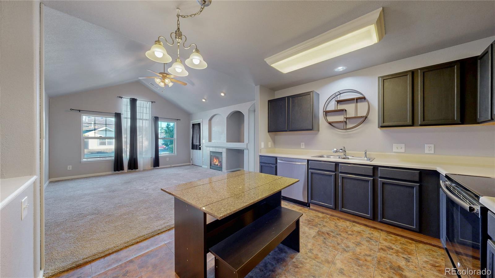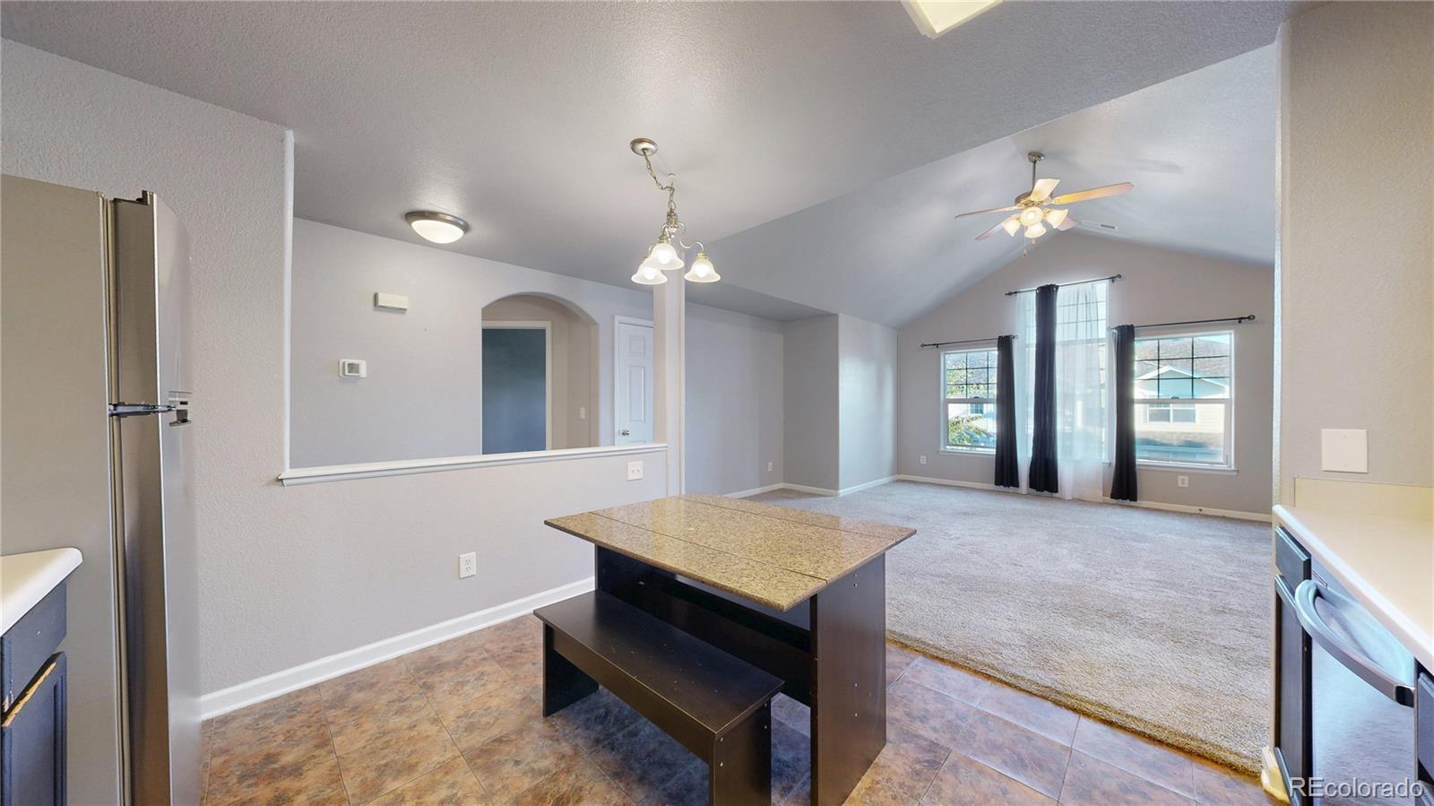 Back on the market — no fault of the seller or buyer! This beautiful condo is available again and absolutely worth another look. Step inside this beautifully updated 2-bed, 2-bath condo in Fox Crossing and immediately feel at home. Vaulted ceilings and oversized windows flood the open floor plan with natural light, creating a bright and airy vibe throughout. The spacious kitchen features stainless steel appliances, rich cabinetry—perfect for both casual meals and entertaining. A cozy fireplace anchors the living room, Exit door leads to your private balcony for fresh Colorado air and relaxing evenings. The primary suite offers its own retreat with abundant light and an en-suite bath, while the second bedroom is ideal for guests, a home office, or flex space. Detached garage just steps away, low-maintenance living, and a prime location close to shopping, schools, and parks—you’ll want to call this condo your own.