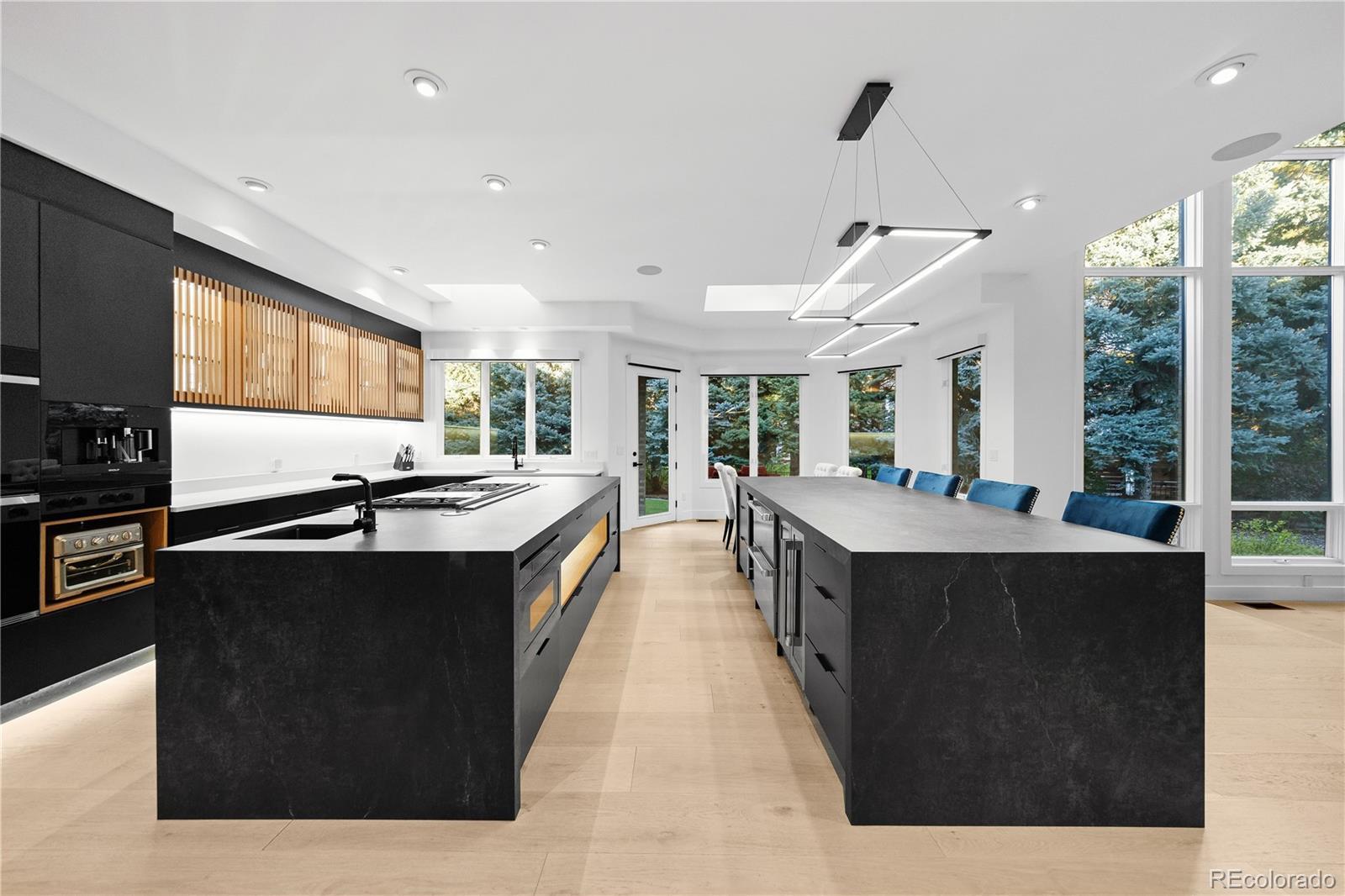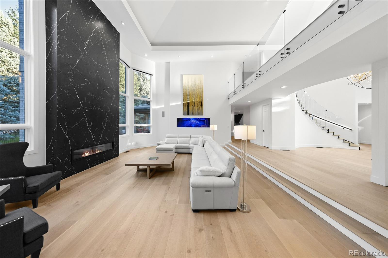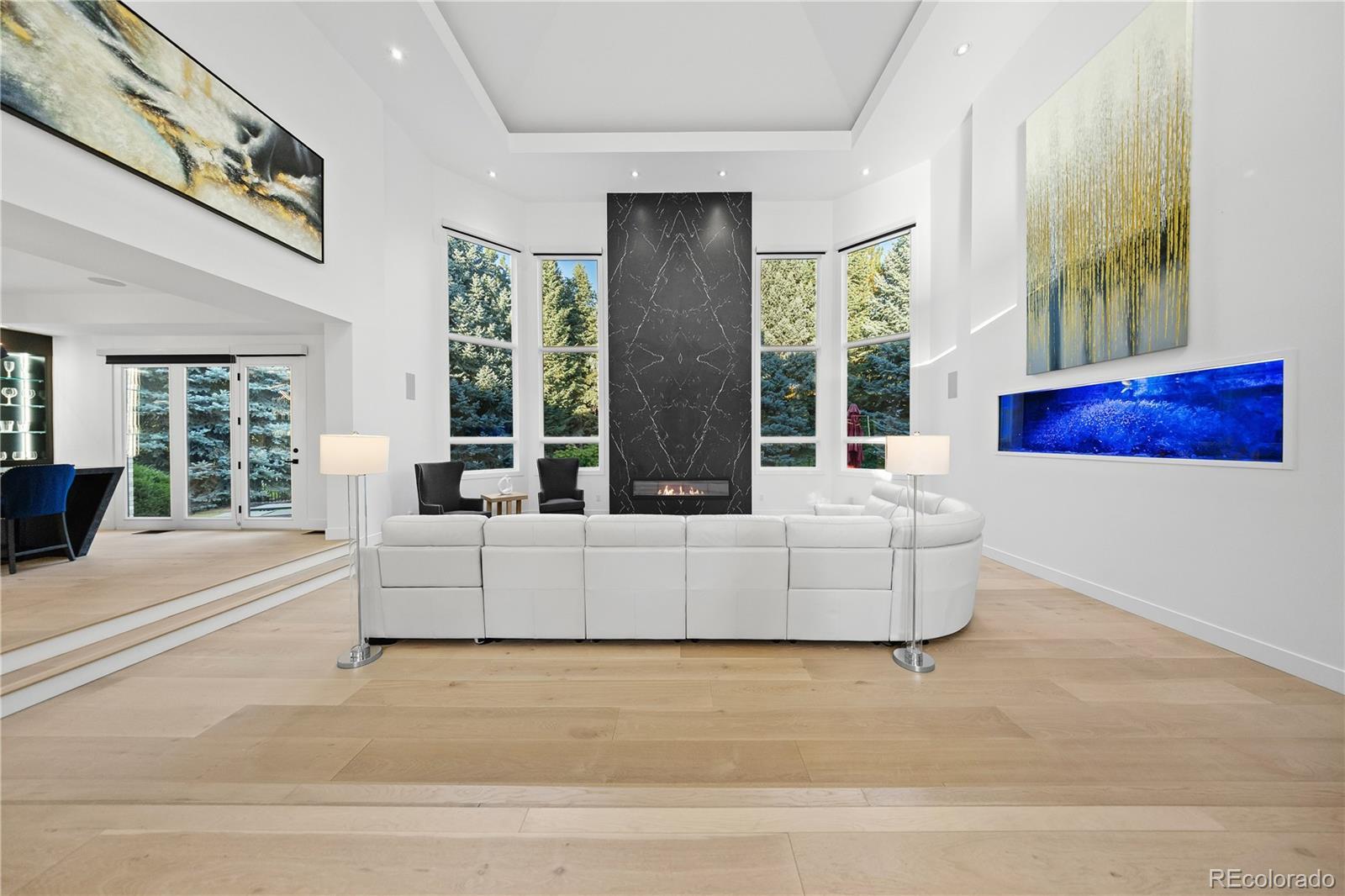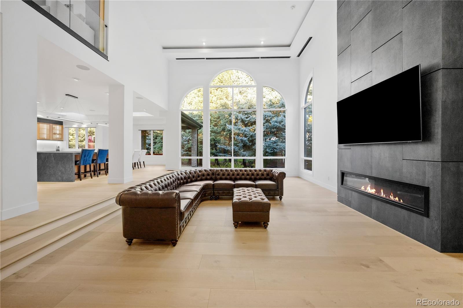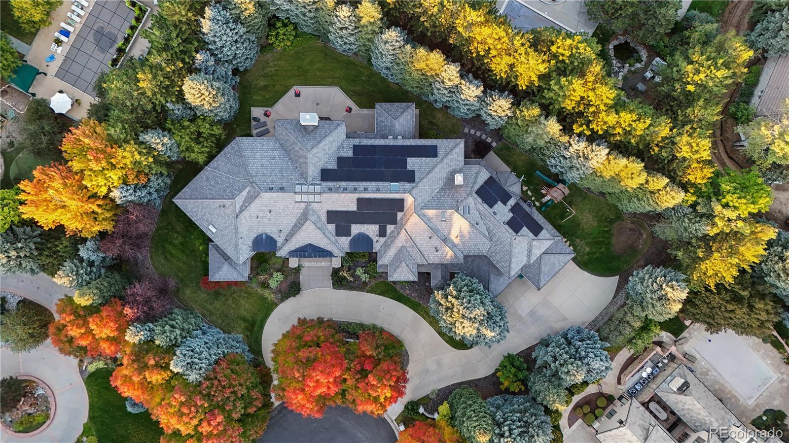 Introducing 4936 S. Fillmore Court, an exceptional estate in Cherry Hills Farm blending timeless elegance with modern sophistication. Recently reimagined, this over 16,000 sq ft residence delivers an unmatched living experience on a private cul-de-sac. A circular driveway and manicured grounds lead to a dramatic entry featuring a dual glass Imperial staircase beneath soaring 30+ foot ceilings. Light-filled great rooms showcase floor-to-ceiling windows, sleek porcelain-encased fireplaces, and an effortless flow ideal for everyday living and grand entertaining. The main level offers a custom wet bar with illuminated displays and aquarium centerpiece, soundproof theater with tiered seating, glass-enclosed wine cellar with automated dispenser, and an entertainment wing with golf simulator and lounge. The chef’s kitchen boasts dual Dekton islands, Wolf and Sub-Zero appliances, built-in coffee station, butler’s pantry, and seamless indoor-outdoor connection. Upstairs, the primary suite offers a private balcony, fireplace, spa-inspired bath with double walk-in shower, soaking tub with water feature, and boutique-style dressing room with custom lighting and sound. Five additional ensuite bedrooms provide private retreats with luxury finishes. Additional highlights include an attached apartment with private entrance and full kitchen, two home offices, upper-level fitness studio with ensuite bath, finished lower level with game room, art room, and abundant storage. A Savant smart-home system, automated shades, nine heating/cooling zones, owned solar panels offsetting 140% of energy costs, and advanced security with cameras enhance the property. Set on nearly an acre with mature trees and manicured landscaping, the estate offers both a serene retreat and entertainer’s dream.