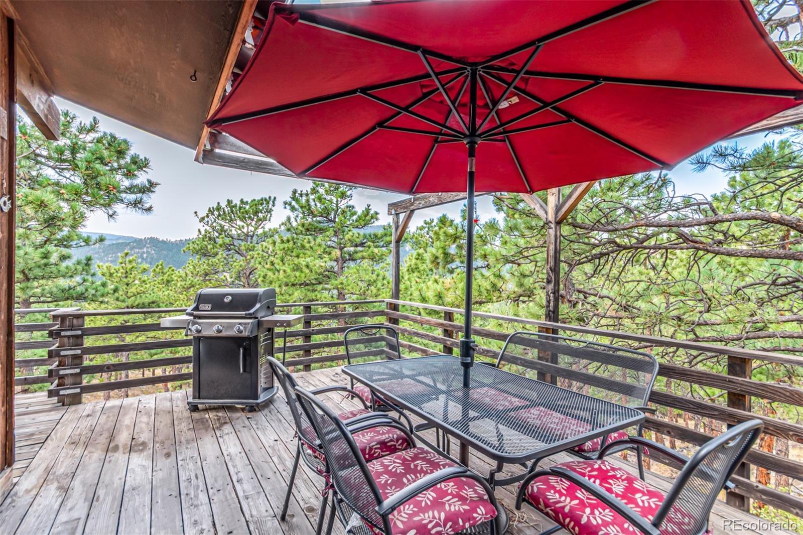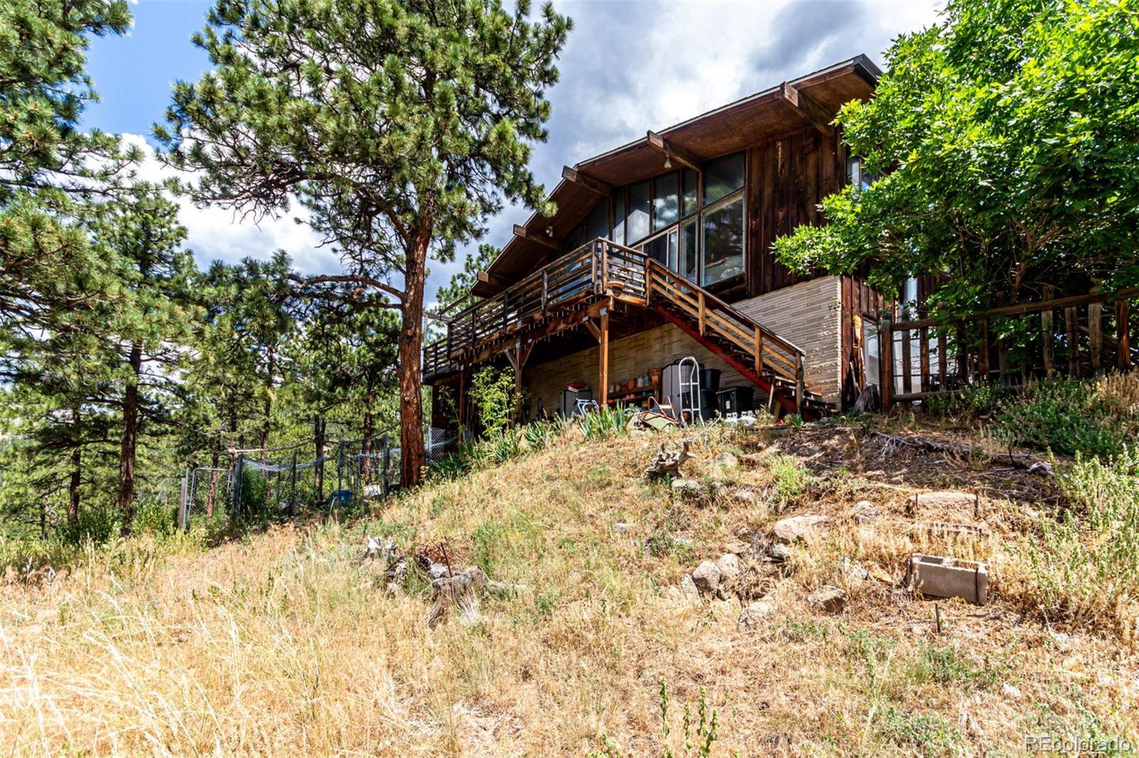 Unlock a rare opportunity just minutes from Broadway and downtown Boulder, this secluded mountain home boasts a flat lot with sweeping Continental Divide and valley views. An extraordinary combination of tranquil refuge and convenient access to restaurants, shops, and services. Nestled among towering pines, this home features vaulted ceilings with exposed beams, wood floors, a floor-to-ceiling stone fireplace, skylit kitchen, and spacious primary suite with a wood-burning fireplace, dual-vanity bath, and sliding door to the back deck—ready for your modern luxury updates. Take advantage of this well located lot by scrapping the existing structure and starting anew with a custom-built home, or update the current home to make your own private retreat, just minutes from Boulder.
